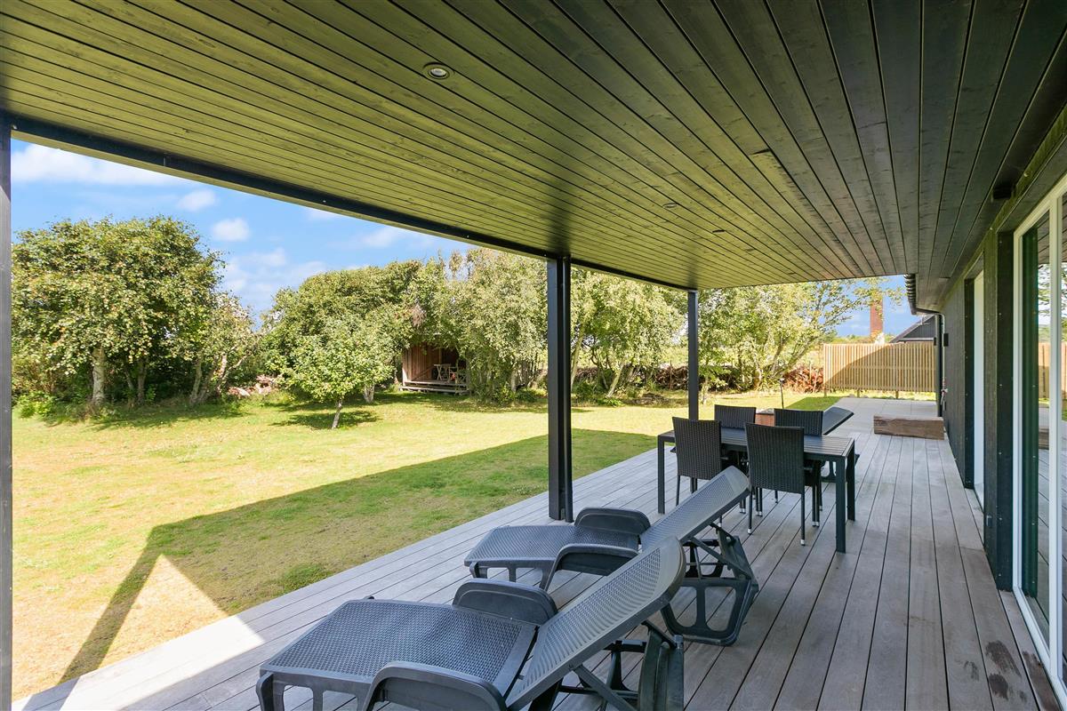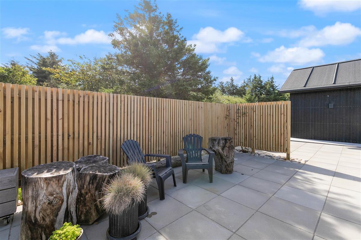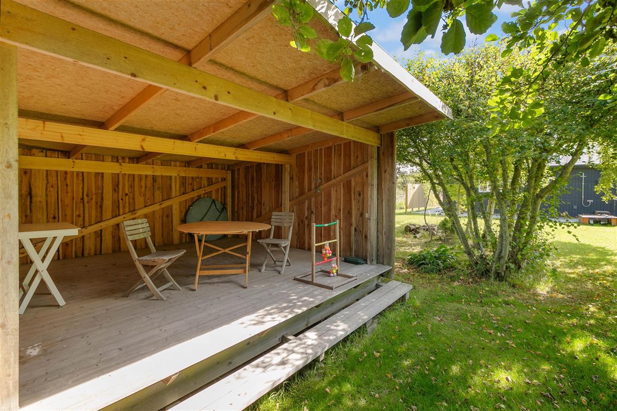 The terrace leads to the well-maintained garden, where both children and dogs can enjoy plenty of lawn space for play. A special feature is the large shelter, where you can embrace your outdoor spirit and perhaps even spend a summer night under the stars. While outside, you can also enjoy views over the Lodbjerg Hede golf course.