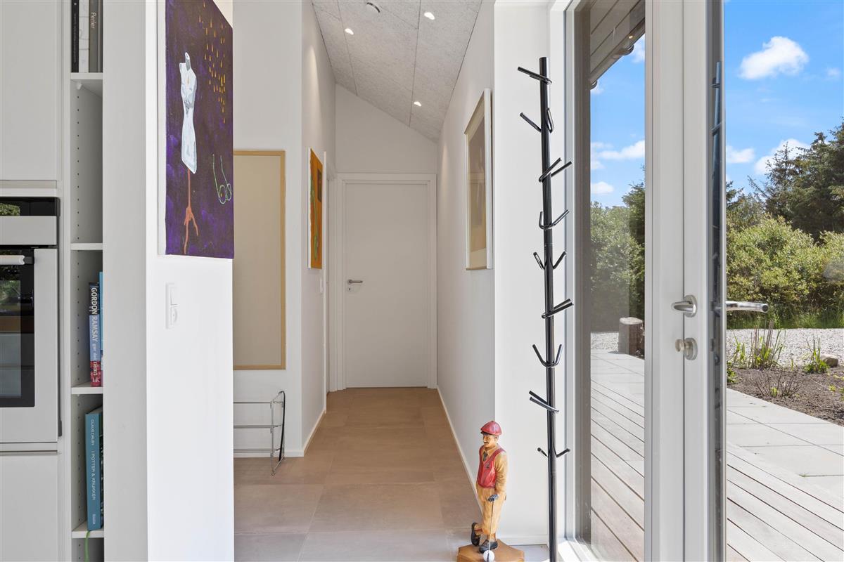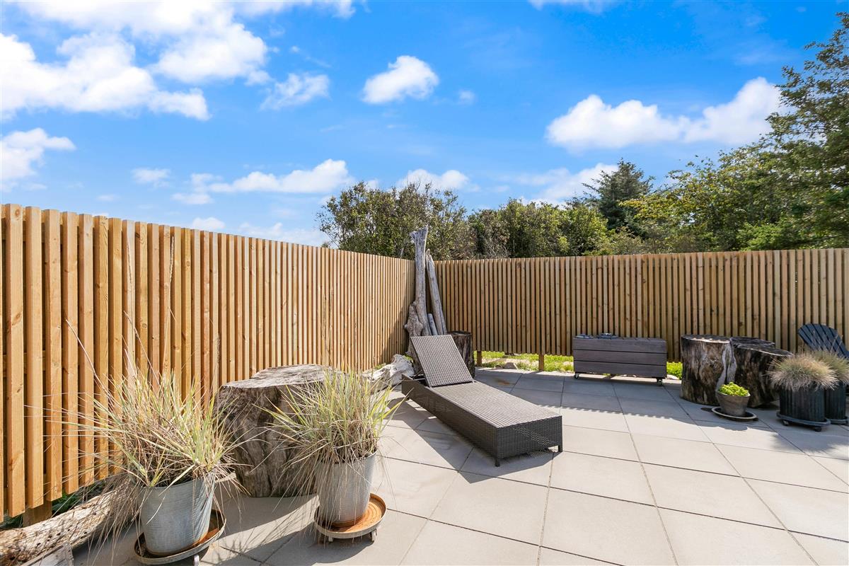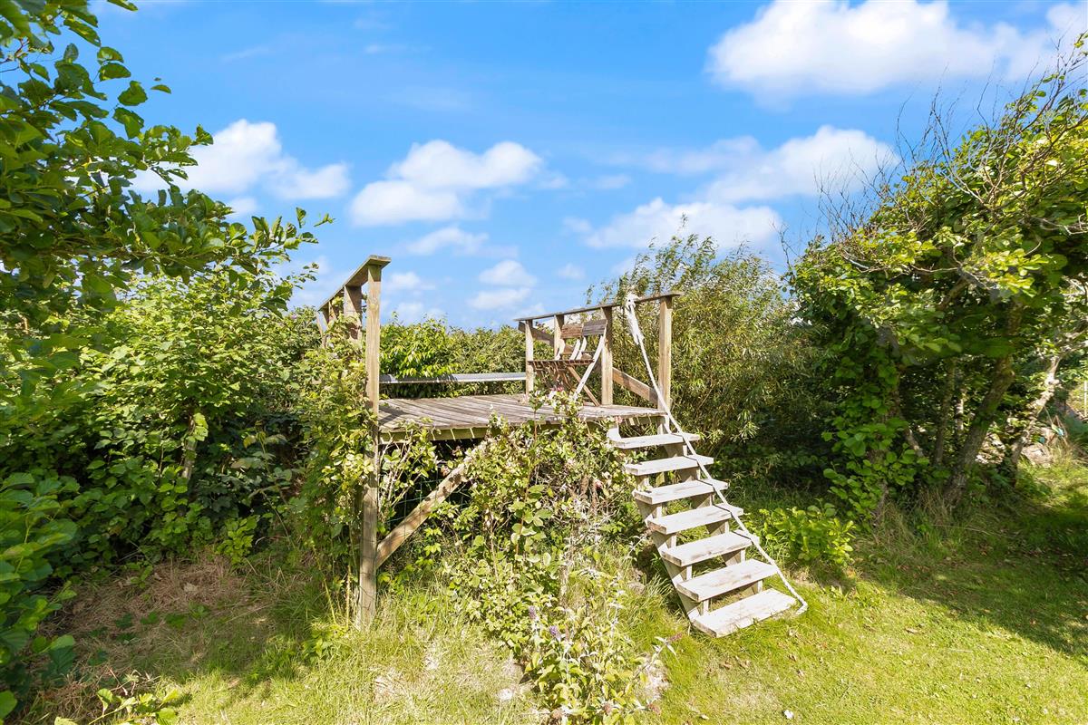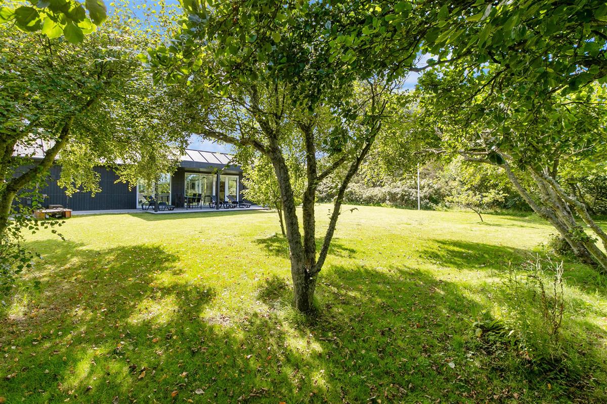 The terrace leads to the well-maintained garden, where both children and dogs can enjoy plenty of lawn space for play. A special feature is the large shelter, where you can embrace your outdoor spirit and perhaps even spend a summer night under the stars. While outside, you can also enjoy views over the Lodbjerg Hede golf course.