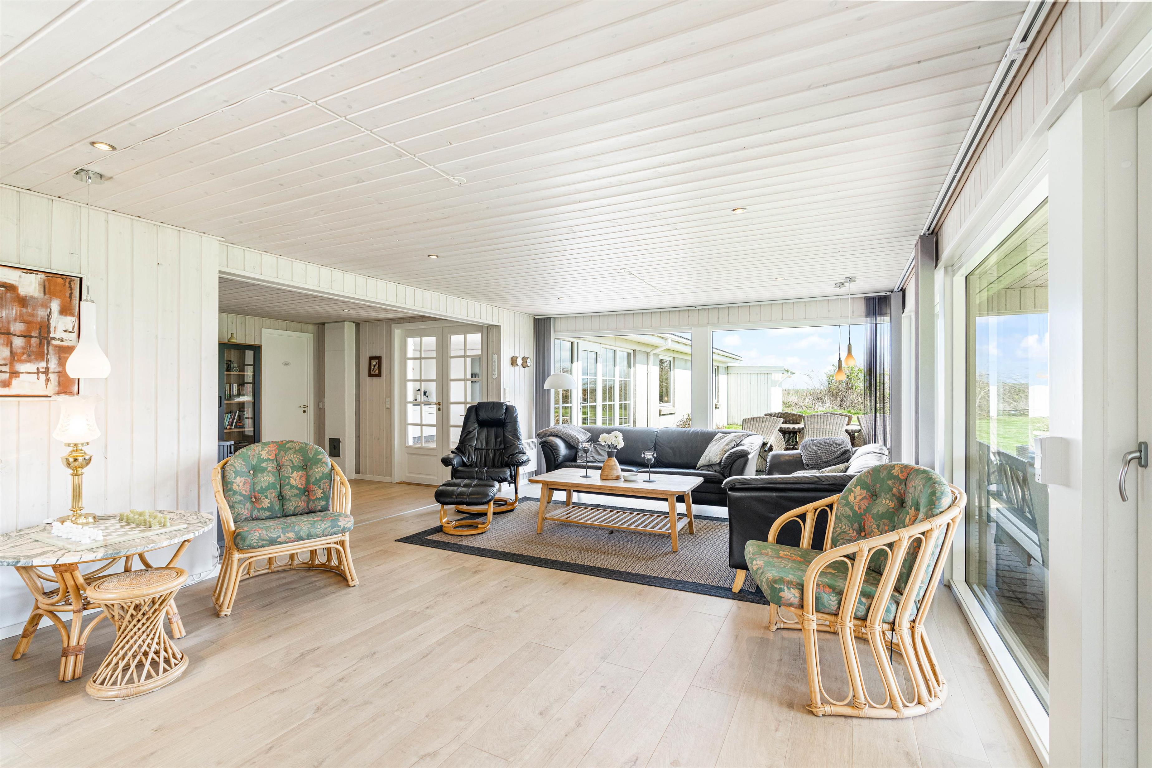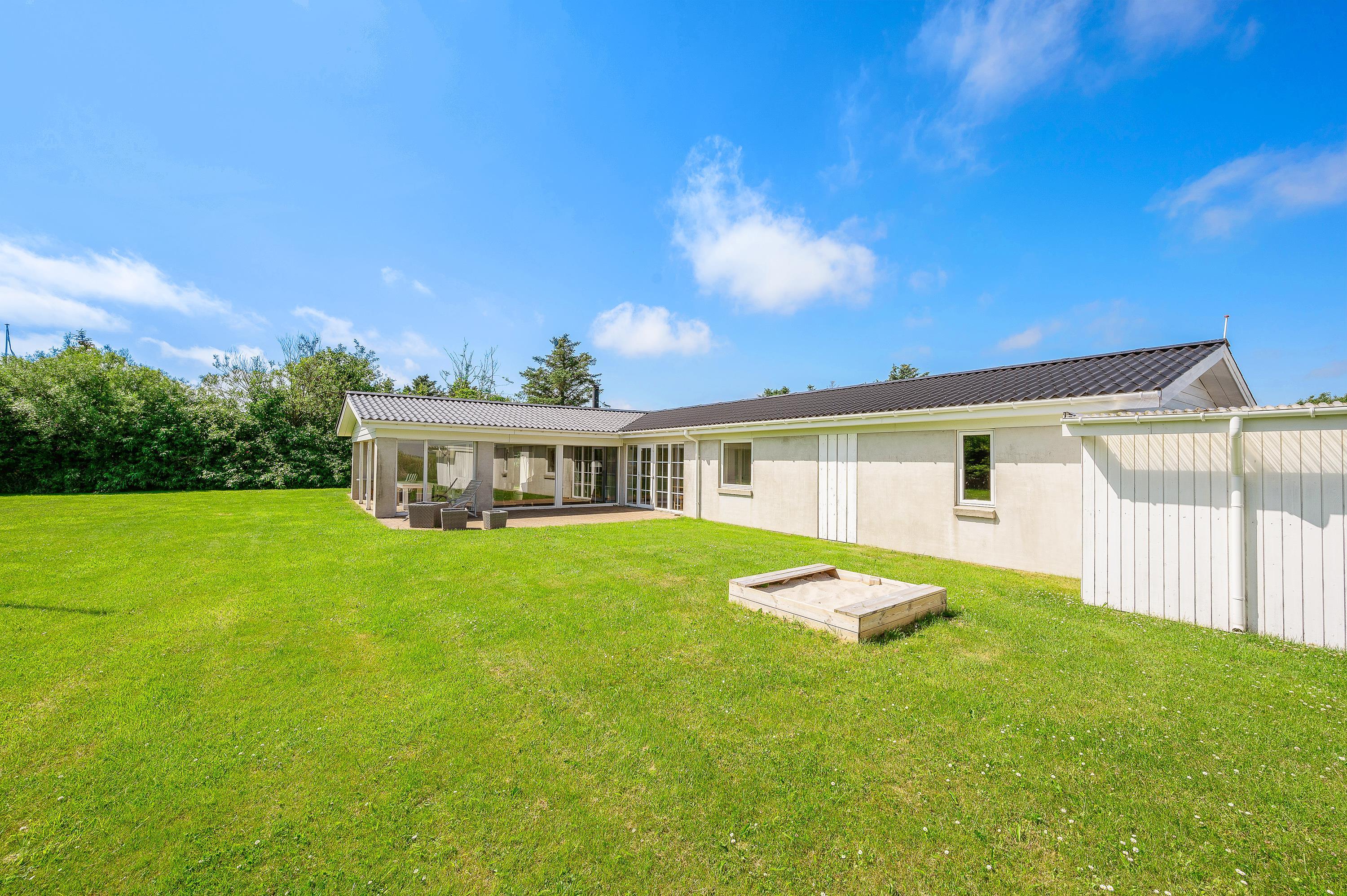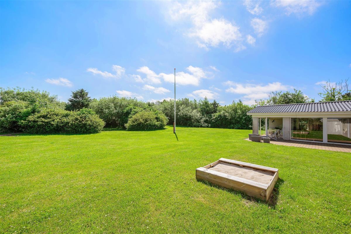 Located on the edge of a holiday home area in Lodbjerg Hede, this spacious summer house offers plenty of room for your family and dog to enjoy a wonderful holiday in nature, just 0.8 miles (1,300 metres) from the sea. The large, sheltered grounds are perfect for families with children and dogs, providing ample opportunity to spend time outdoors and enjoy the sunshine.