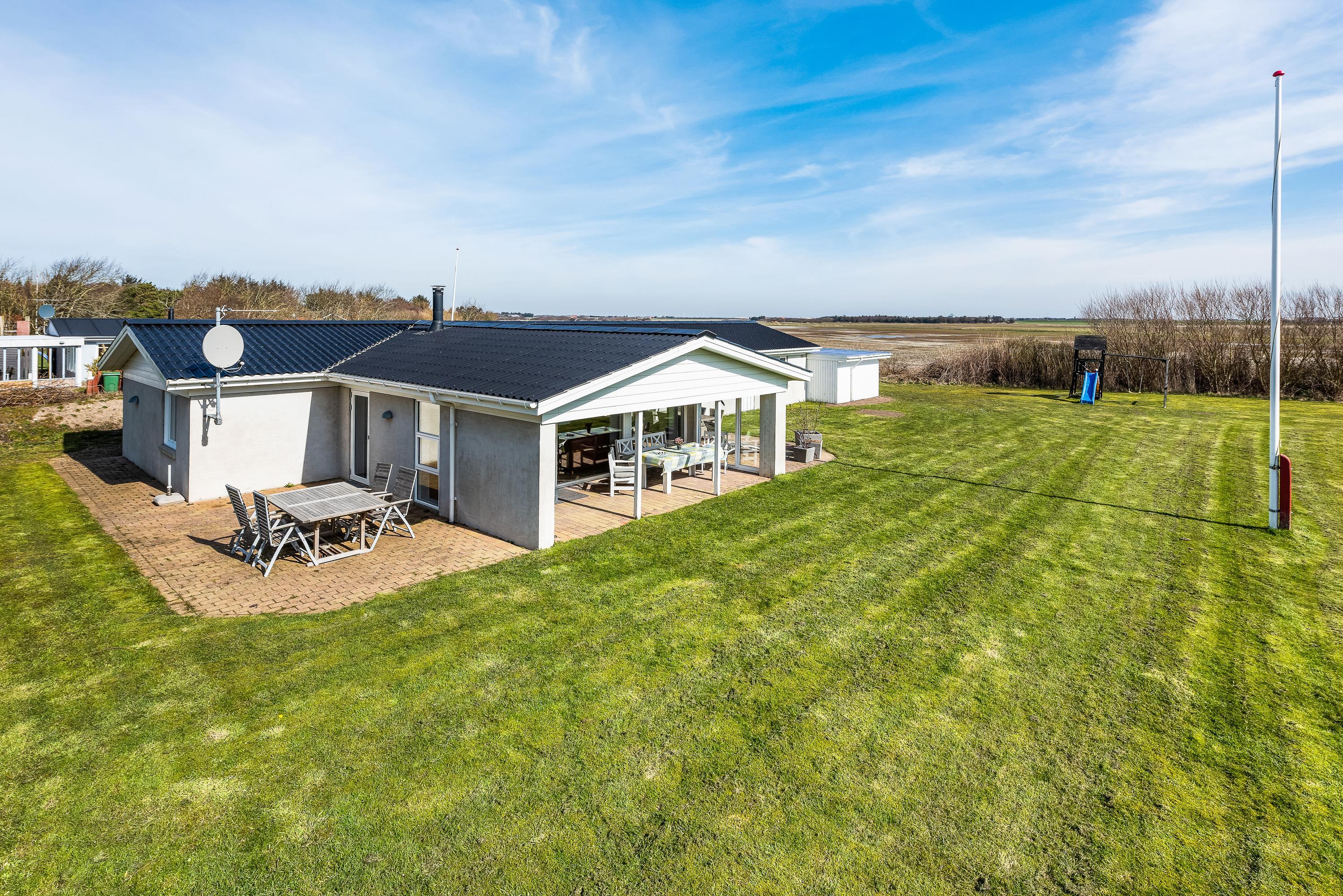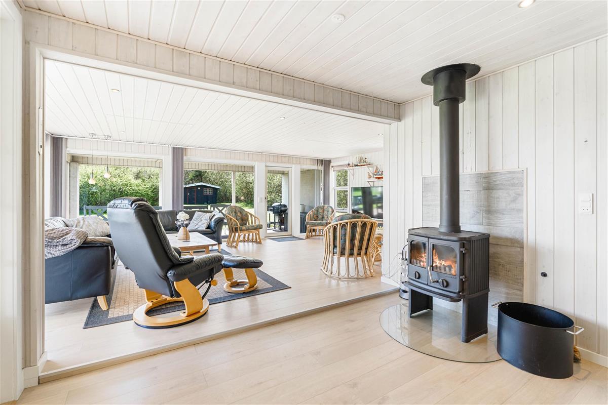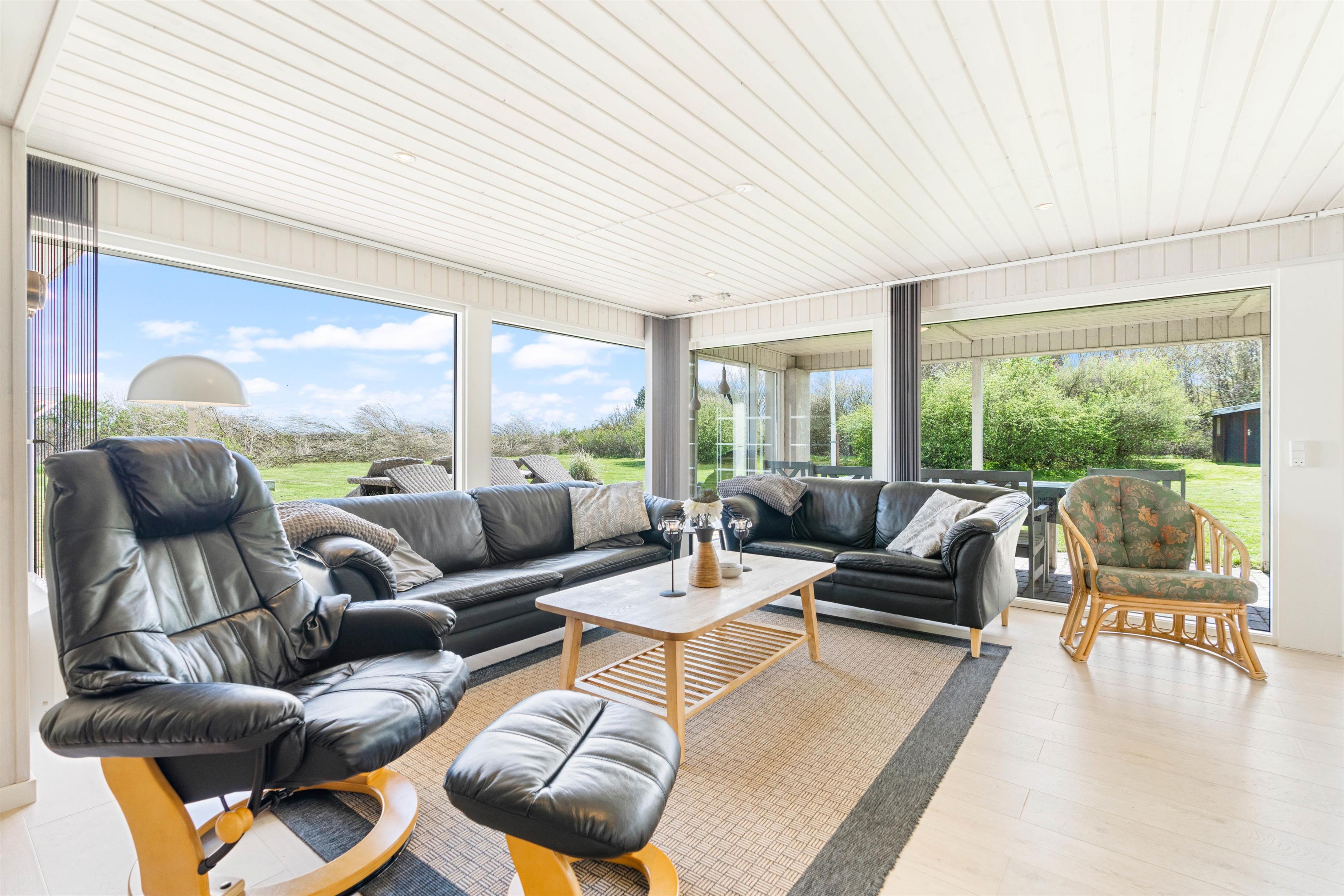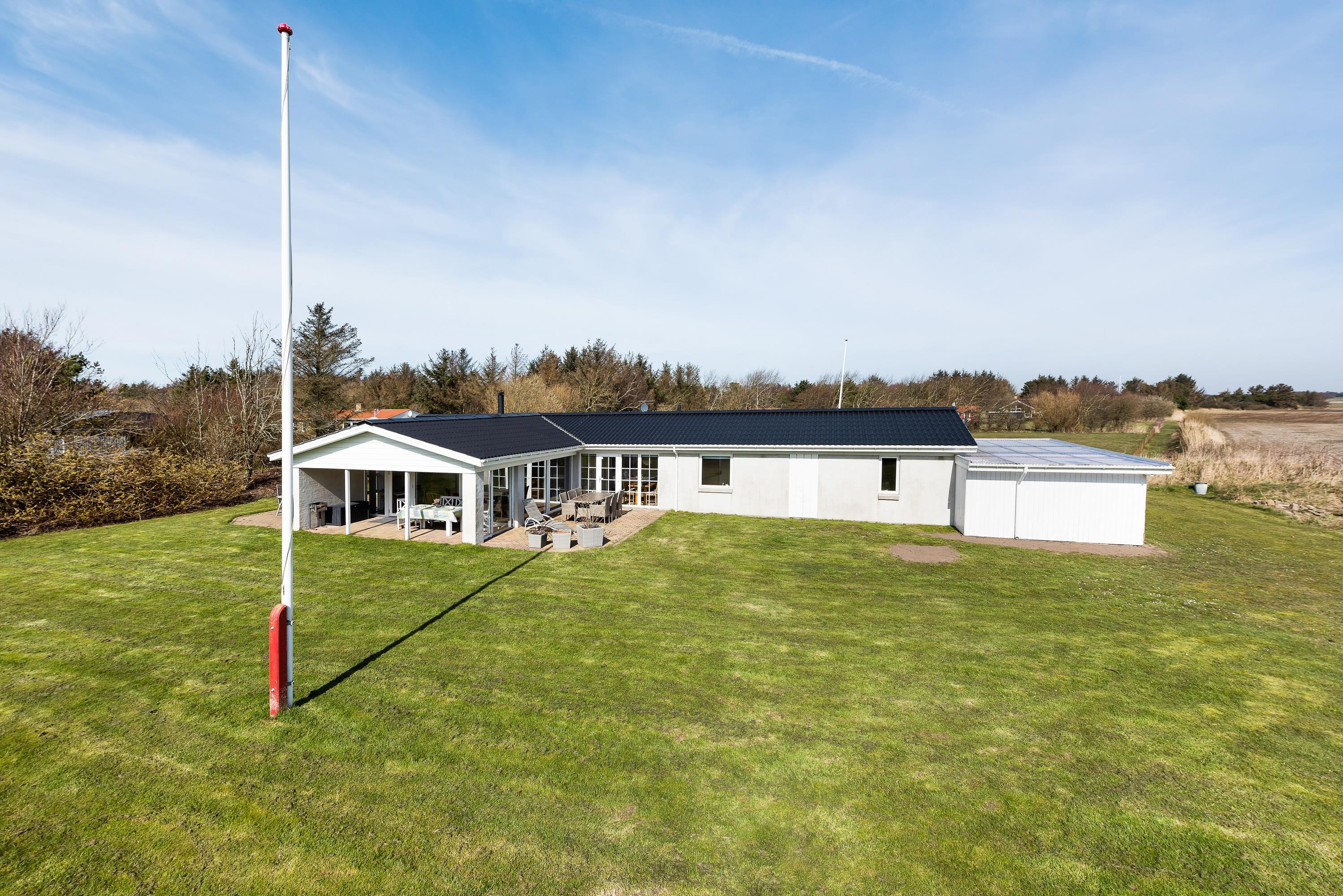 Located on the edge of a holiday home area in Lodbjerg Hede, this spacious summer house offers plenty of room for your family and dog to enjoy a wonderful holiday in nature, just 0.8 miles (1,300 metres) from the sea. The large, sheltered grounds are perfect for families with children and dogs, providing ample opportunity to spend time outdoors and enjoy the sunshine.