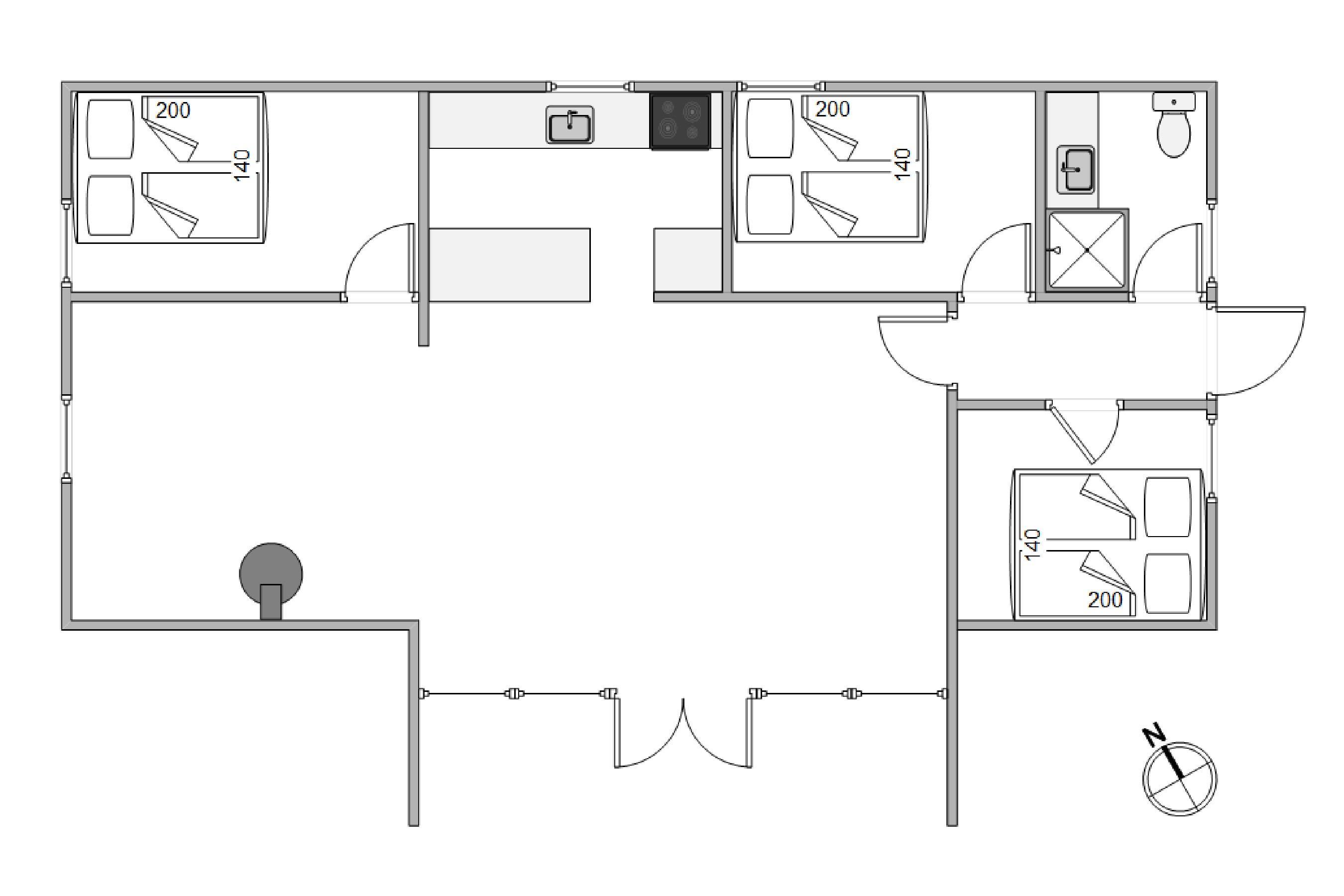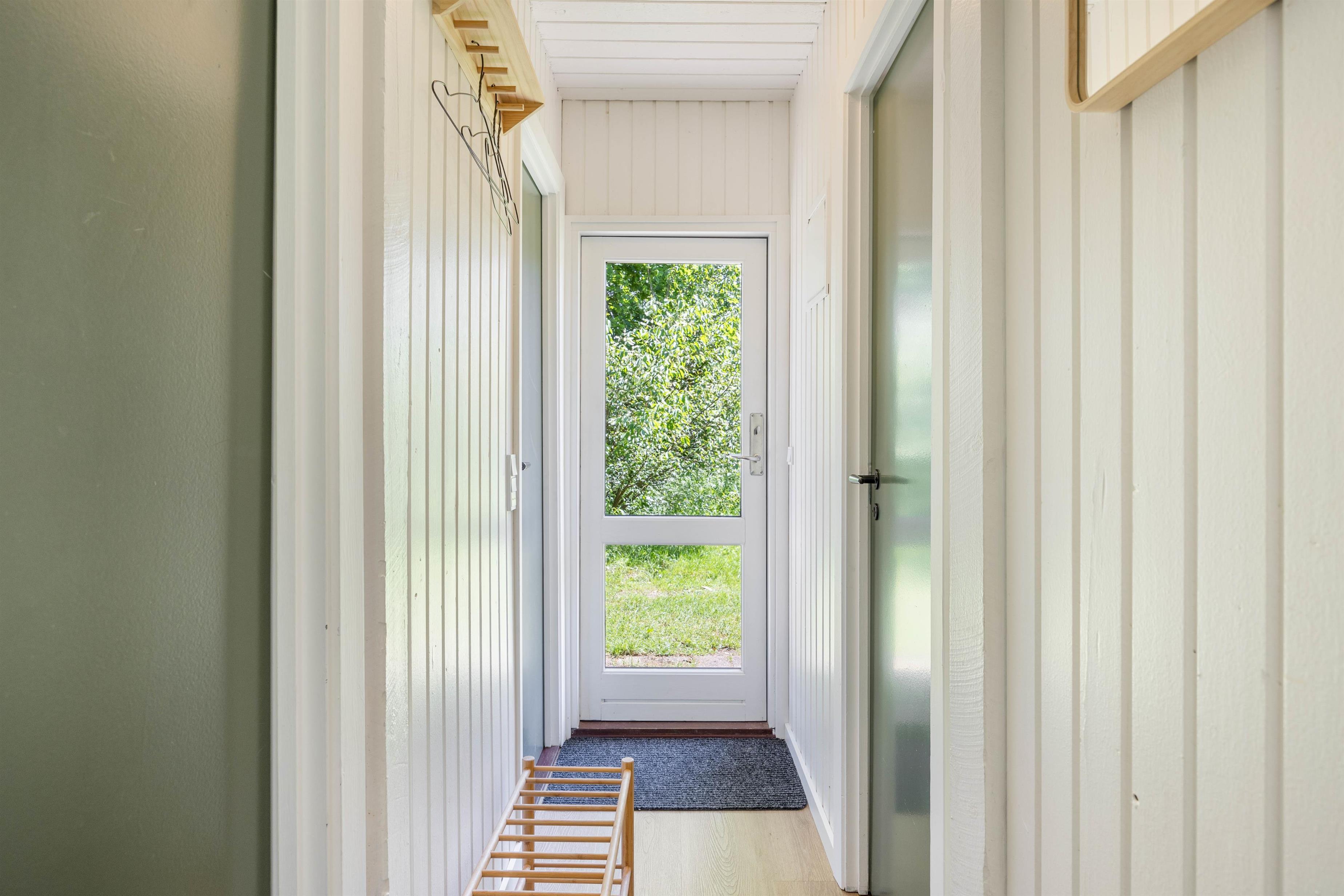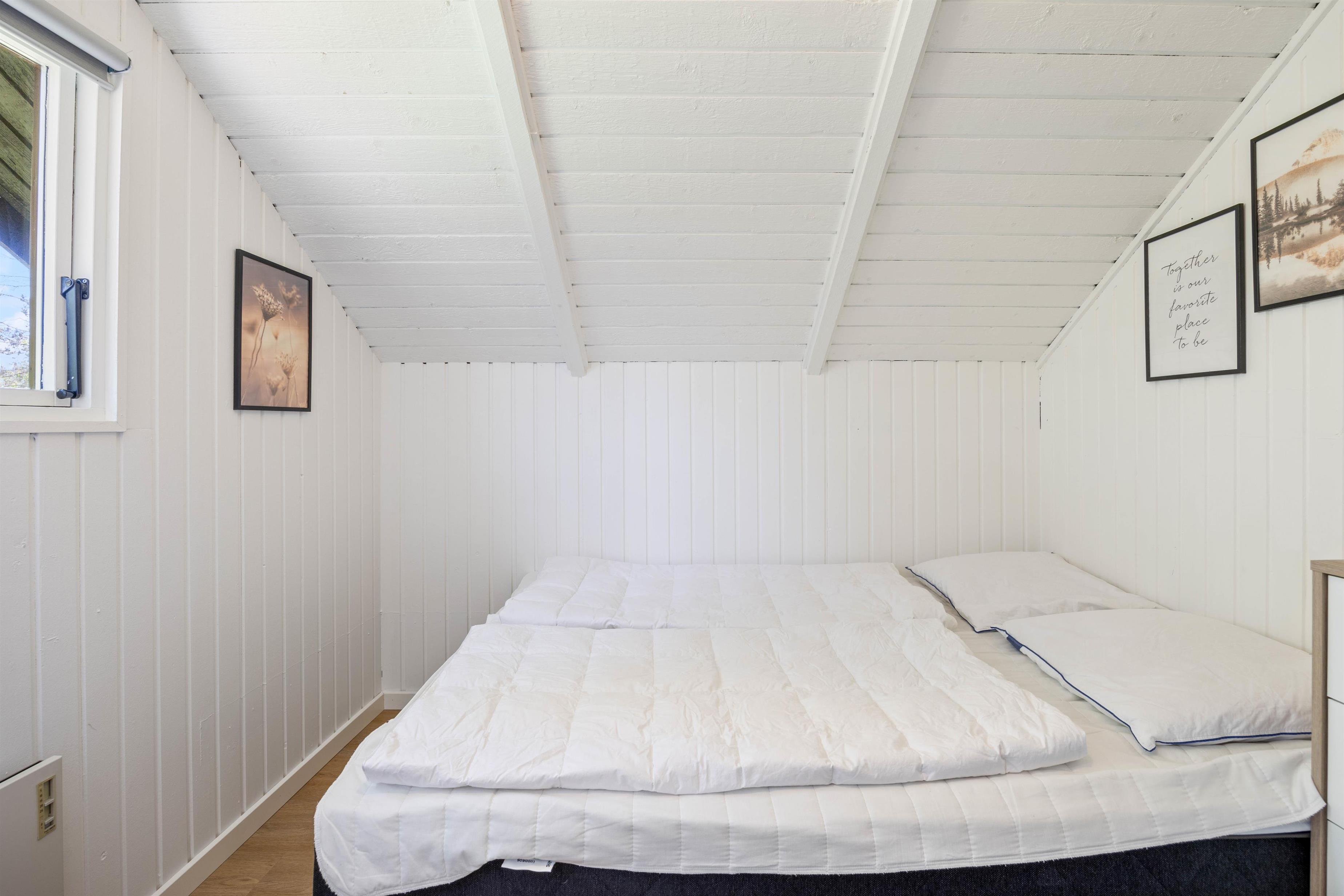 You'll feel at home the moment you enter your holiday home, and you'll notice the attention to detail in the 2021 renovation. White wooden panelling runs throughout the house, while high ceilings in the living area and bright furnishings create an inviting and friendly atmosphere. The compact kitchen is well-equipped and practical, with a dishwasher making life easier.