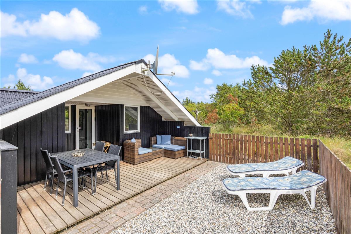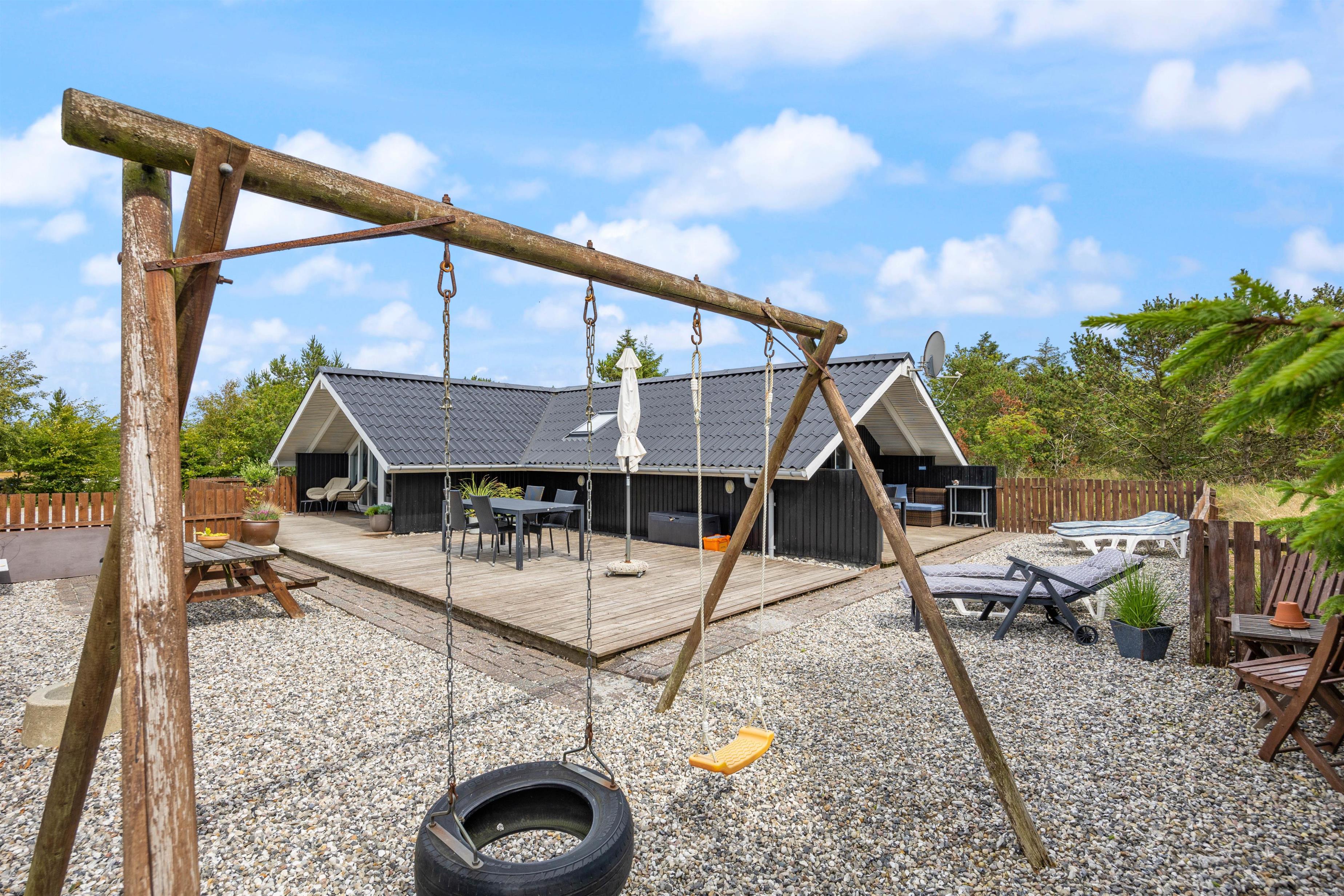 The dune plot extends over 2,100 square metres and features a large fenced terrace with a double swing for little ones. The natural grounds are situated in the heart of Lodbjerg Hede's countryside, surrounded by peaceful woodland. Discover the local wildlife and, with a bit of luck, you might spot deer visiting near the holiday home.
