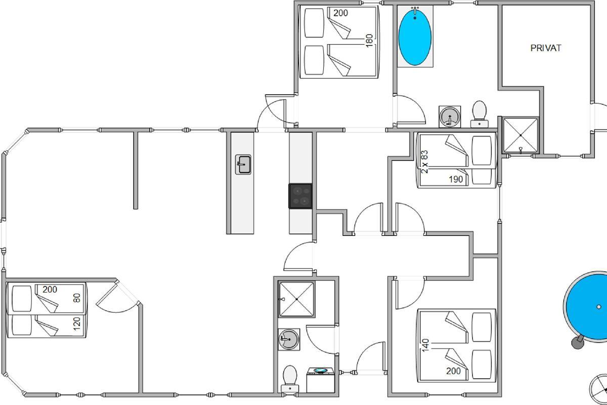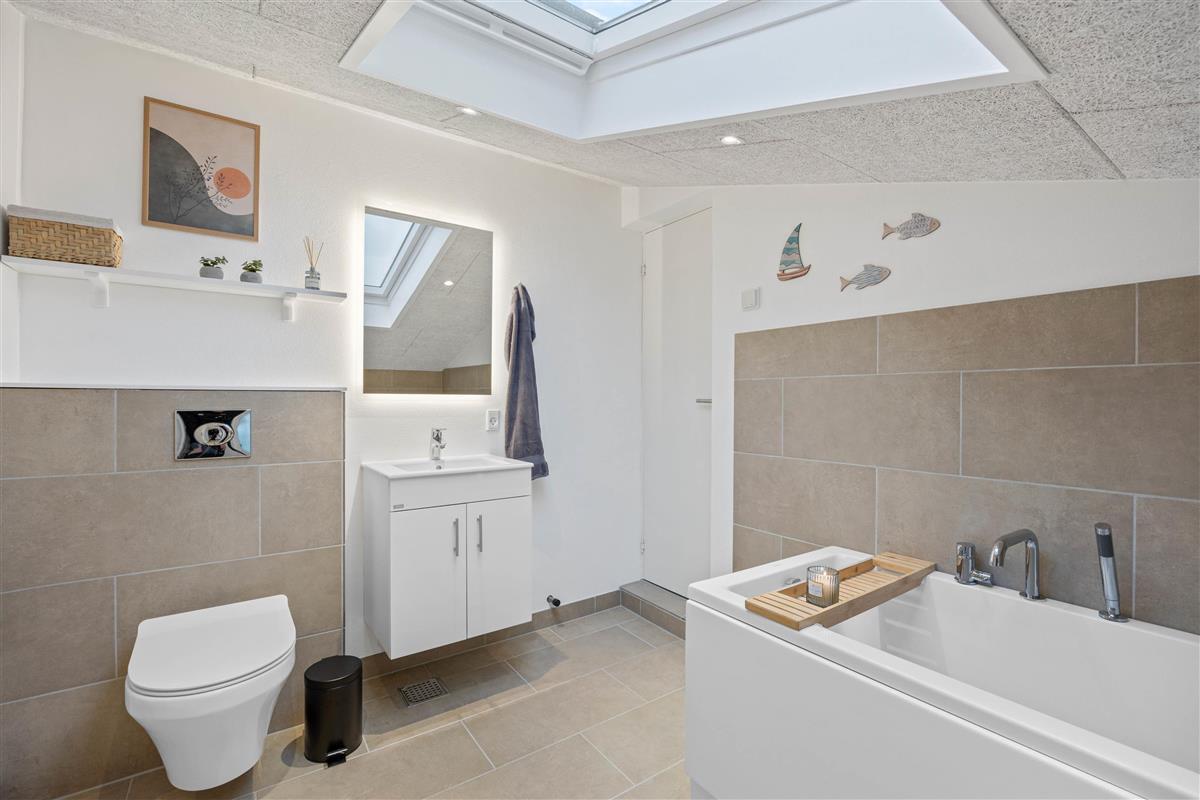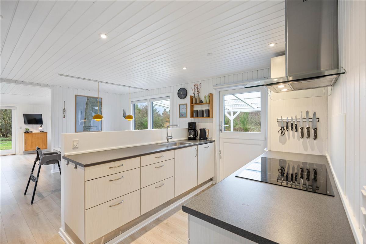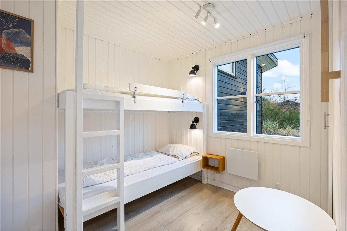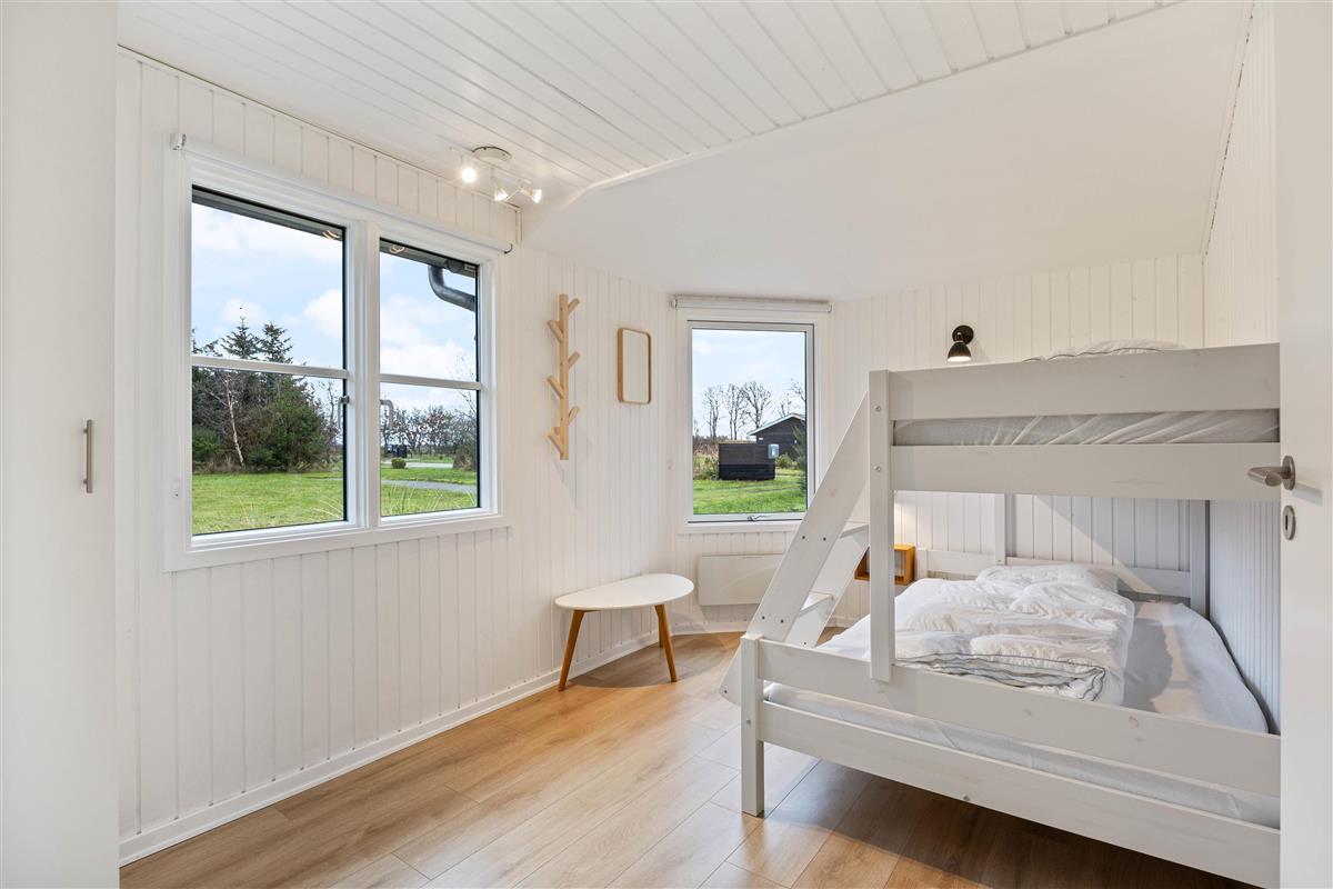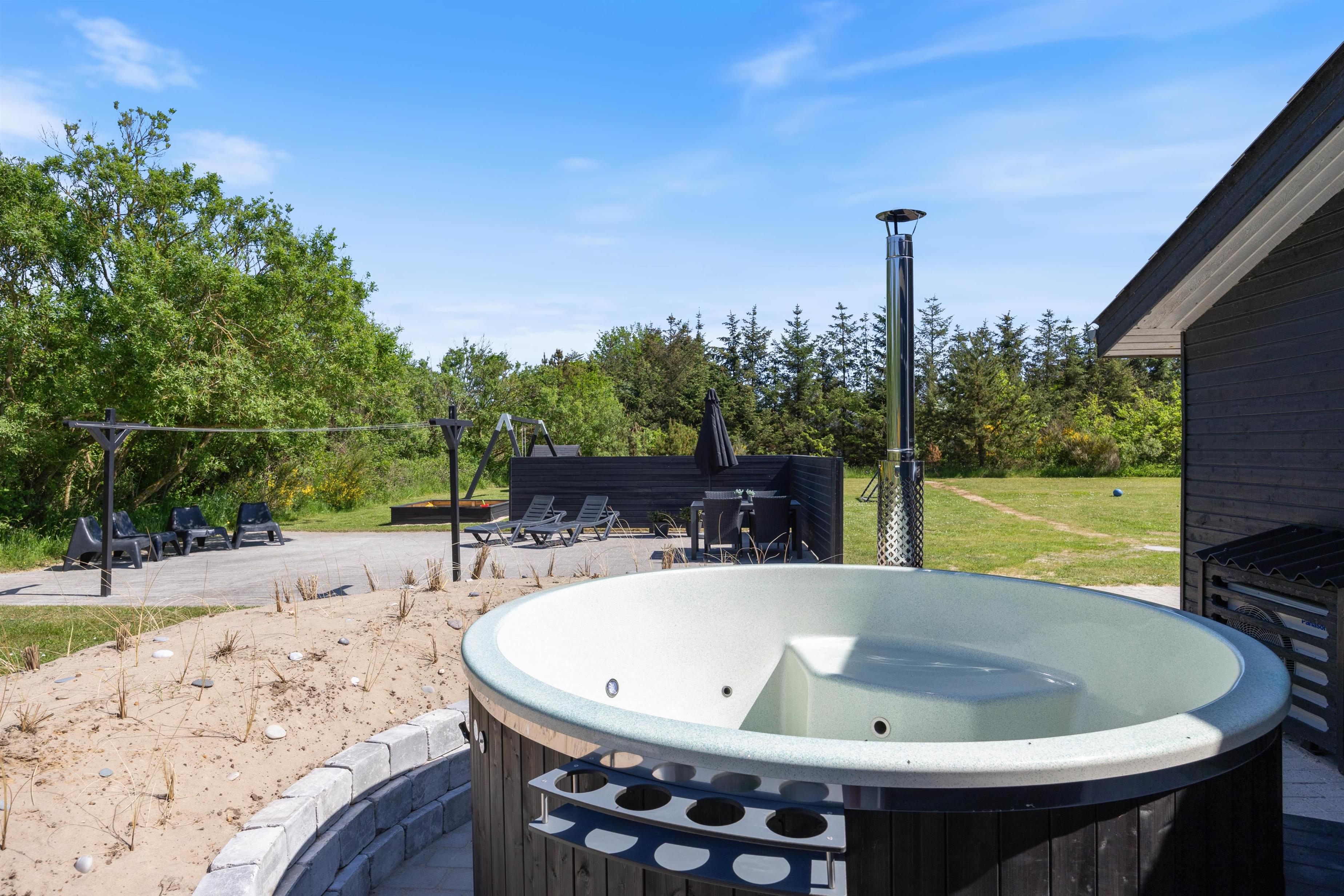 The holiday home has four bedrooms, two with double beds and two with bunk beds that are sure to delight younger family members. From the kitchen, you can access the covered terrace, which comes equipped with garden furniture and a barbecue for your use. You can enjoy the outdoor space even when it's raining. The terrace wraps around the entire house and extends into the garden, allowing you to keep an eye on activities on the lawn, whether it's a game of boules or a football match. You can end your evening relaxing in the hot tub under Denmark's fantastic starlit sky.