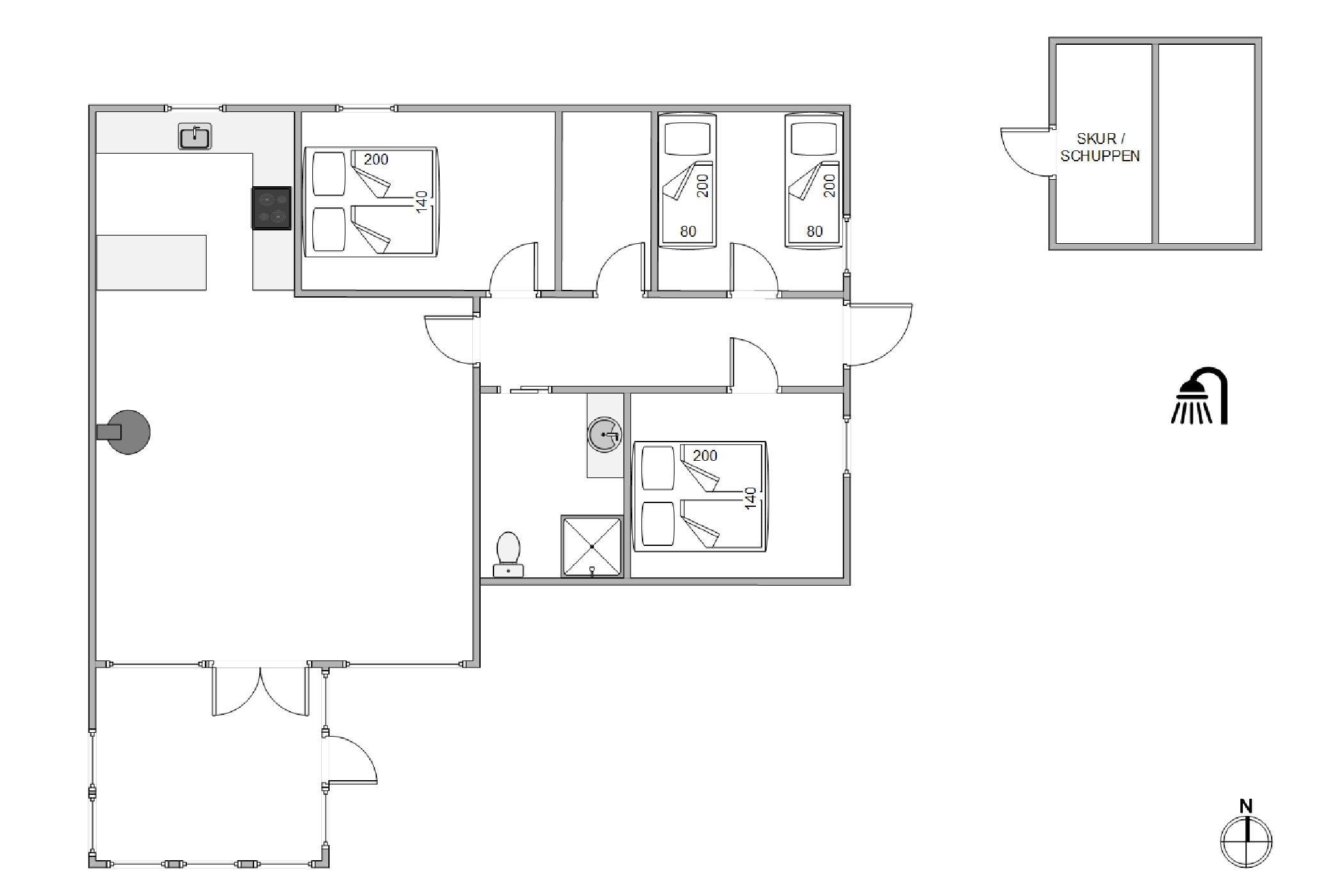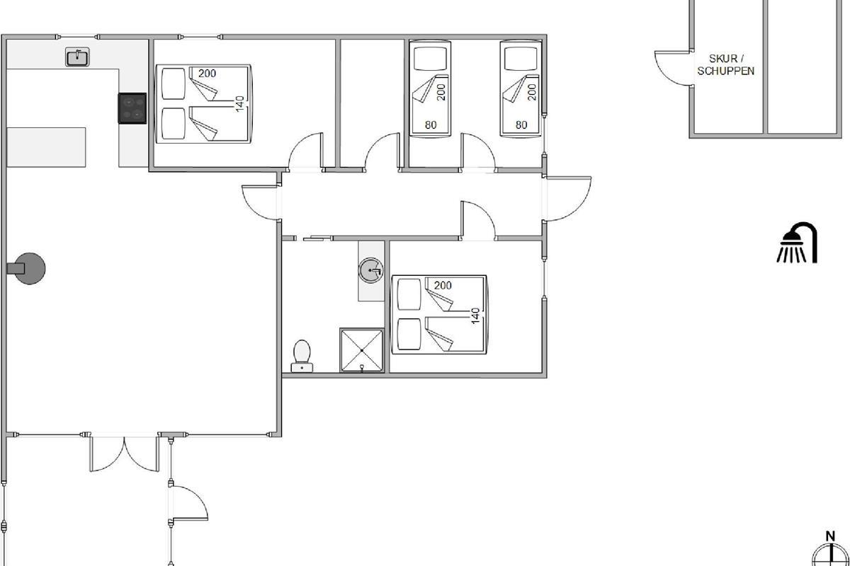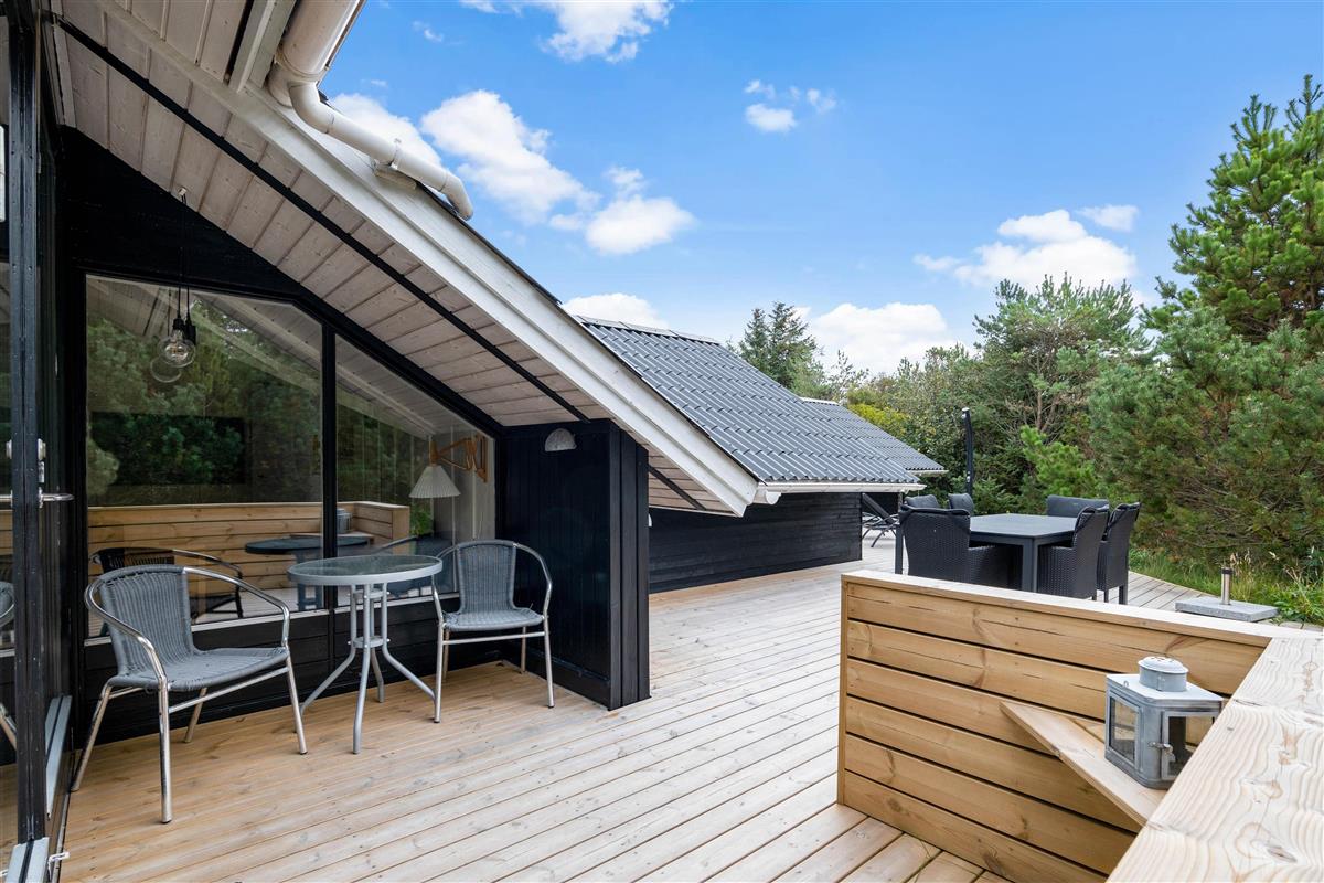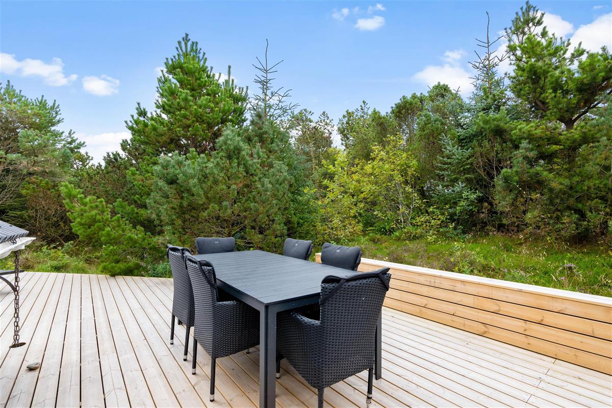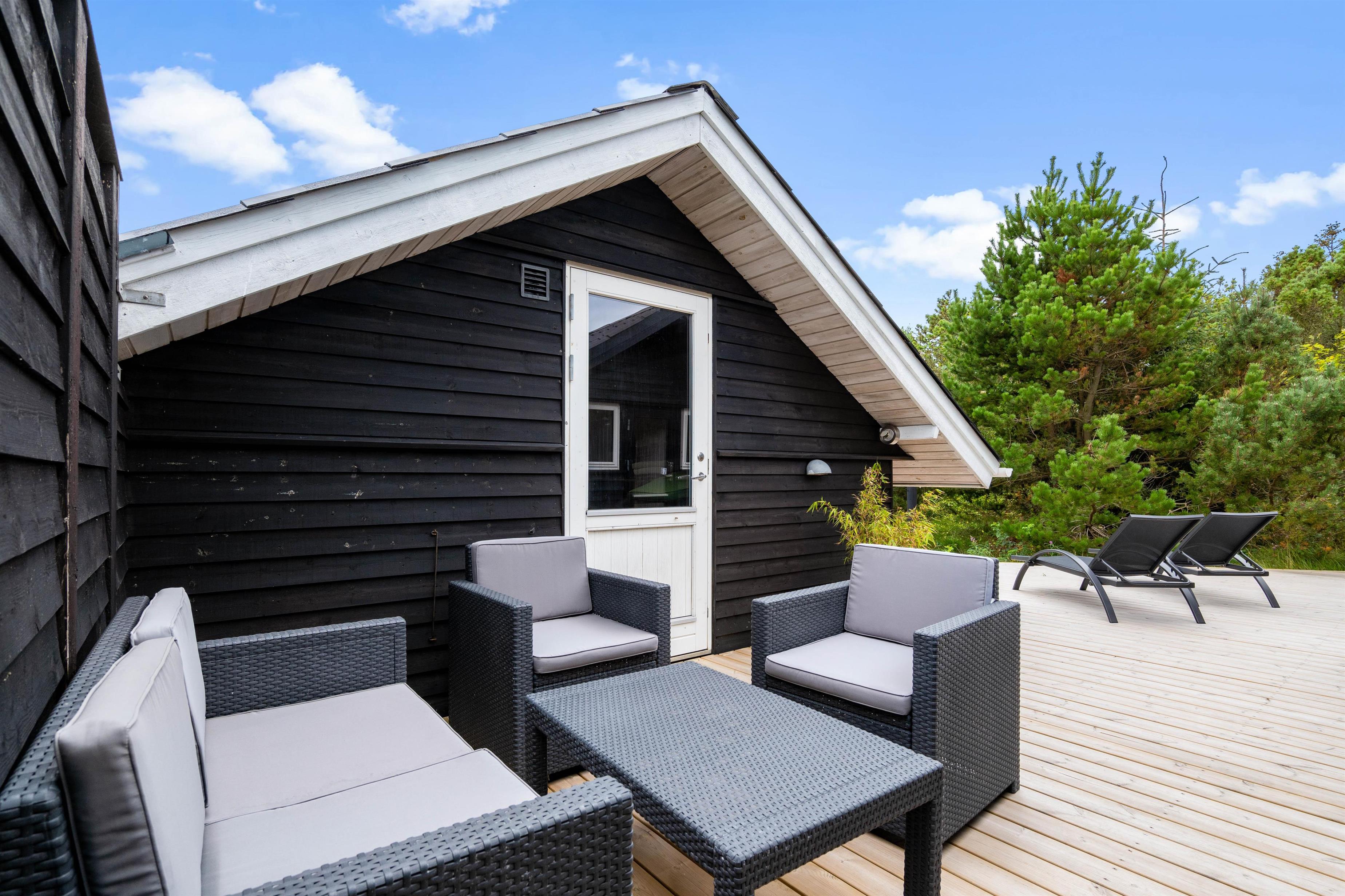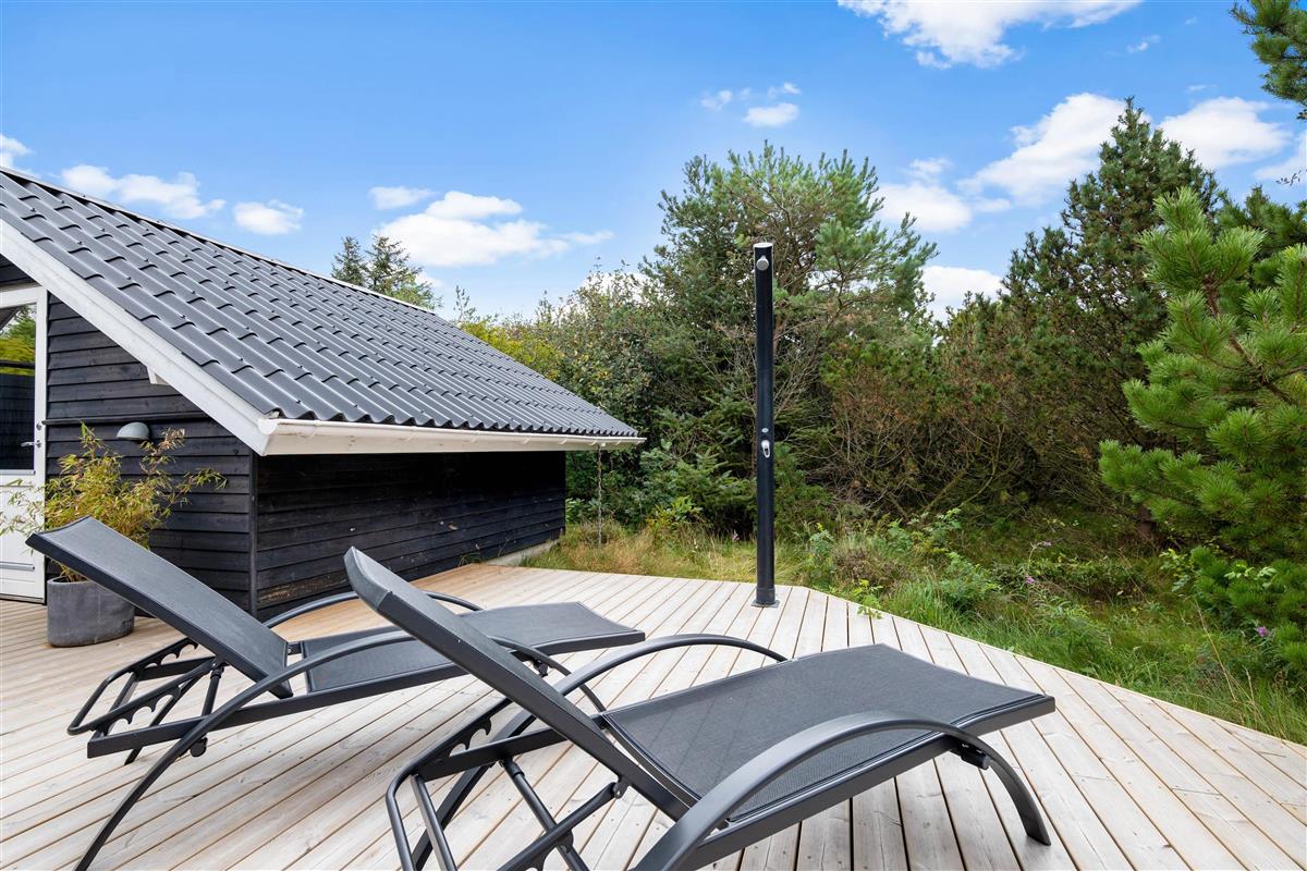 The outdoor area features a lovely wooden terrace where you can relax on garden furniture and sun loungers, simply enjoying your holiday, the sunshine and the fresh West Jutland air. There's also an outdoor shower (available April-November) perfect for washing off sand after beach visits. After hours of relaxation, fire up the barbecue and prepare a delicious dinner of grilled steaks.
