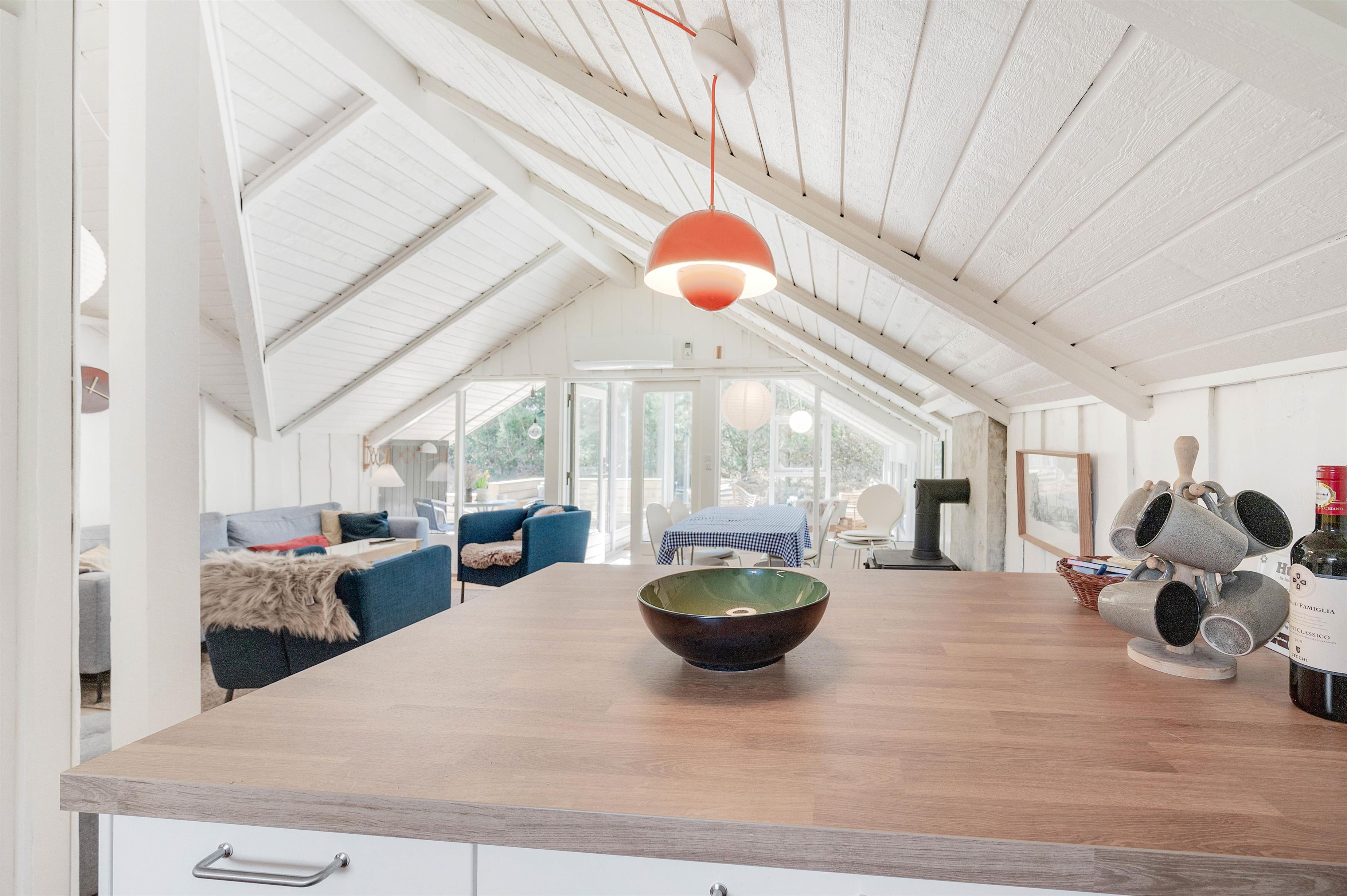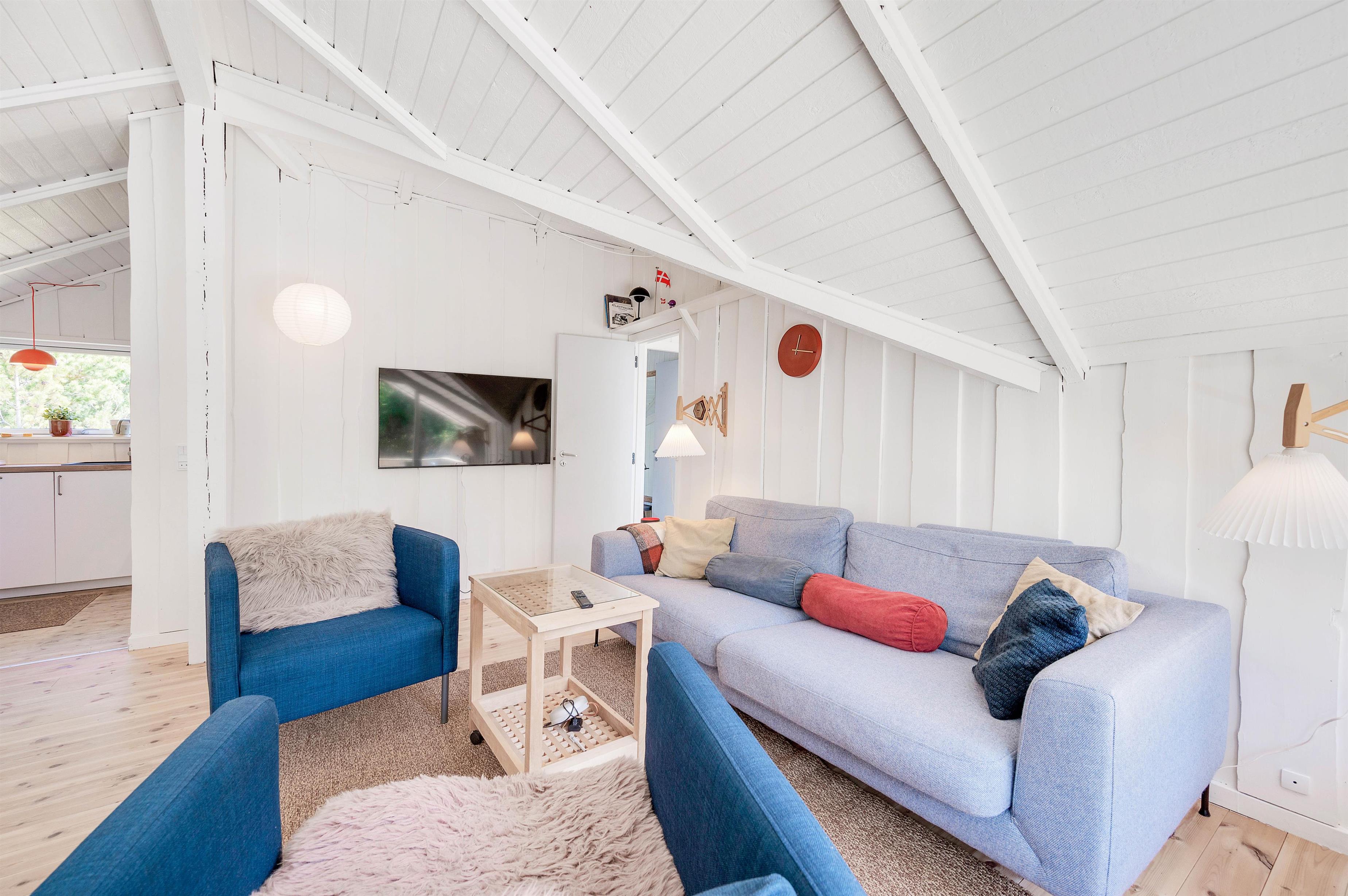 The holiday home at Hybenvej 50 is perfect for a comfortable family holiday. You'll be welcomed by cosy furnishings that, combined with the bright interior, create just the right holiday atmosphere. The holiday home measures 67 square metres and features three bedrooms where you can rest and prepare for your holiday adventures. Two bedrooms each have a double bed, while the third contains two single beds. All three bedrooms feature wooden flooring.