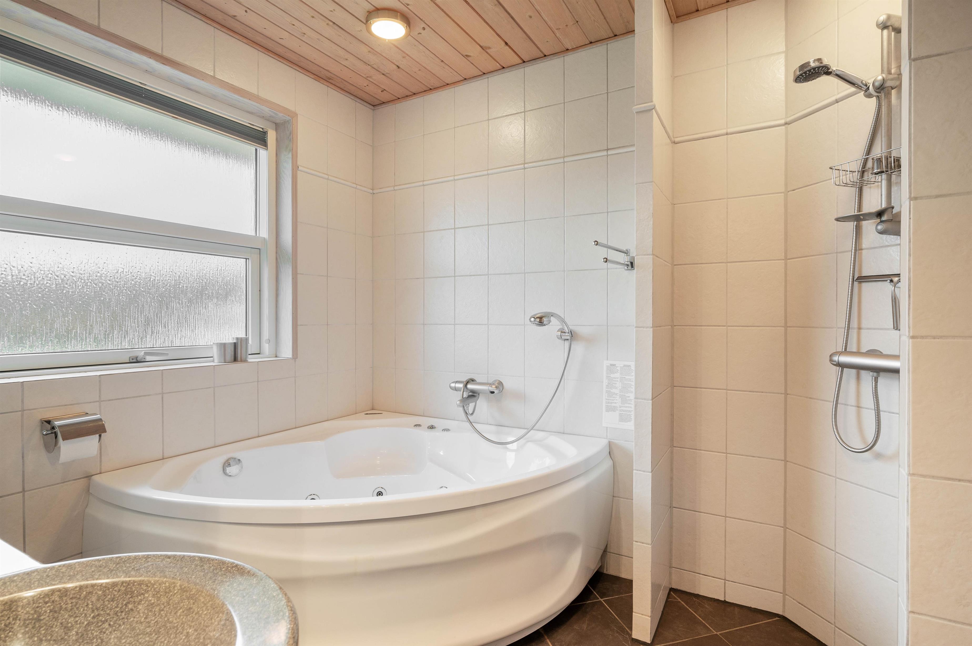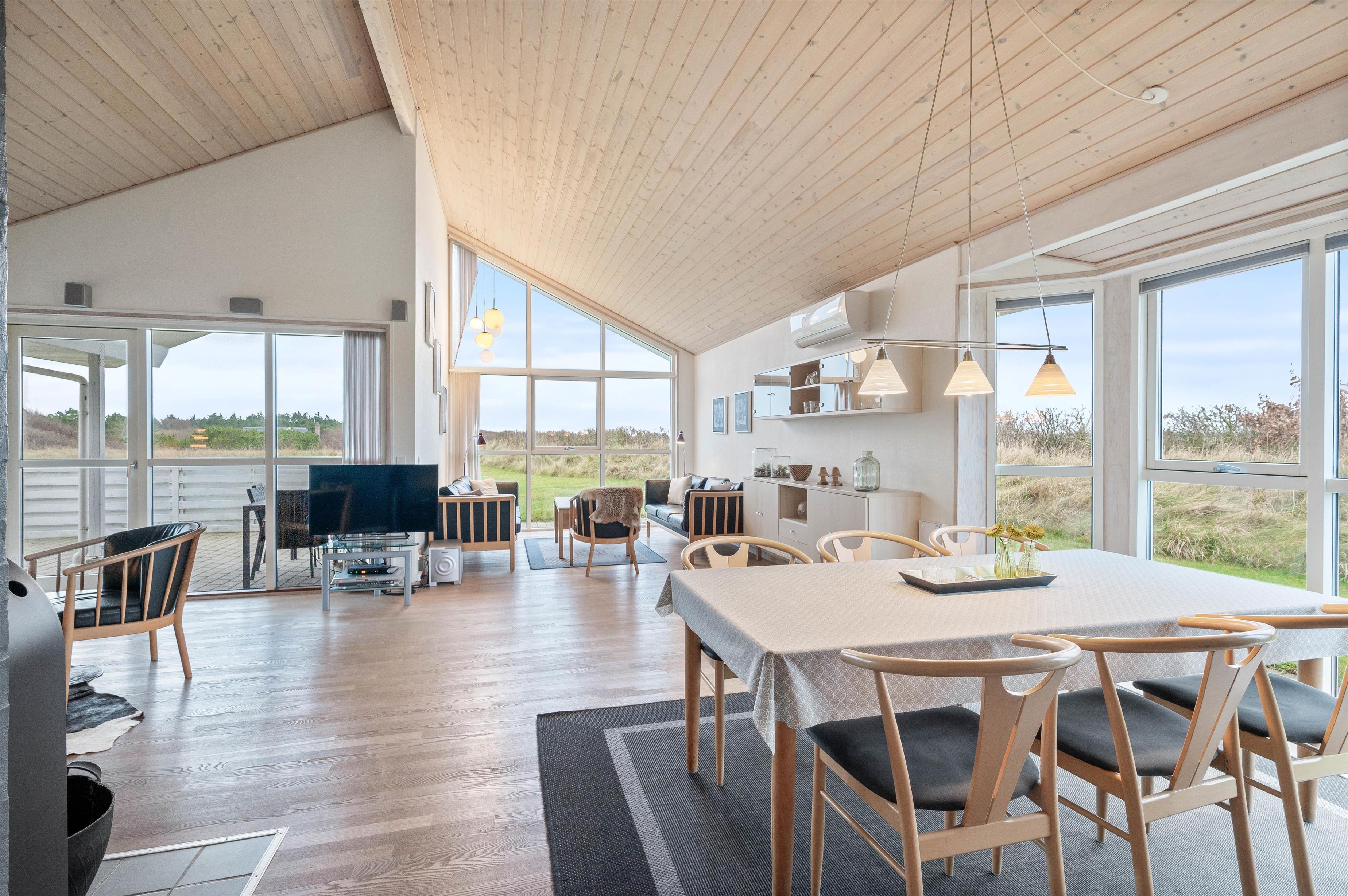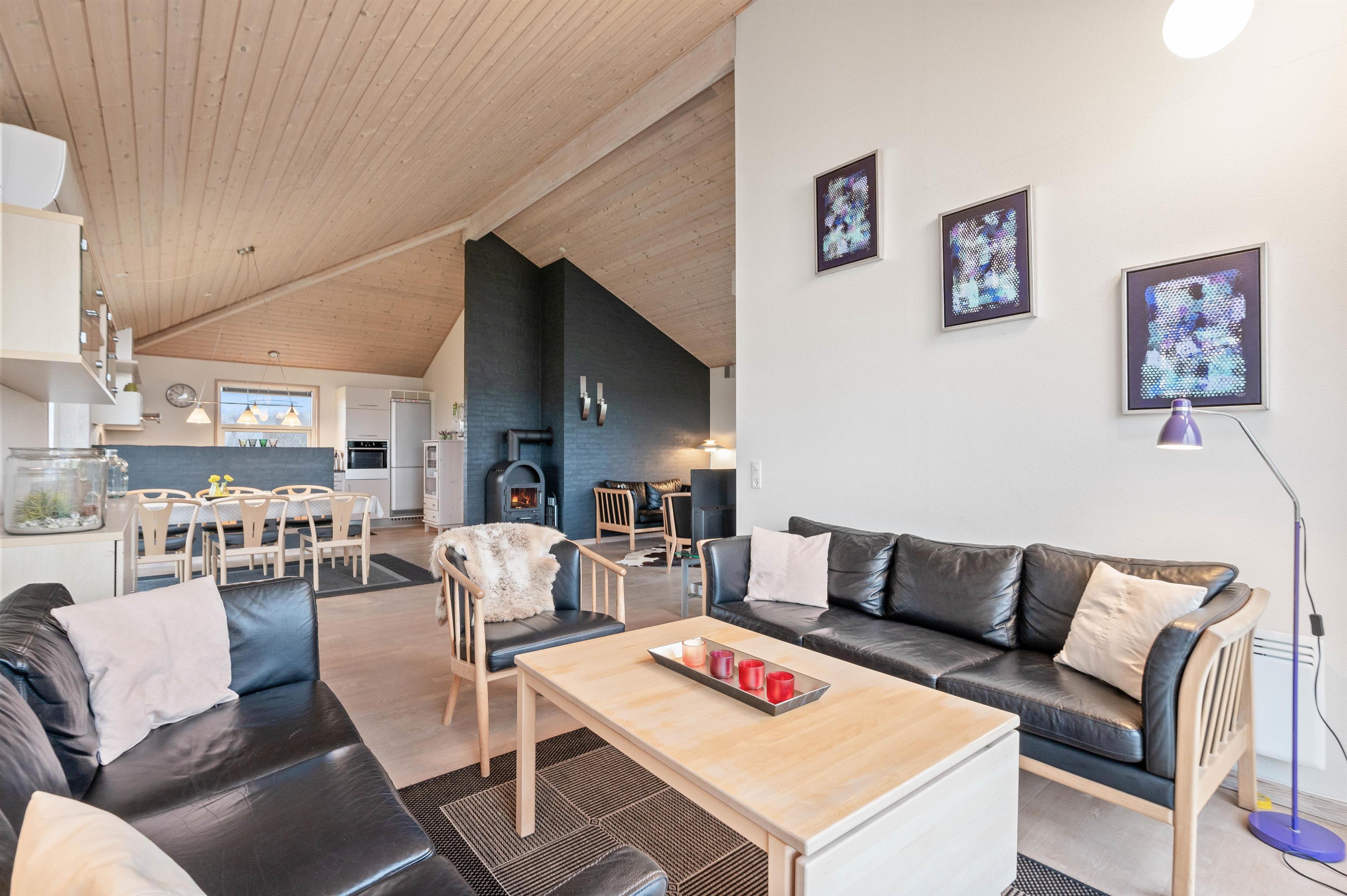 The beautiful bathroom includes a whirlpool and sauna. The living area features high ceilings, creating a spacious atmosphere. The kitchen and dining area flow into the living space, where a wood-burning stove awaits to provide cosy evenings. The house also offers a flat-screen TV and complimentary internet access.