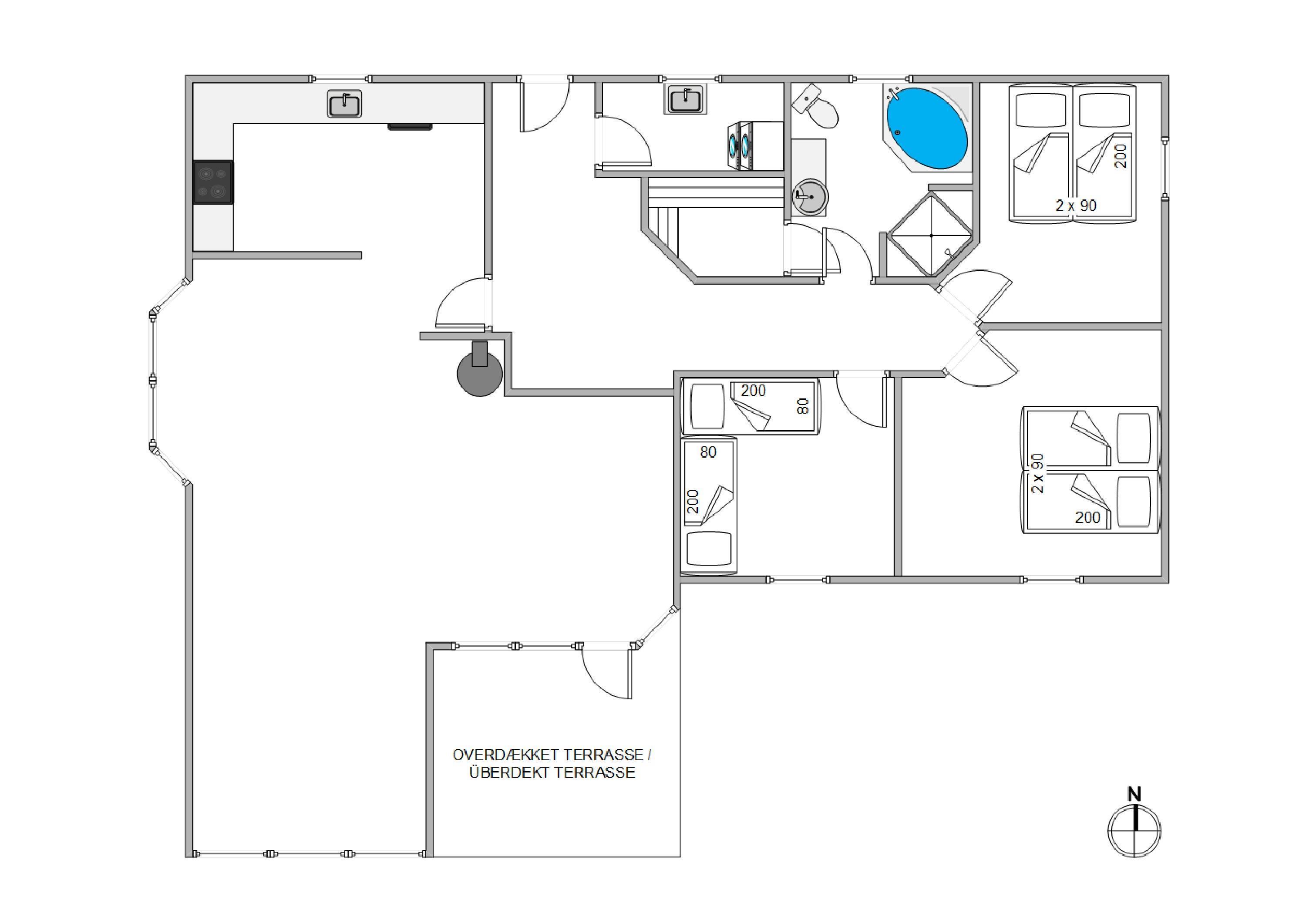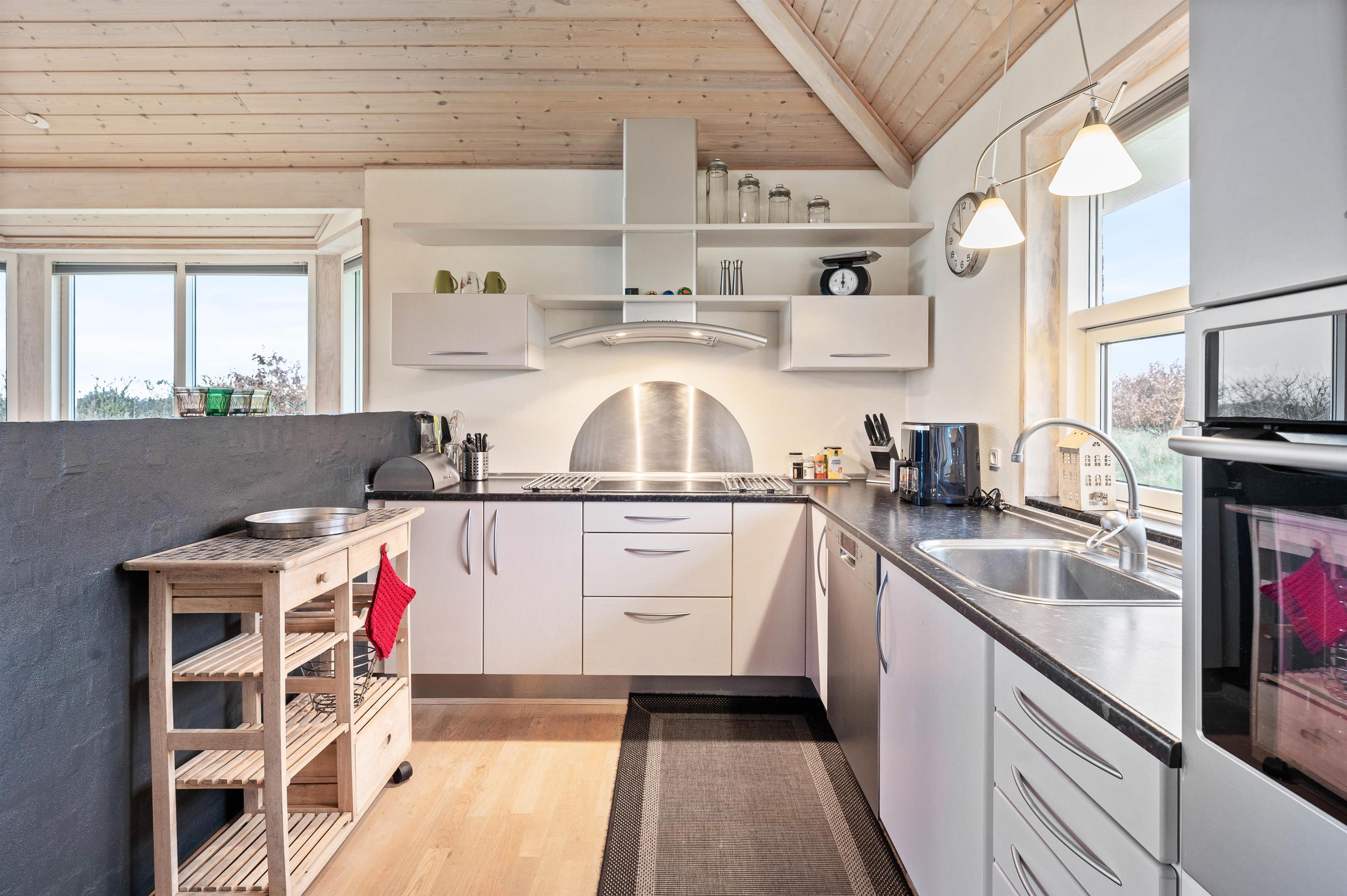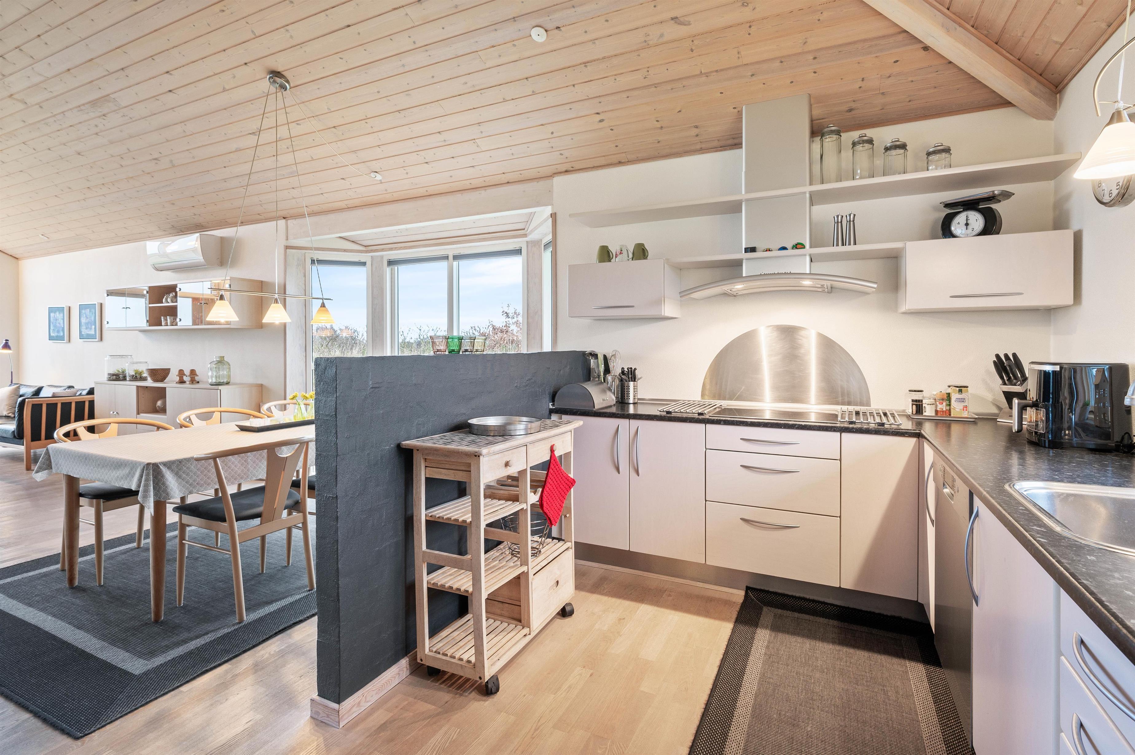 The beautiful bathroom includes a whirlpool and sauna. The living area features high ceilings, creating a spacious atmosphere. The kitchen and dining area flow into the living space, where a wood-burning stove awaits to provide cosy evenings. The house also offers a flat-screen TV and complimentary internet access.