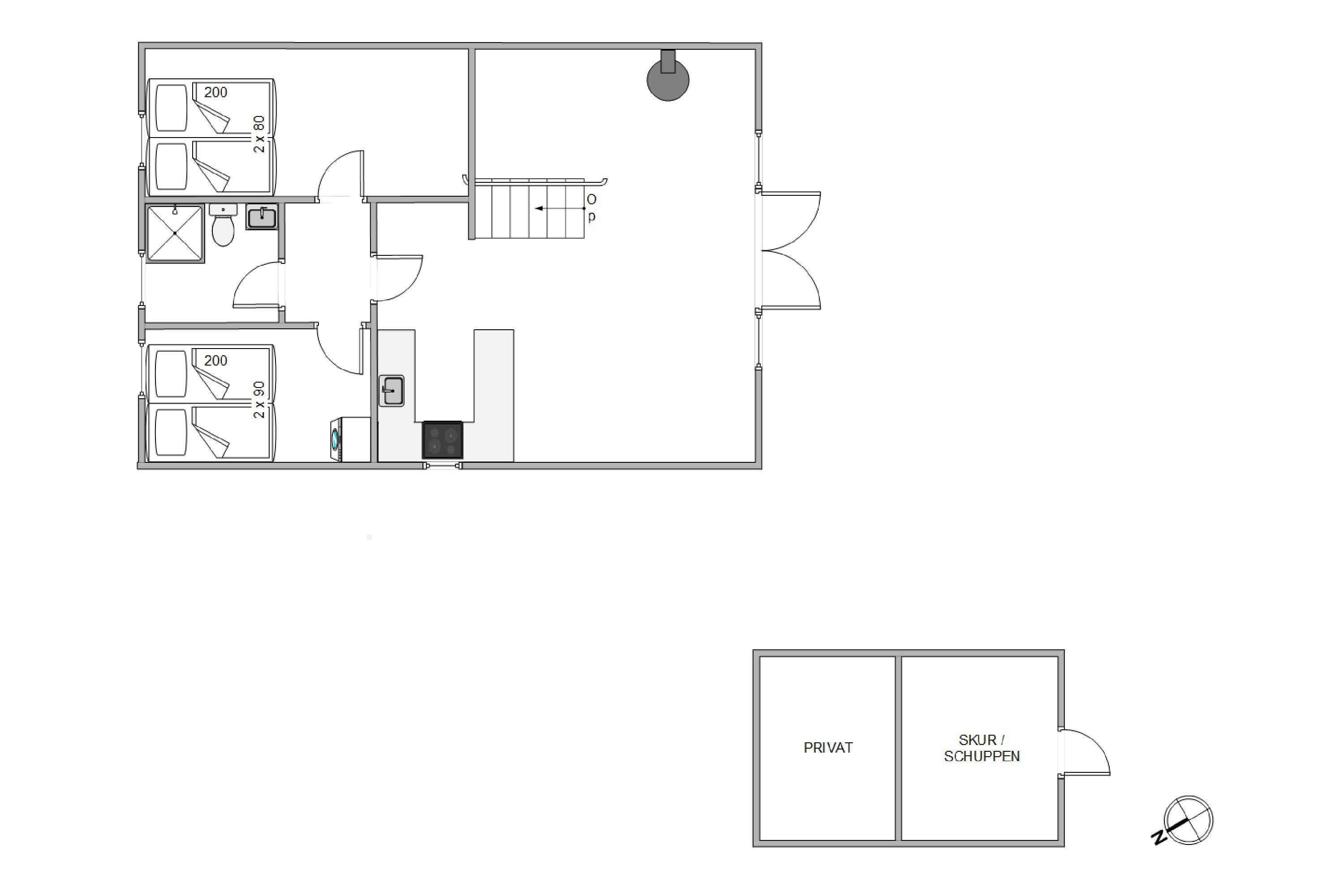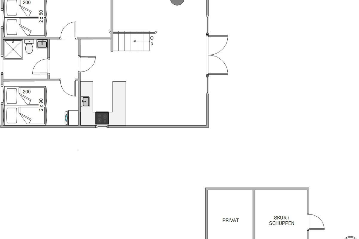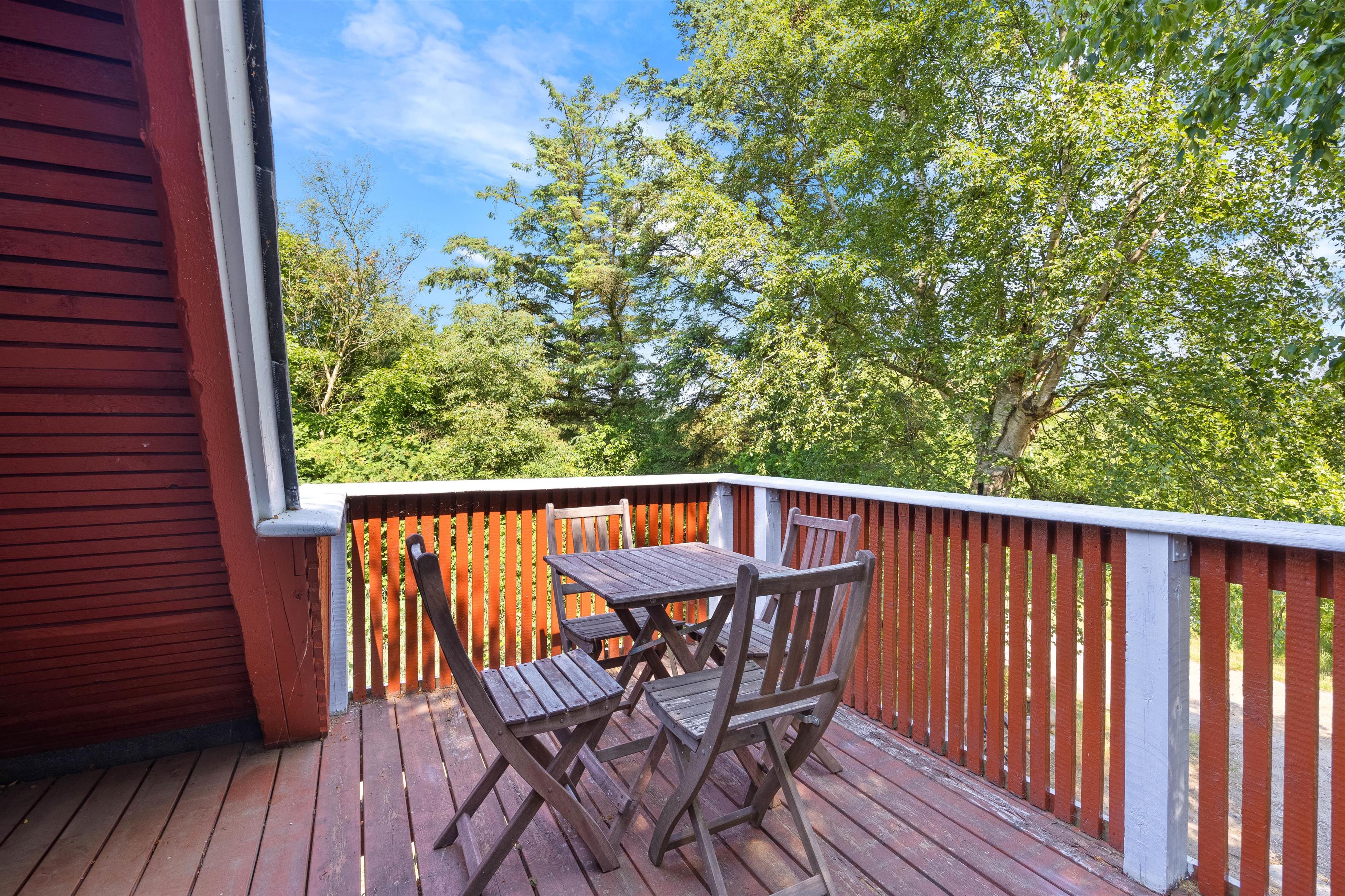 The holiday home at Rævekrogen 8 welcomes you with a cosy, traditional cabin atmosphere featuring exposed wooden beams and wood-panelled walls, reminiscent of an Austrian alpine chalet. Combined with the wood-burning stove, this creates the perfect holiday home ambiance.