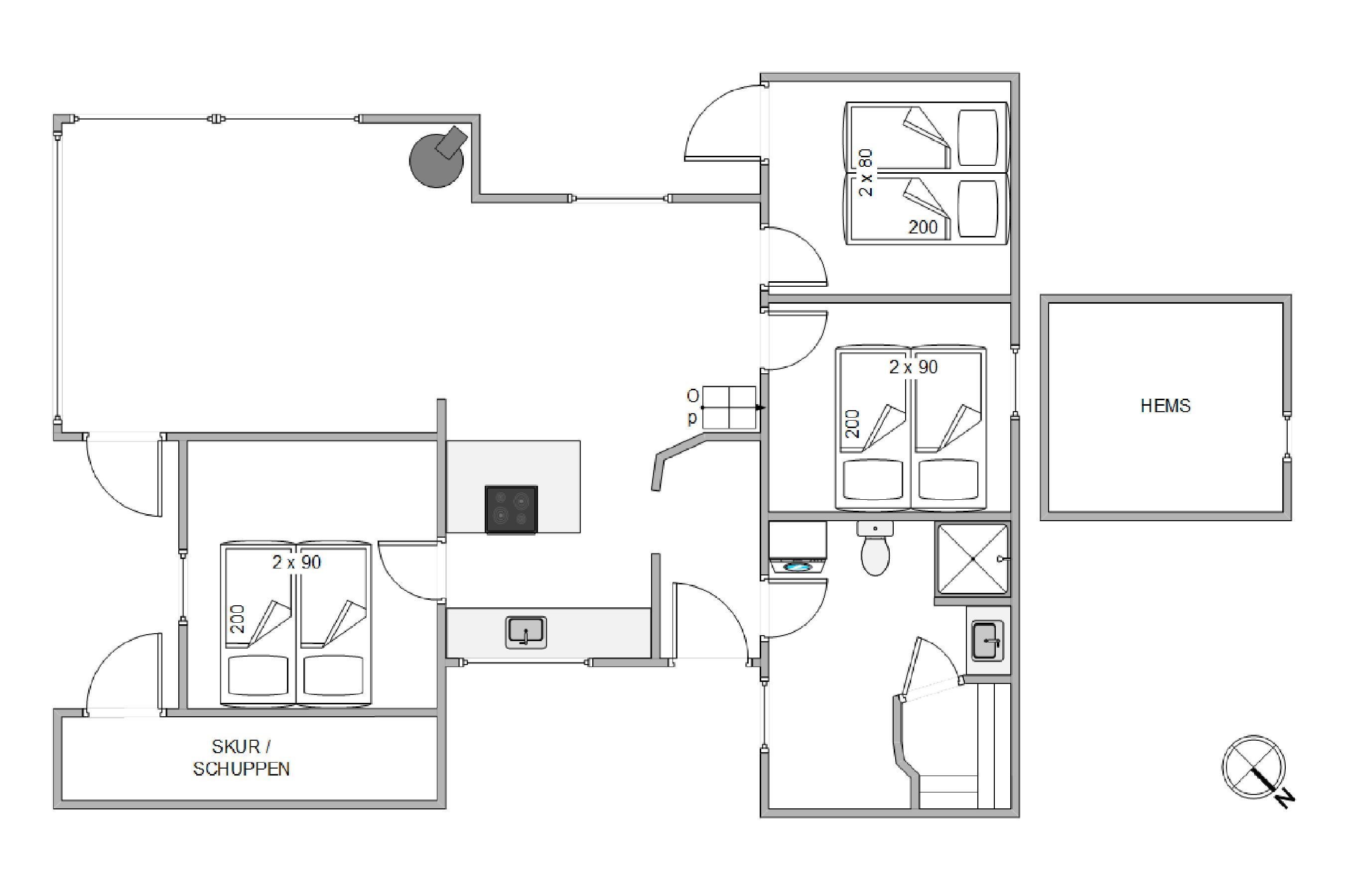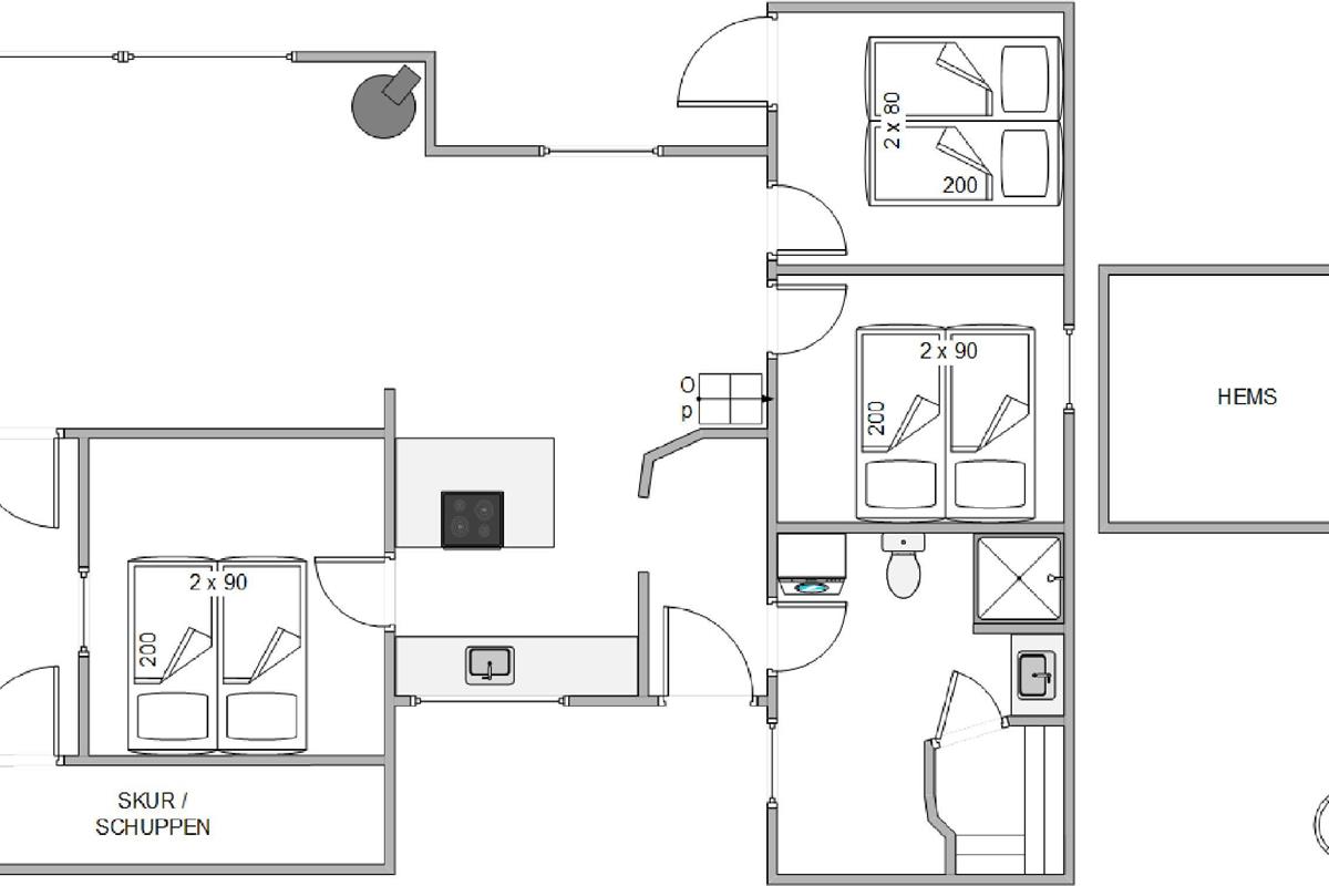 The holiday home features three bedrooms, each equipped with a double bed, and one bathroom. Underfloor heating in the bathroom ensures warm feet, and there's a sauna where you can enjoy a peaceful retreat. Take an hour for yourself - the warmth and tranquility help you unwind without even leaving your cosy holiday home!