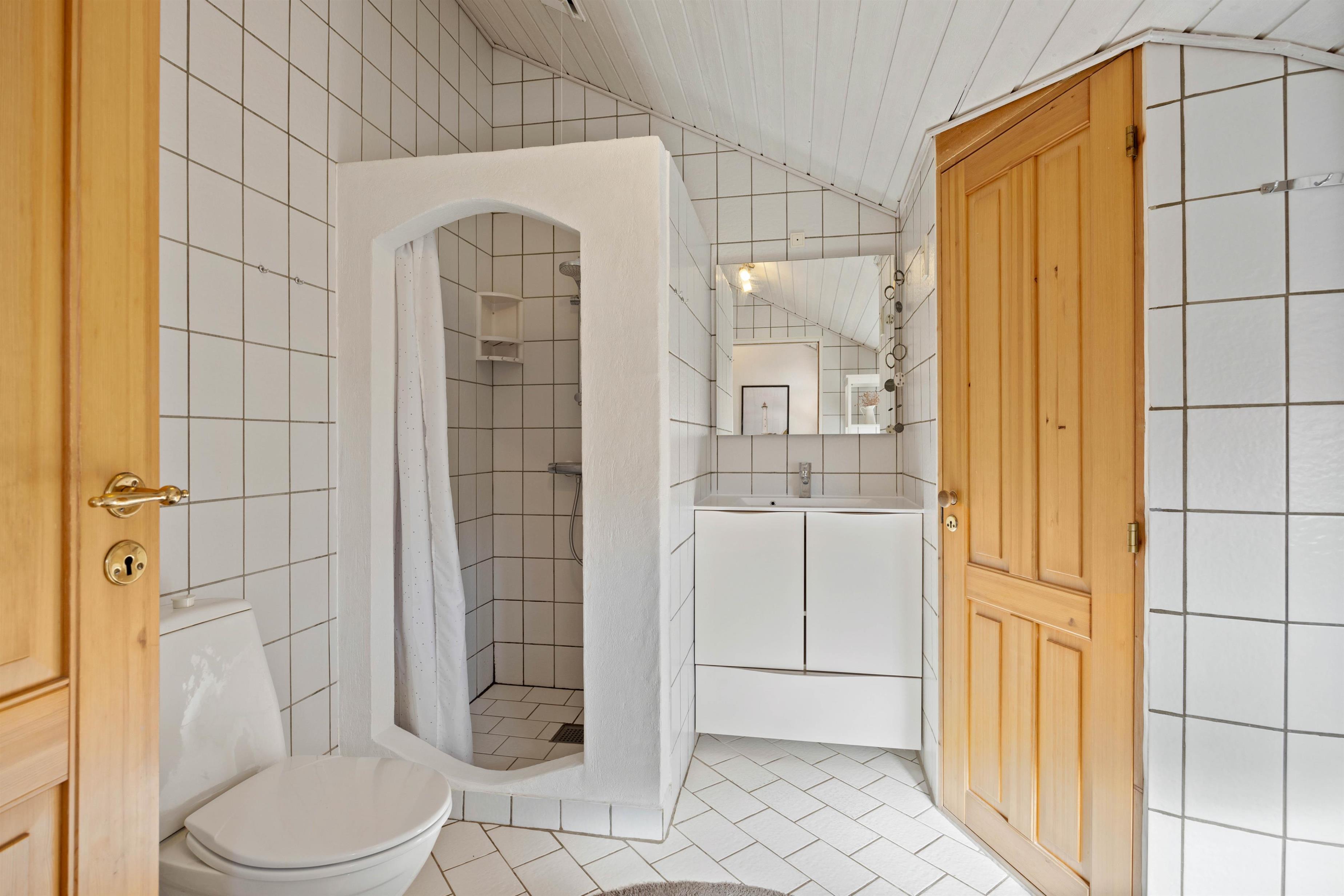 Bathroom with underfloor heating & sauna - perfect for relaxation; outdoor shelter