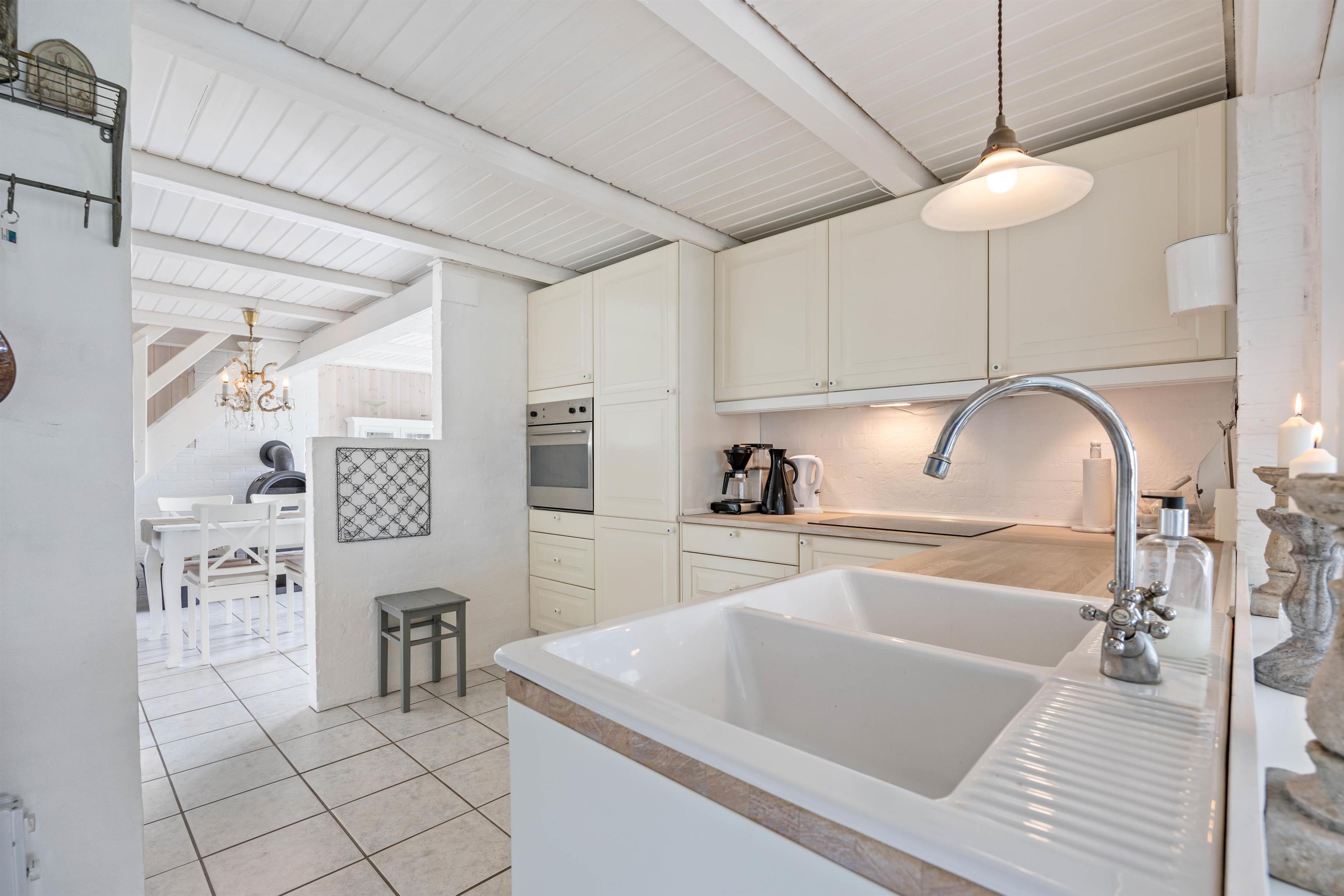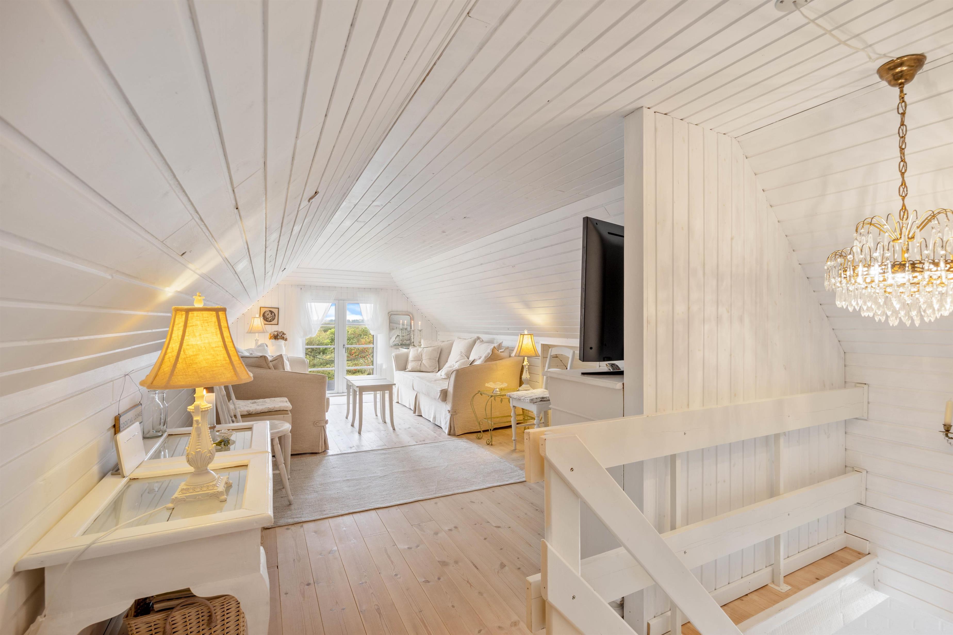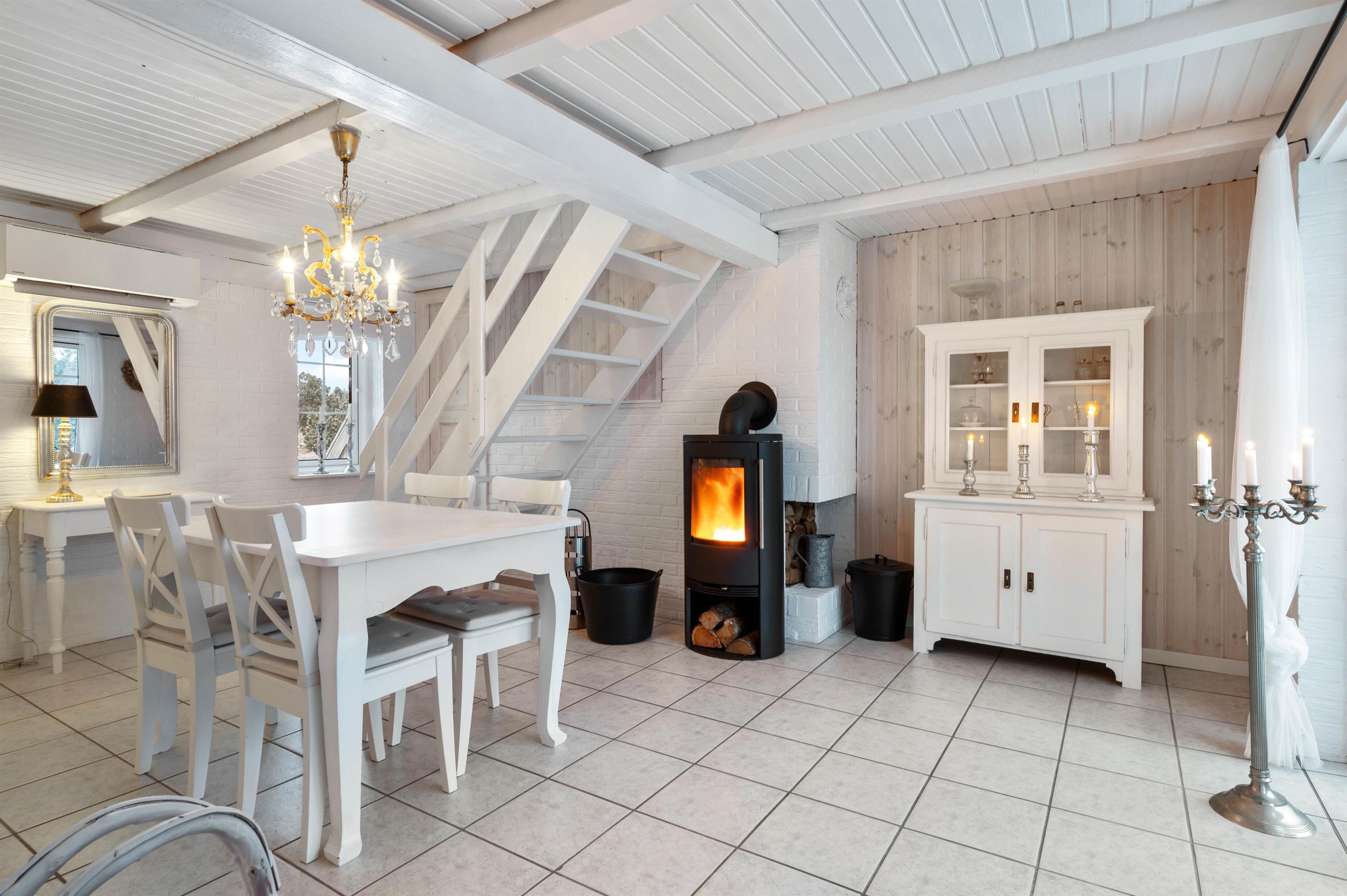 The 88 square metres are spread across two levels. The ground floor features an open-plan kitchen and dining area, a compact but well-appointed bathroom with underfloor heating, three bedrooms, and an inviting conservatory. Make yourself at home over dinner and enjoy an evening of board games by the crackling fire, or savour a glass of wine in the conservatory. You're sure to feel relaxed and at ease in this holiday home's comfortable atmosphere.