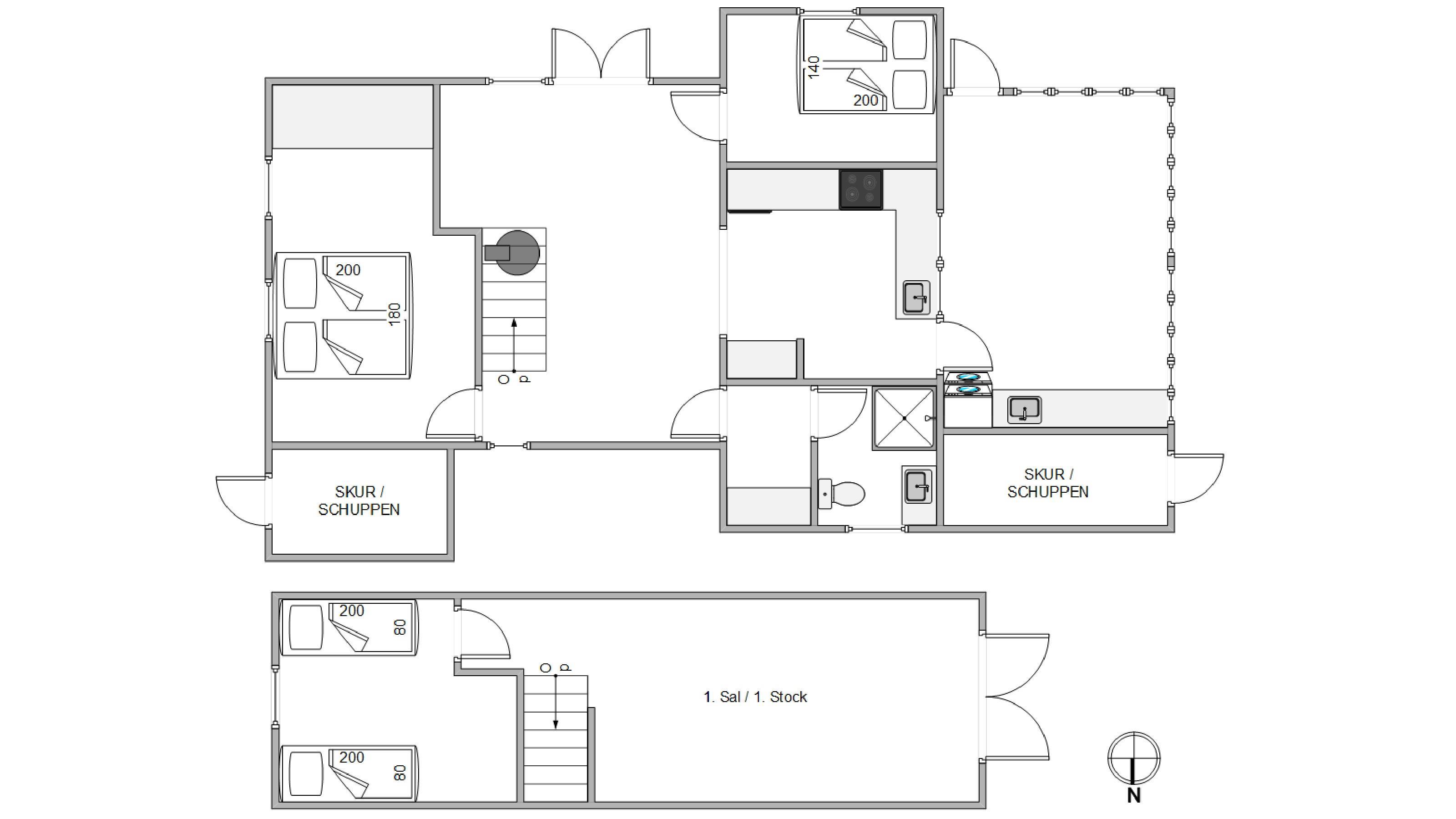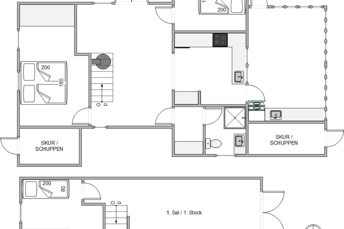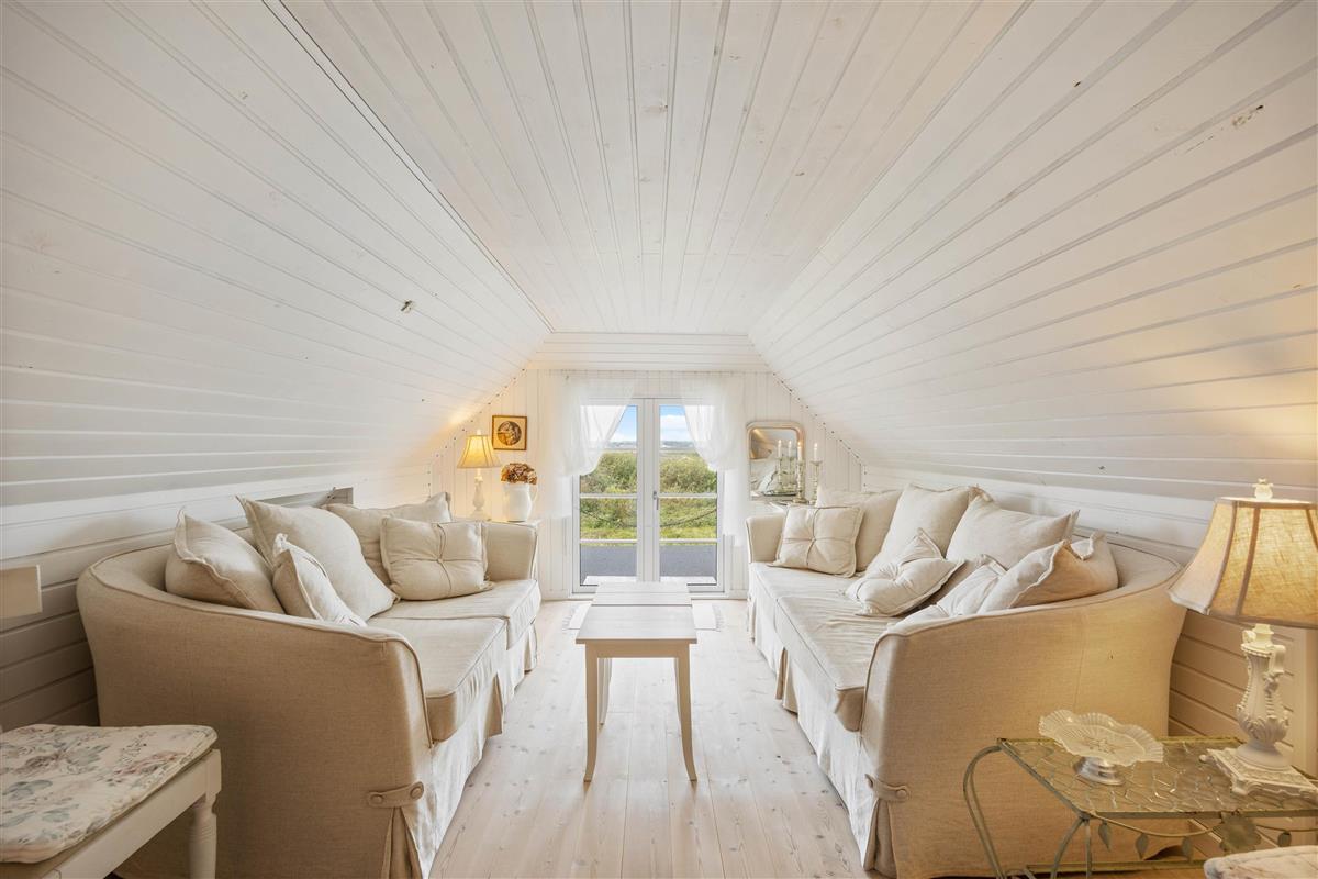 The 88 square metres are spread across two levels. The ground floor features an open-plan kitchen and dining area, a compact but well-appointed bathroom with underfloor heating, three bedrooms, and an inviting conservatory. Make yourself at home over dinner and enjoy an evening of board games by the crackling fire, or savour a glass of wine in the conservatory. You're sure to feel relaxed and at ease in this holiday home's comfortable atmosphere.
