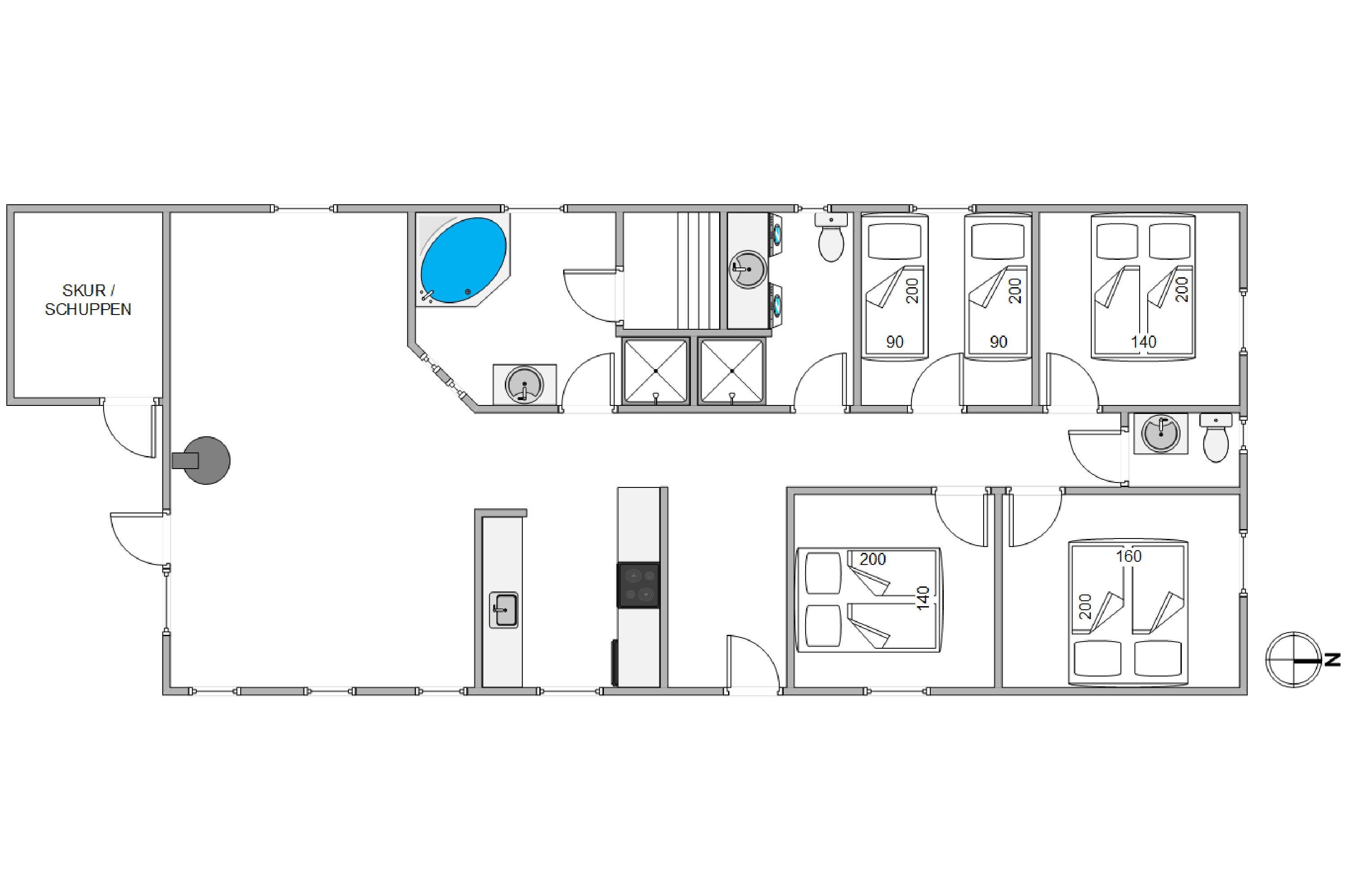 The holiday home features 4 bedrooms, one of which has a TV that can only be used with a gaming console. The bedrooms provide an excellent setup for a holiday with the whole family or with good friends. Everyone has their own space, and there's no need to queue for the bathroom as there are 2 bathrooms plus a guest toilet.