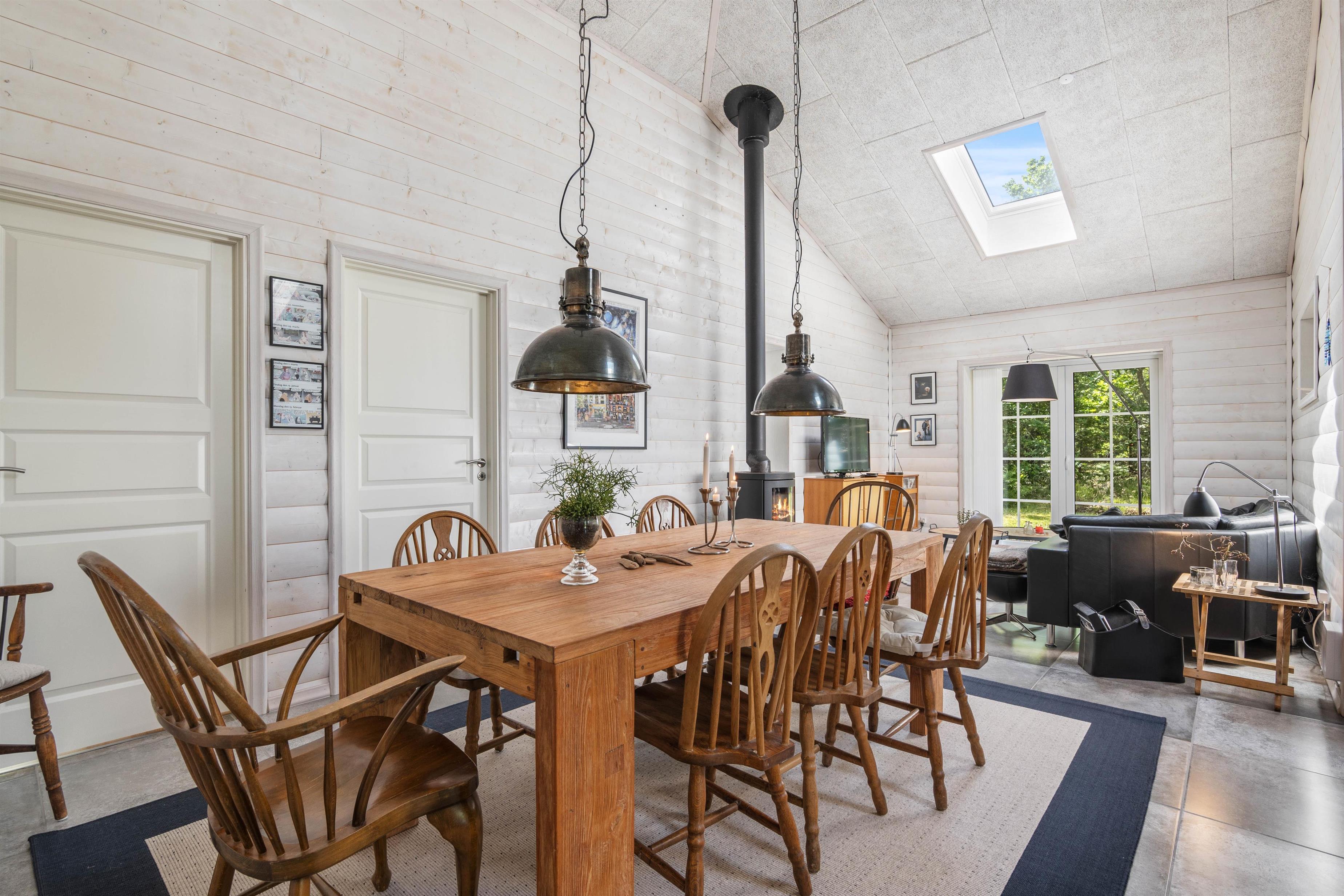 The kitchen, living room and dining area combine in an open-plan living space that forms the heart of the holiday home. Here you can enjoy pleasant holiday moments cooking together, playing games and watching films. While you enjoy your activities in the living room, the wood-burning stove adds to the holiday atmosphere. The living room also features underfloor heating to keep your feet warm during the cooler seasons.