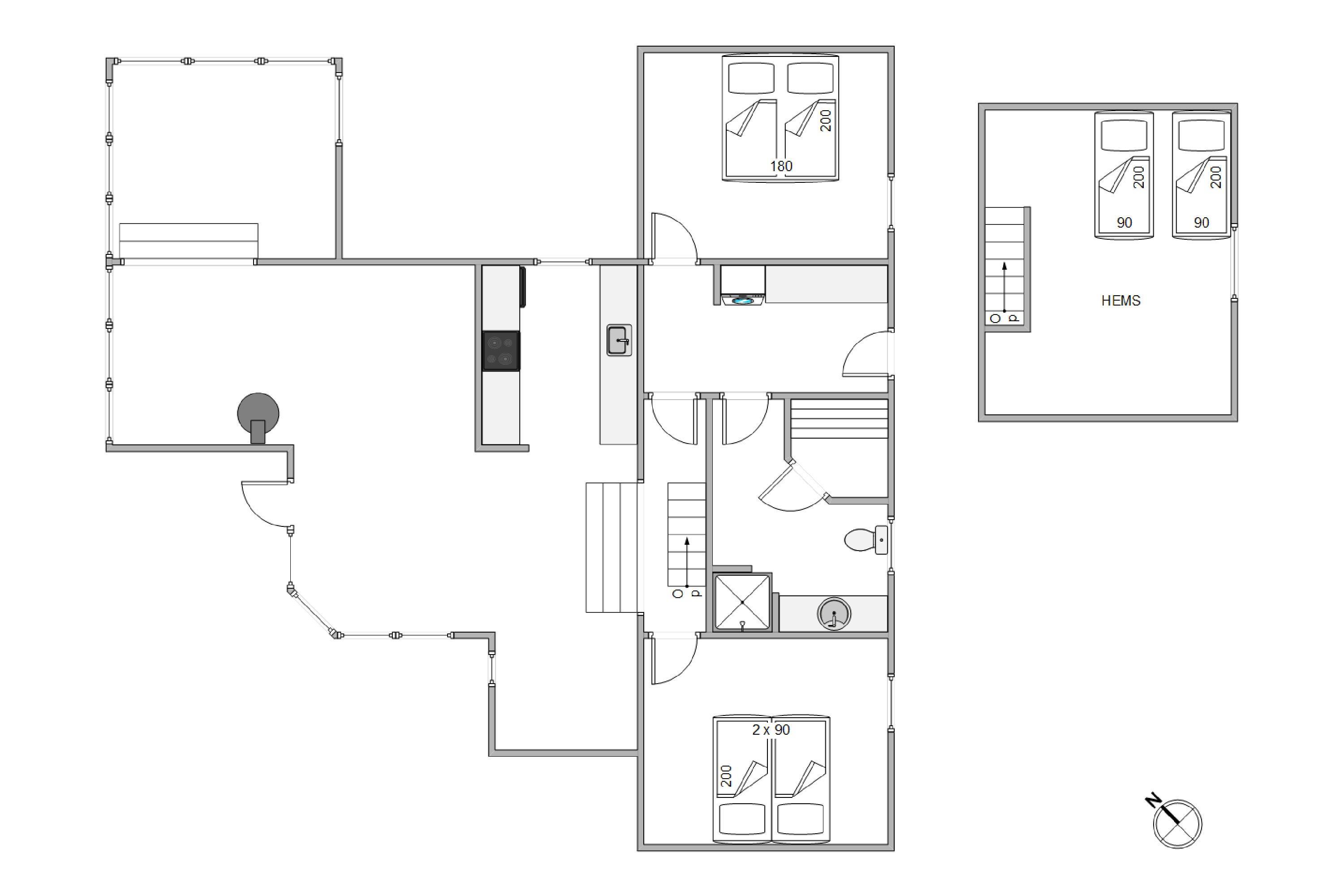 This 120 sqm summer house can welcome up to 6 people. The heart of the house is the open-plan kitchen and living area, seamlessly connected to the dining and lounge spaces. Prepare delicious meals in the fully equipped kitchen, while the wood-burning stove and heat pump provide warmth and comfort year-round. The TV lounge offers a cozy retreat for relaxation, where you can enjoy a good film, you may spot some of the many deer that pass through the garden.