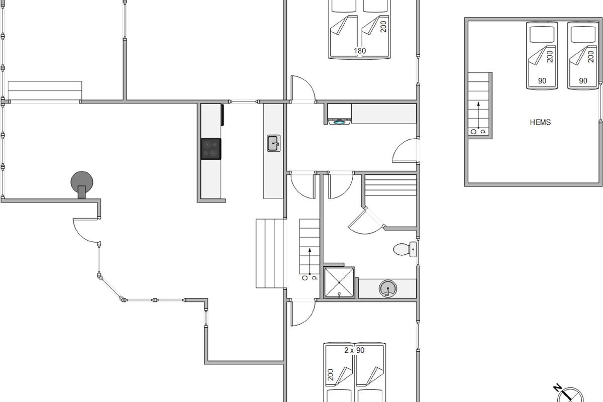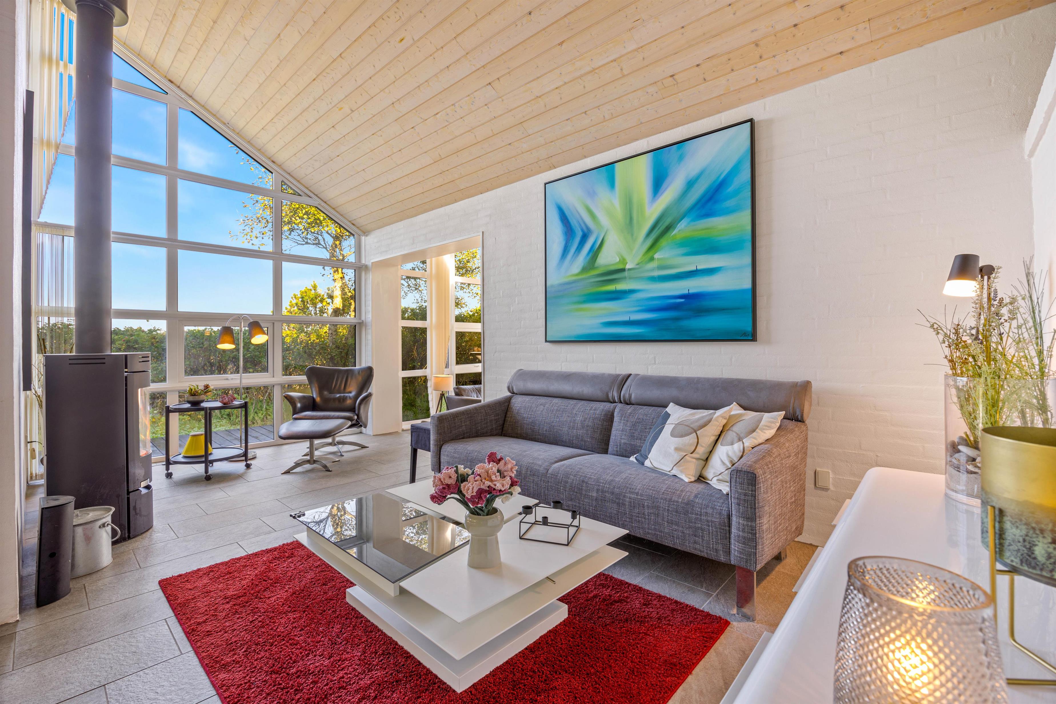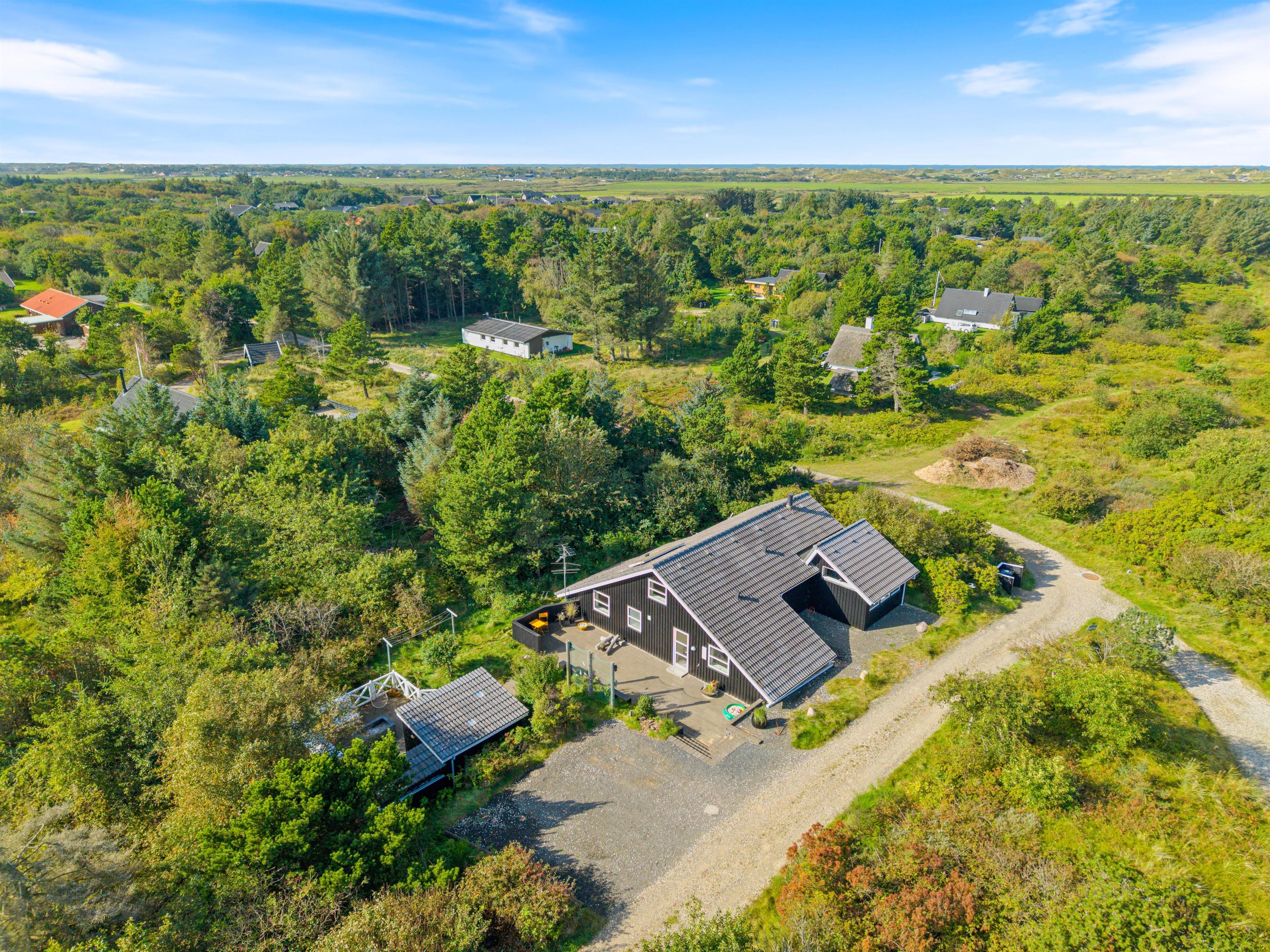 The summer house is only 1,800 meters from the North Sea, perfect for beautiful walks along the beach, and approximately 3,500 meters from shopping opportunities and ideal for a spontaneous beach trip or a leisurely shopping outing. In Søndervig, you’ll find supermarkets, restaurants, cafés, and small shops offering everything from daily groceries to souvenirs. The area also features charming farm shops and attractions such as Bagges Dæmning and the lock in Hvide Sande.