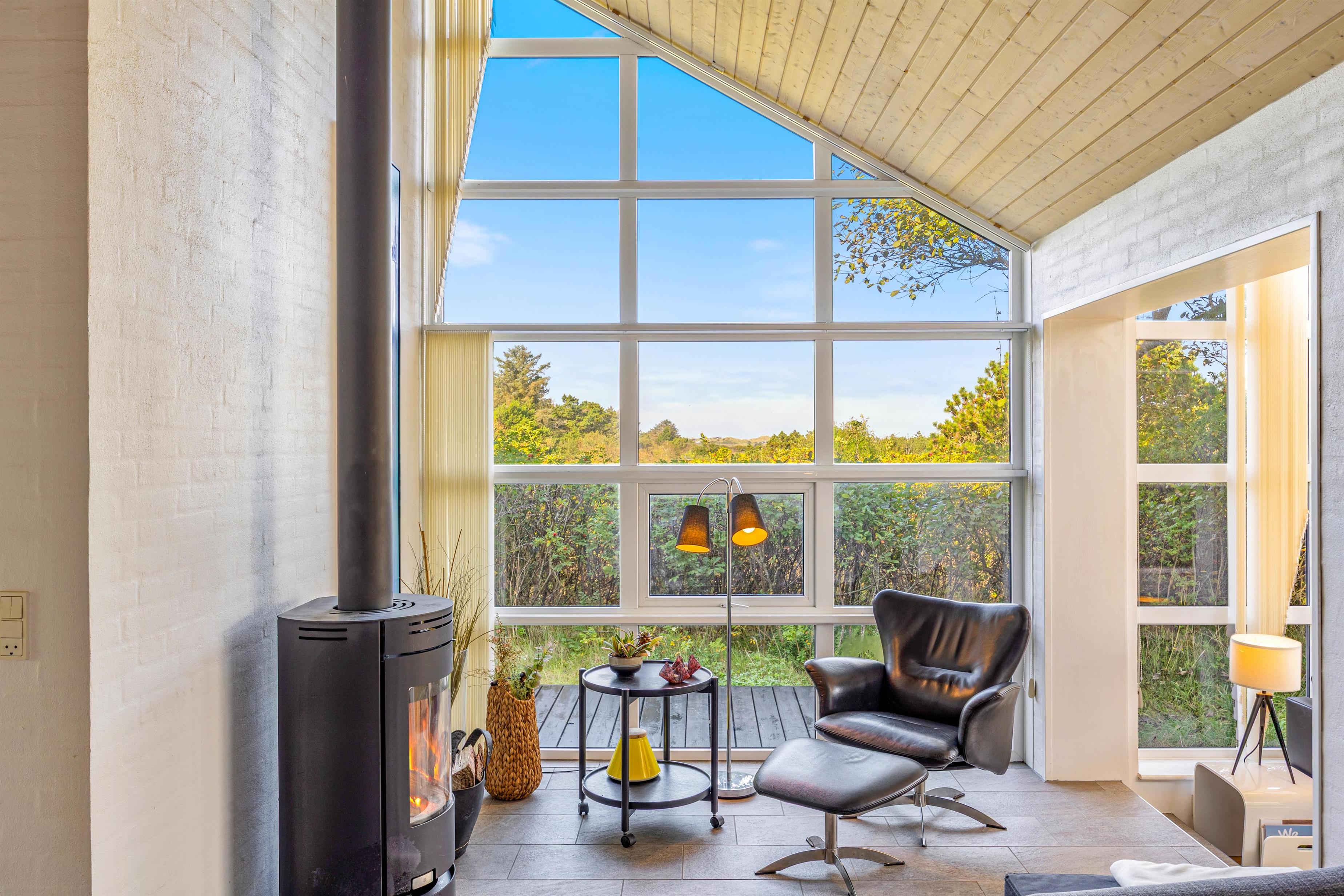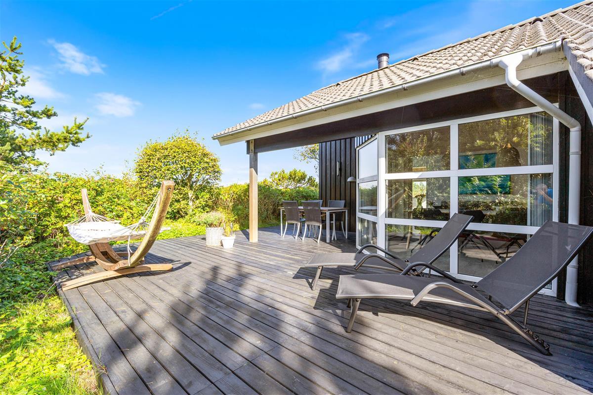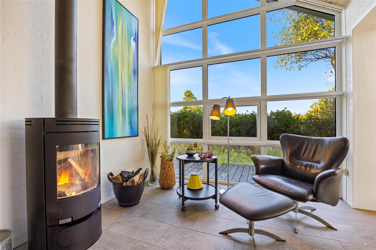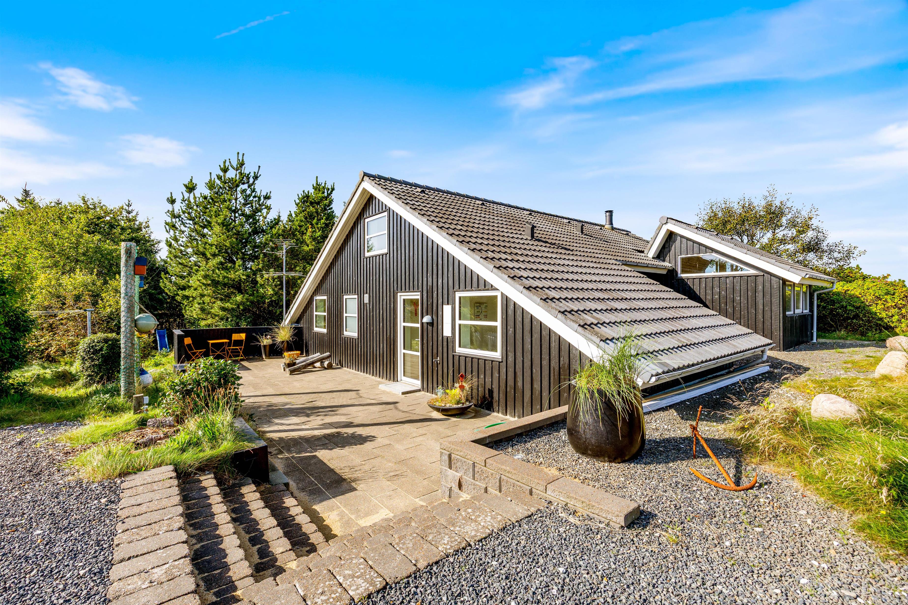 The outdoor area includes garden furniture, sun loungers, and a barbecue, allowing you to enjoy meals outside and relax in full comfort. Combining a scenic location with functional and cozy amenities, this summer house is ideal for families or groups seeking a relaxing holiday near Lodbjerg Hede and the North Sea.