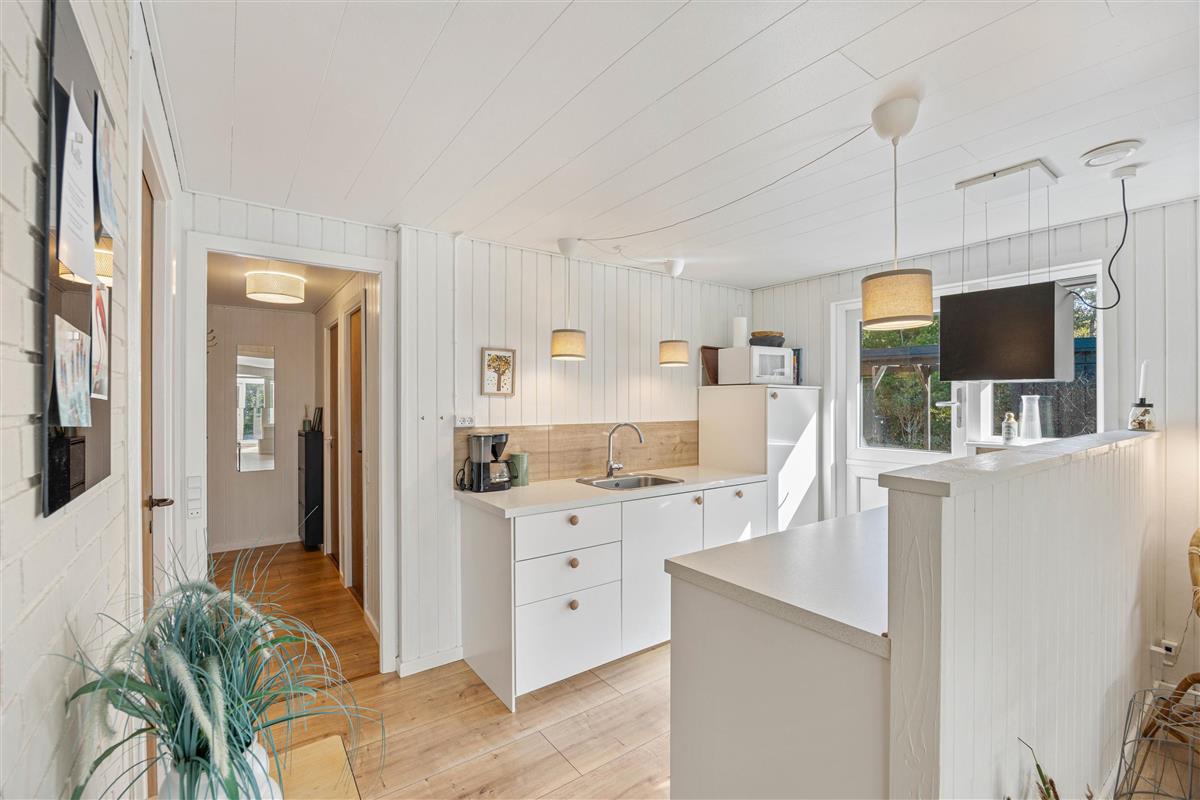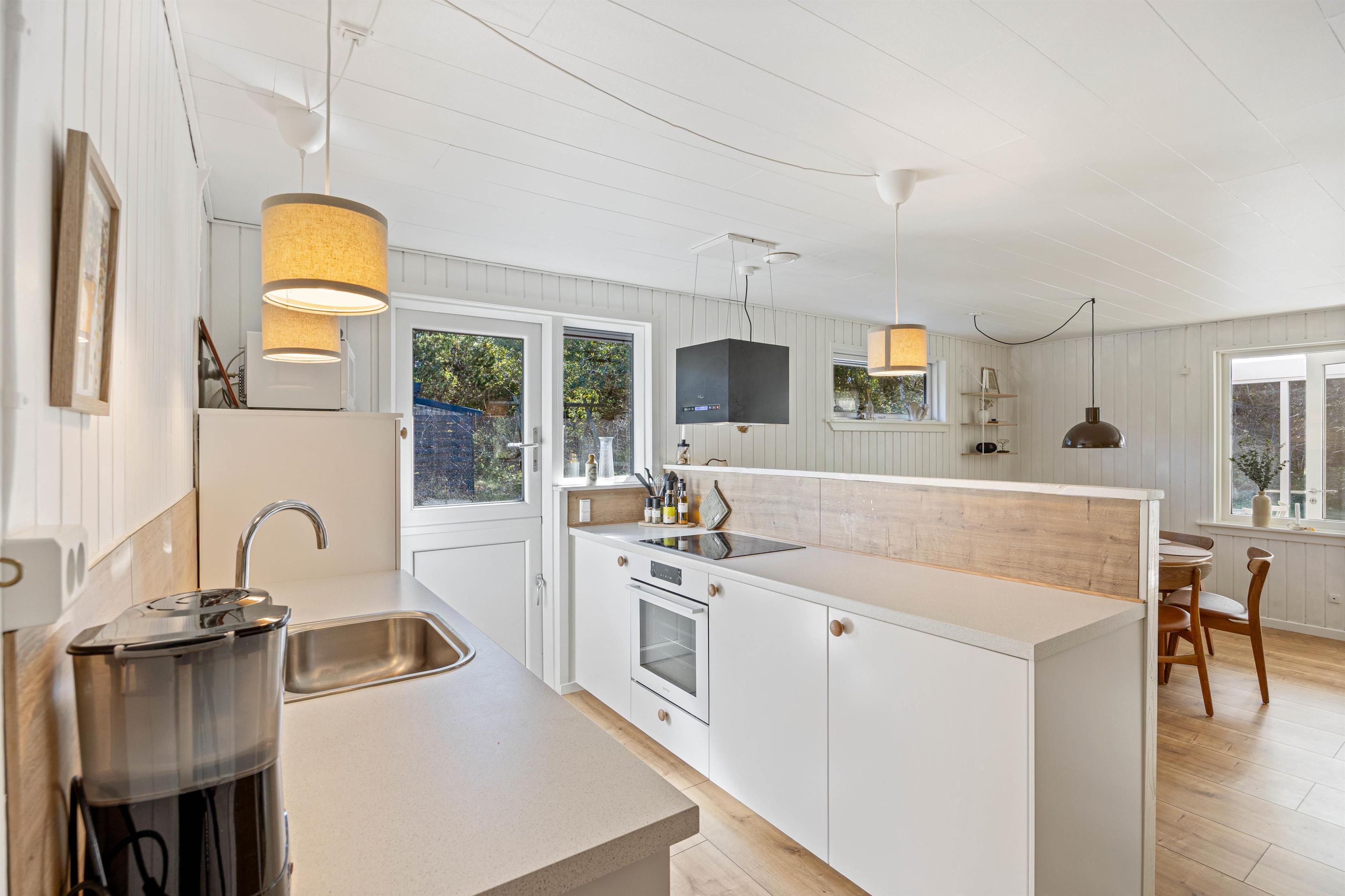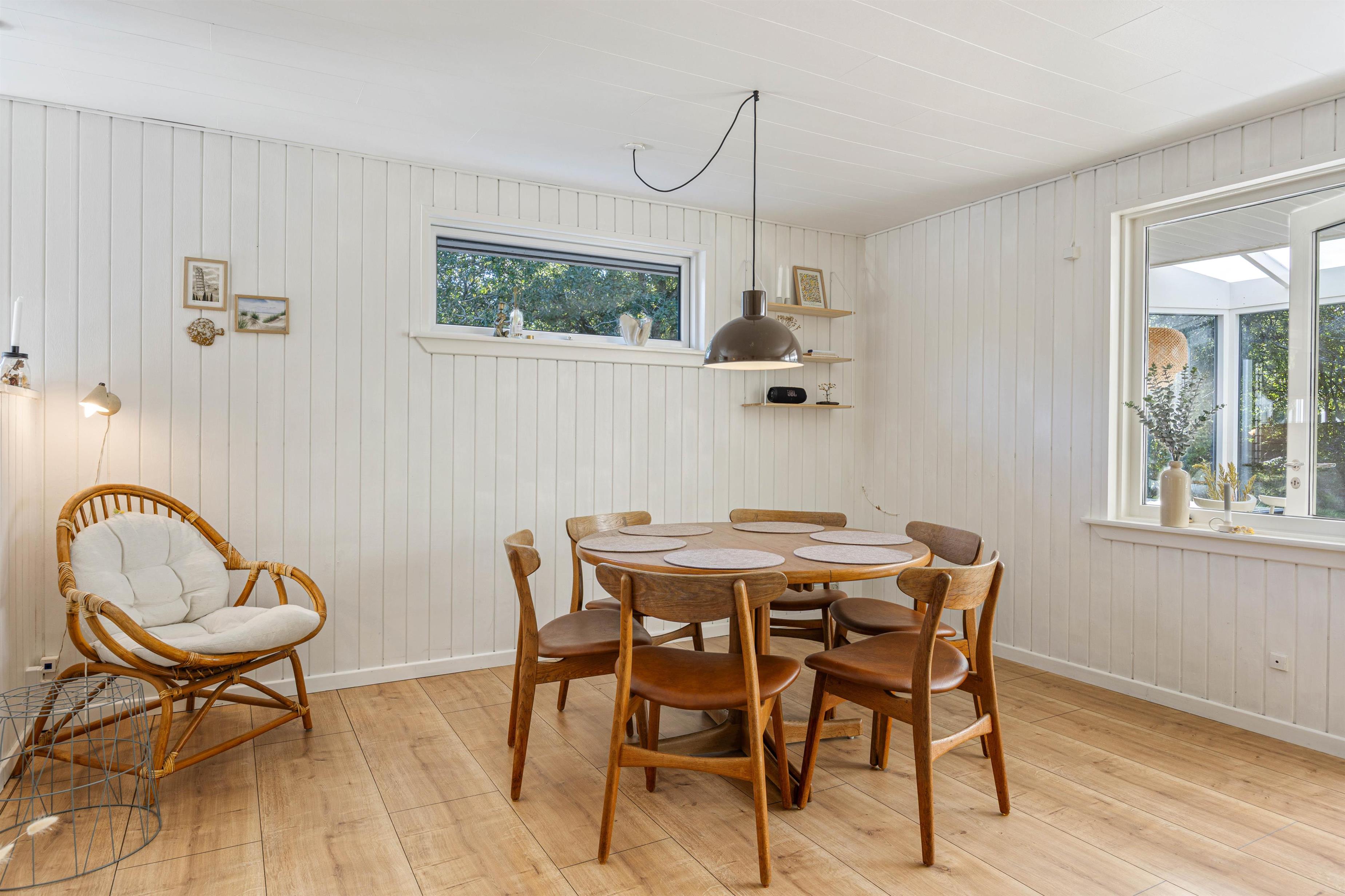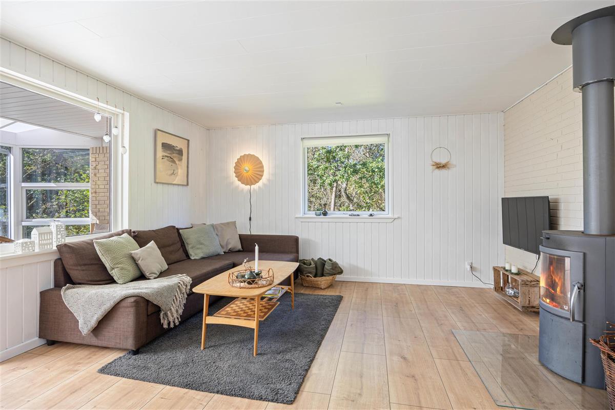 Here you can cook together, play games, or plan your next holiday adventures. After a long day in the nature of the Danish west coast, you can stream your favorite movie together in the living room via the built-in Chromecast. The fireplace provides coziness and soothing warmth. Adjacent to the living room is the vacation home's beautiful conservatory, where you can retreat on rainy days and listen to the patter of rain.