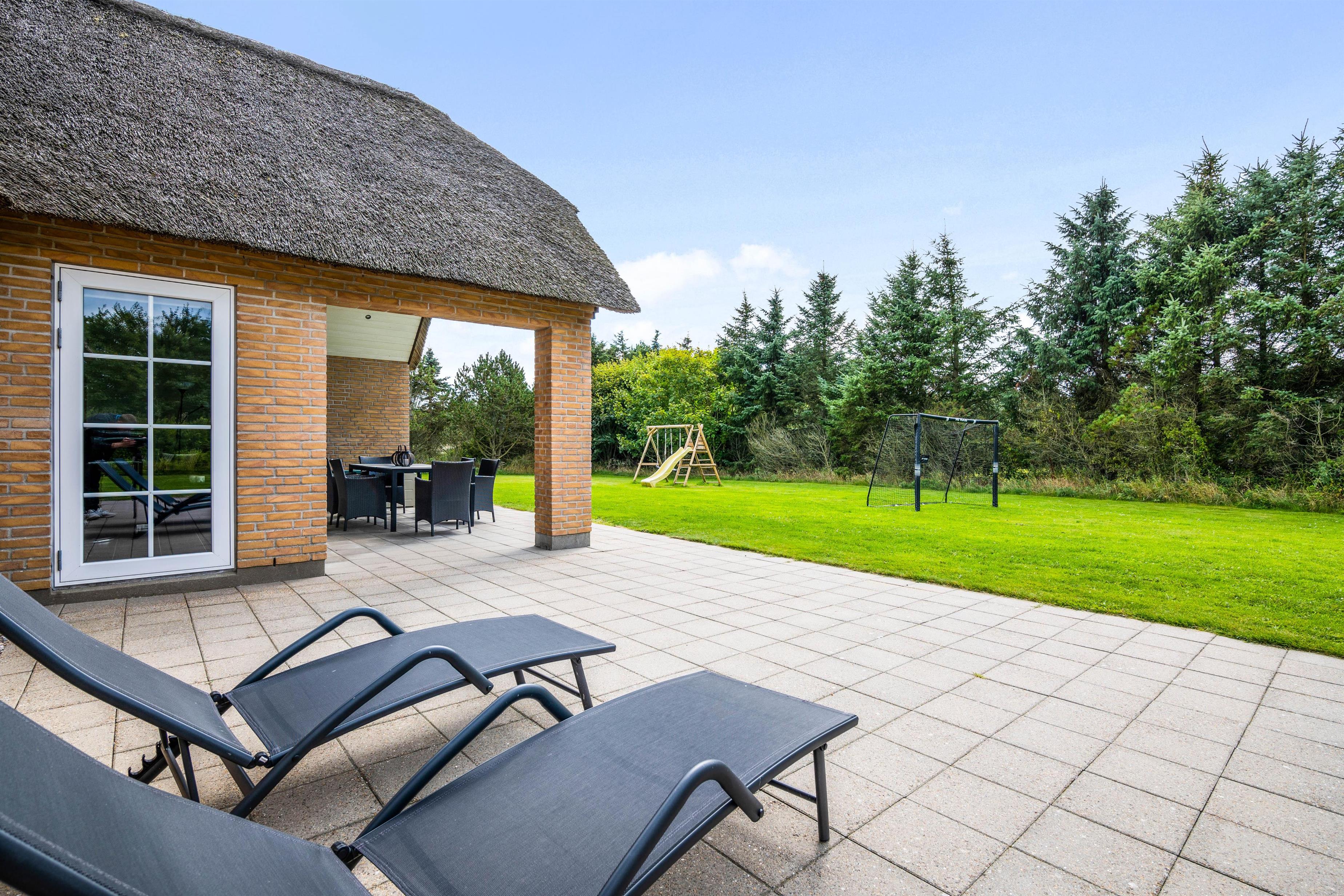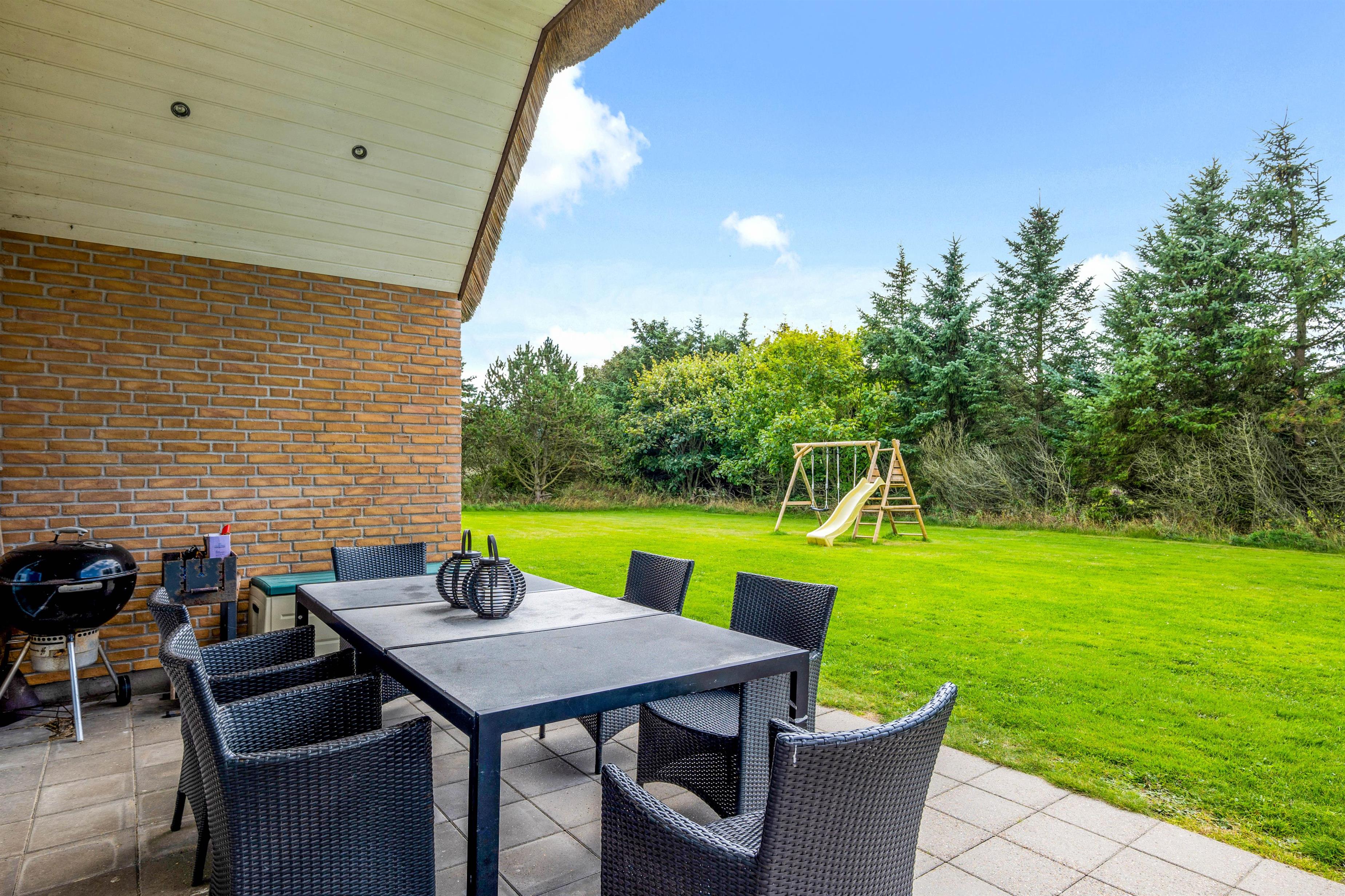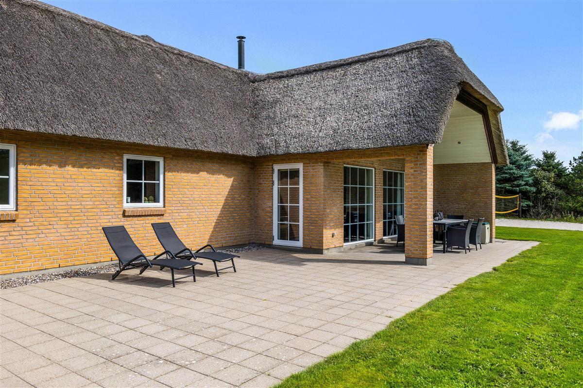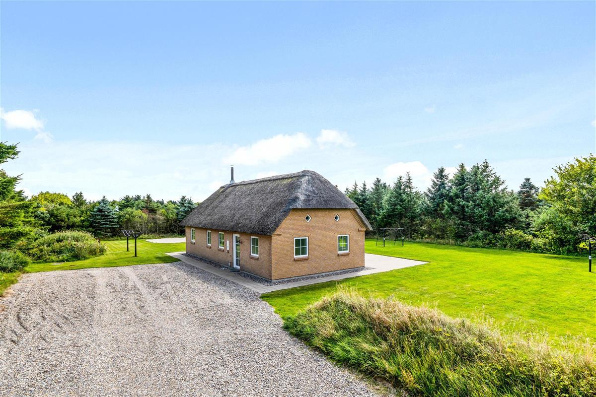 Located at Brundbjergvej 28 in Lodbjerg Hede, this beautiful and well-maintained thatched holiday home awaits you. With 108 square metres of space, it comfortably accommodates up to 6 people and your dogs. This cosy holiday home sits on a 2,634-square-metre plot in peaceful surroundings. The entire house features underfloor heating powered by a modern, energy-efficient ground source heat pump.