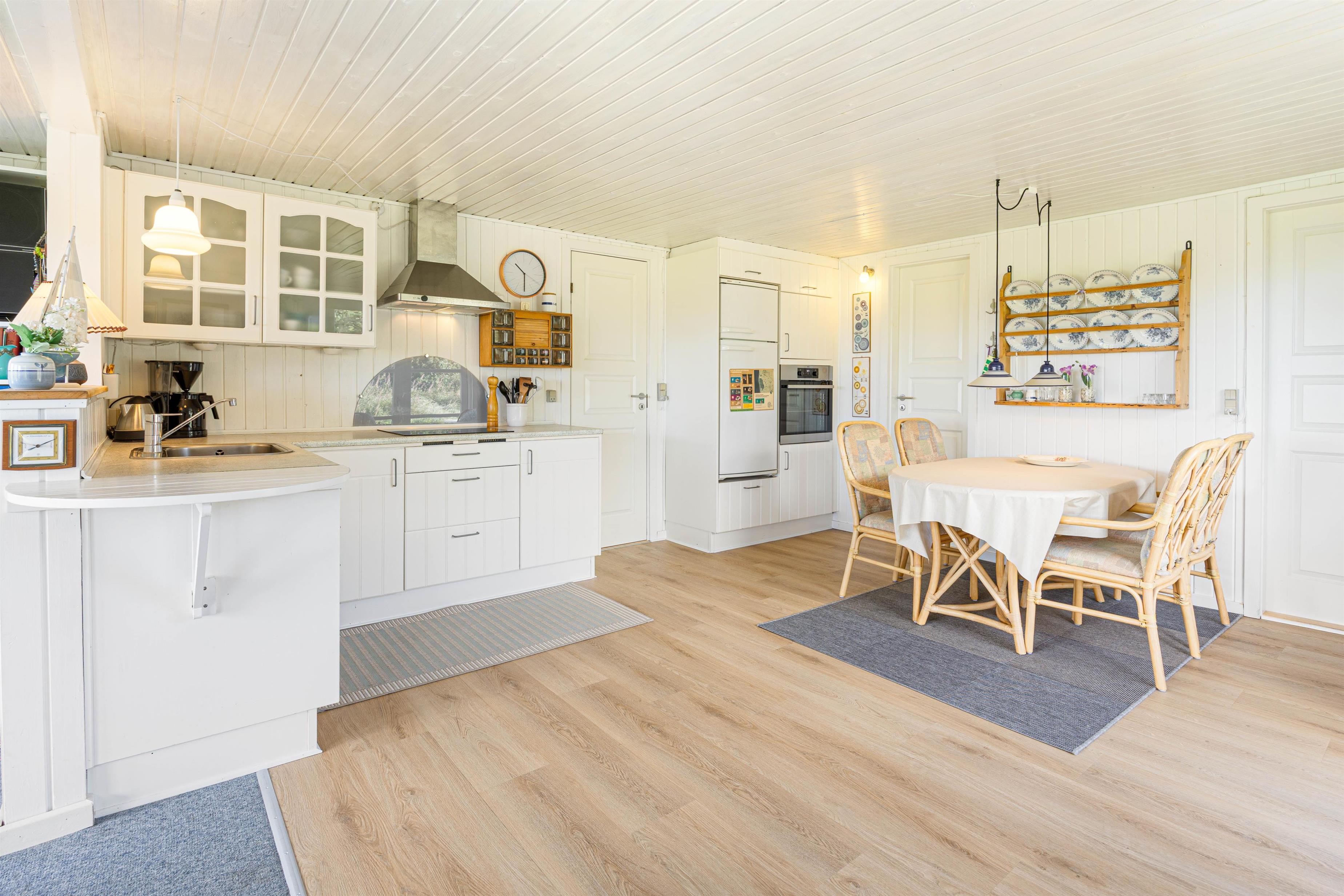 The holiday home welcomes you with its traditional character in Lodberg Hede. The 82 square metres include an open-plan living and dining area with an open kitchen, allowing everyone to stay together while cooking and washing up (please note there is no dishwasher), perfect for planning the next day's activities.