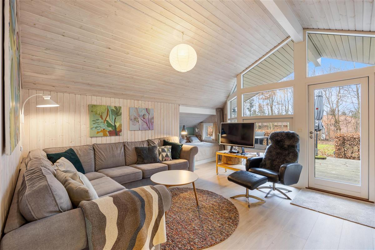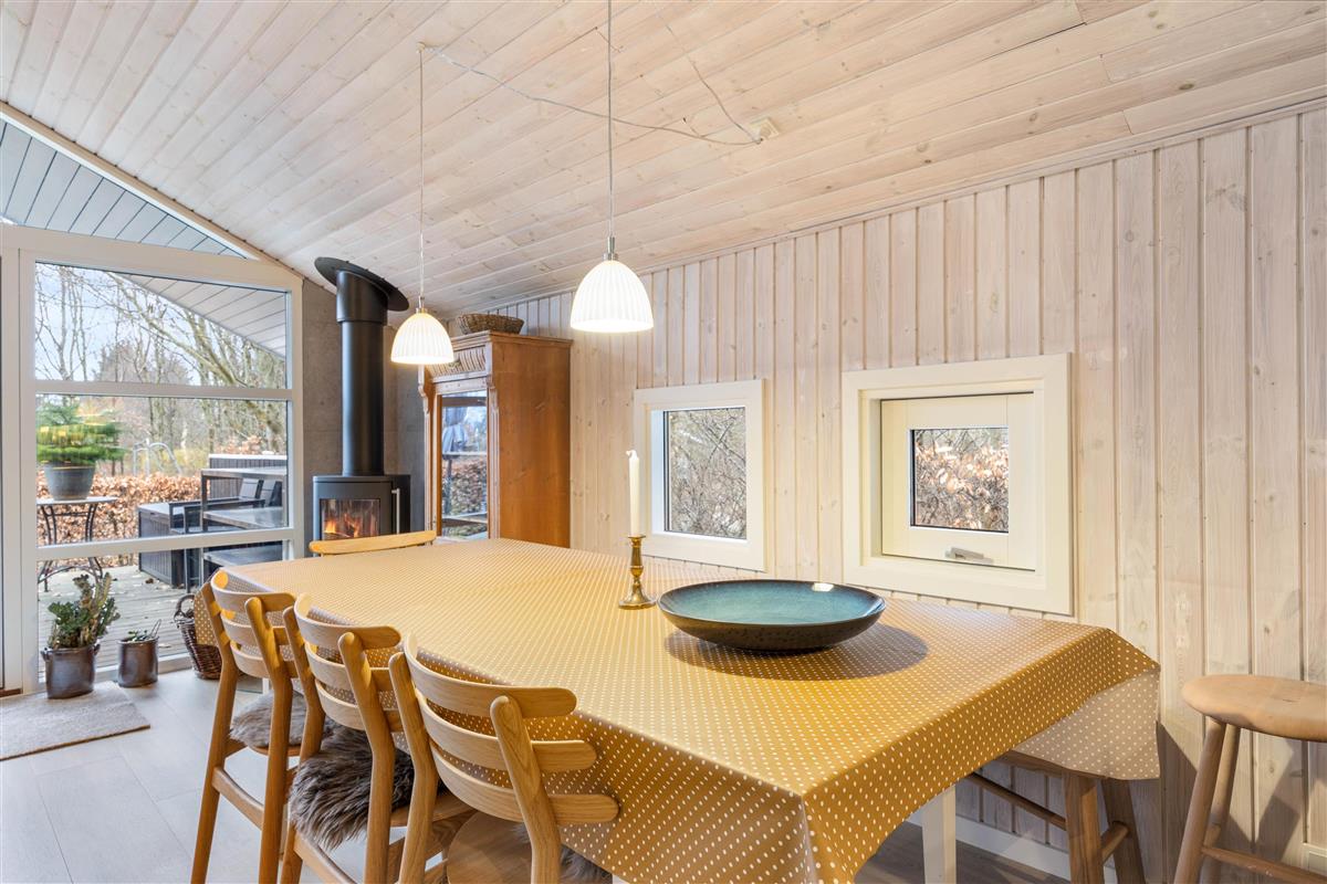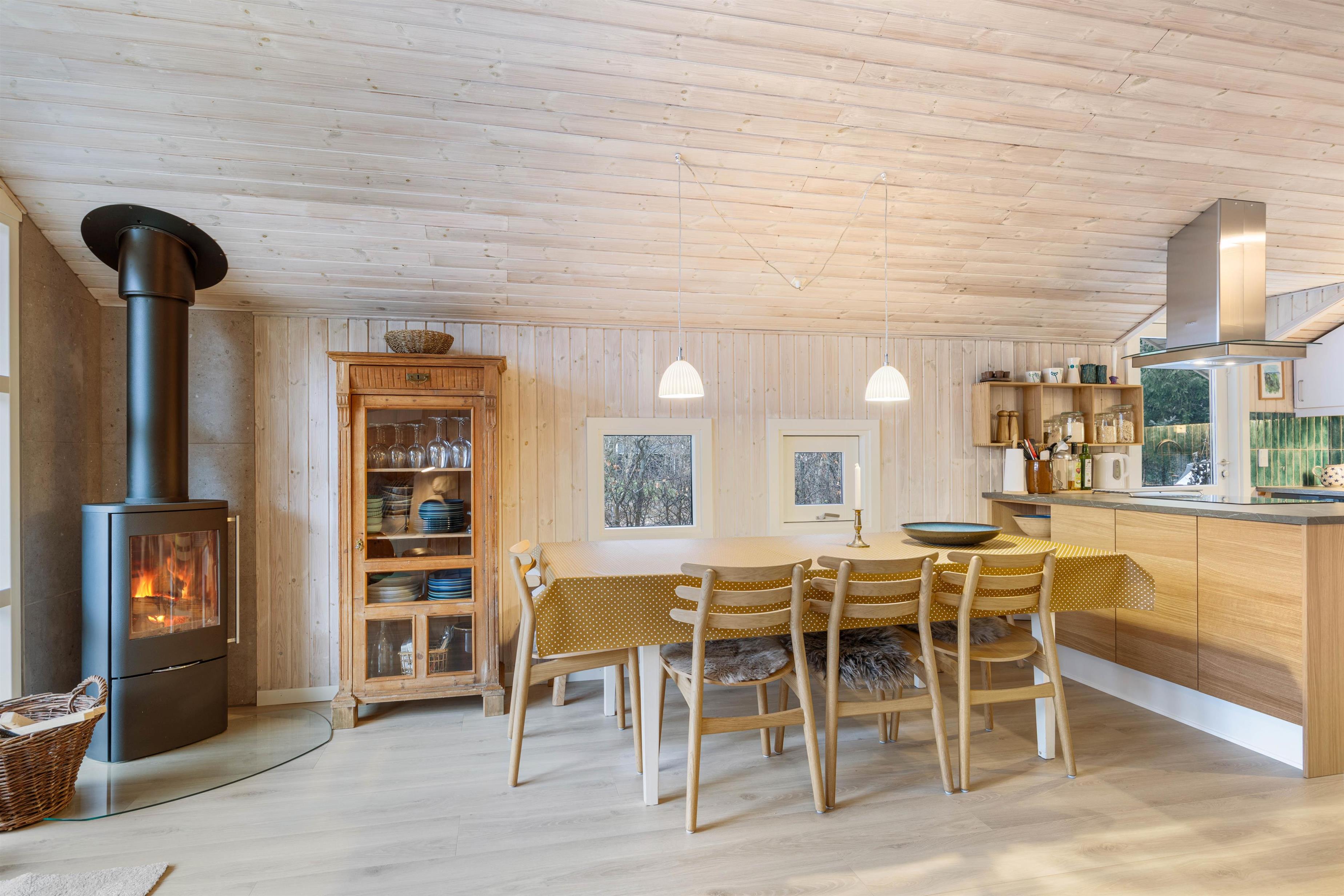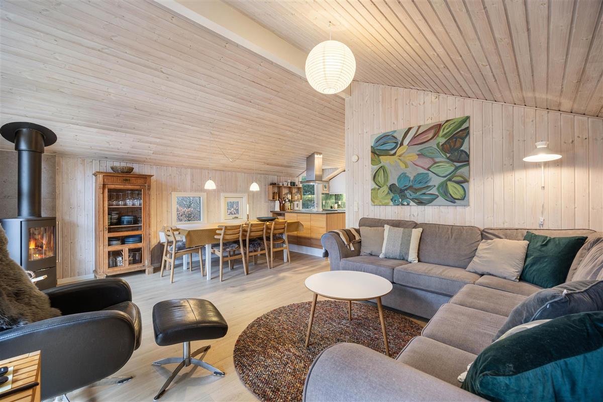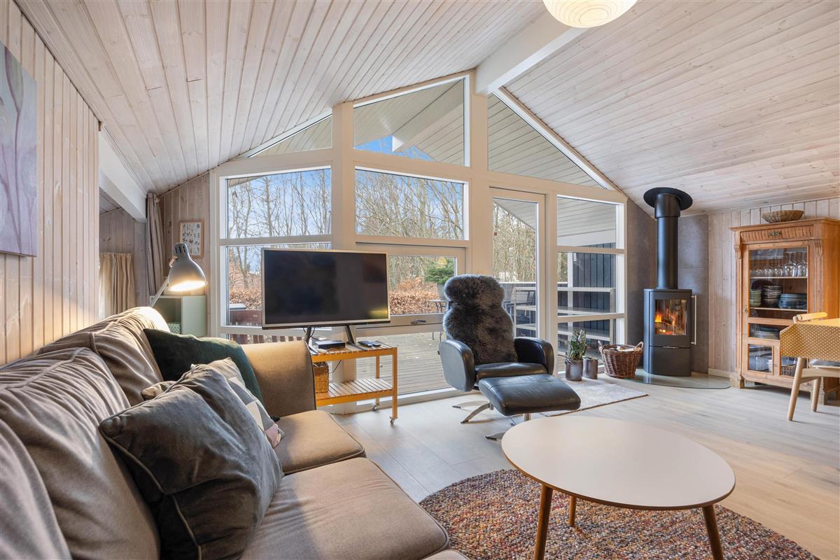 Large living area with wood-burning stove at Risbjergvej 52