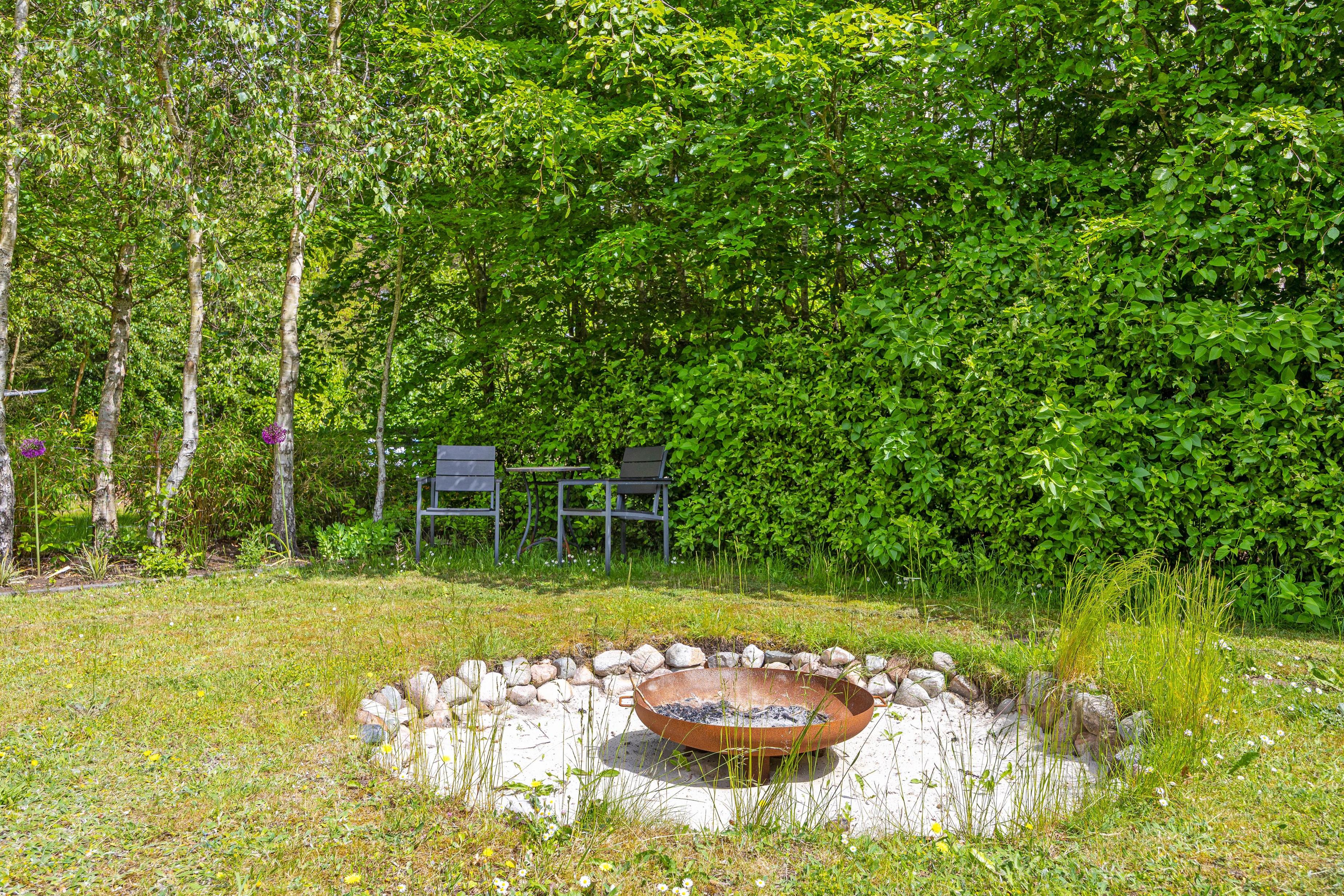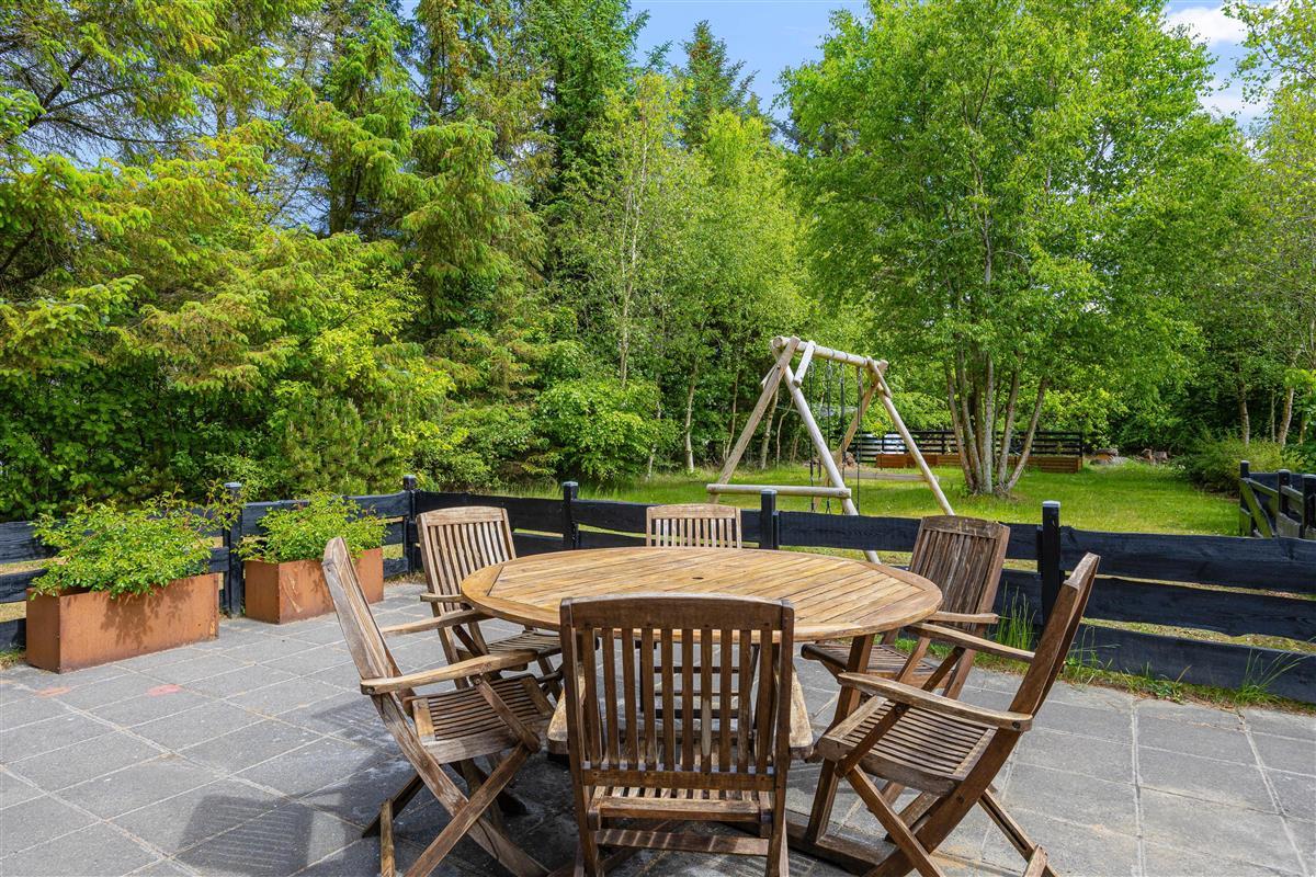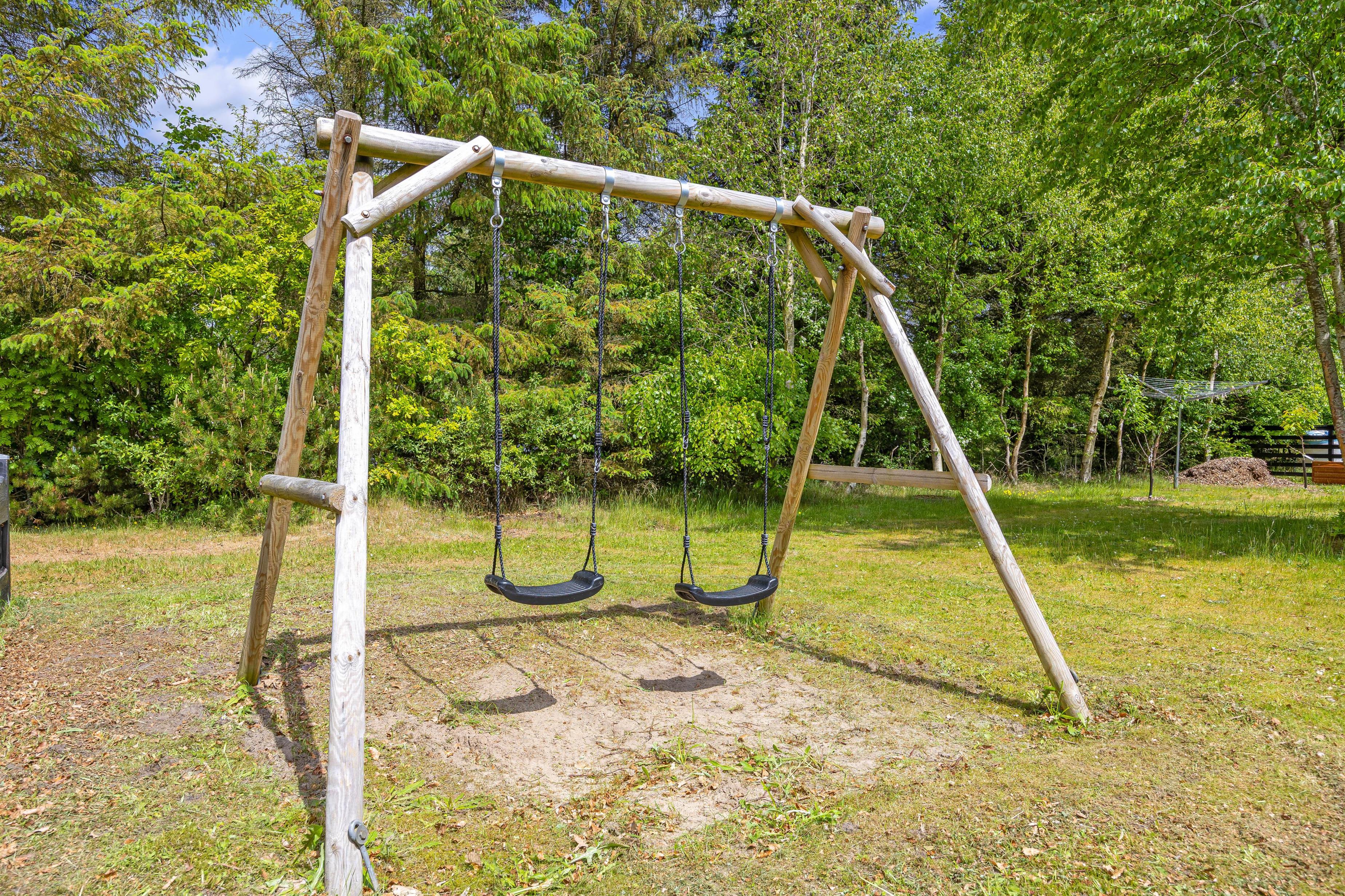 The holiday home is located on a beautiful property and is partially fenced in with an 80 cm high fence and additional hidden wire mesh in the hedges. This means you can easily bring your dog with you on vacation without having to worry about them going off on their own to explore. You can spend the sunny days of your vacation on the terrace of the holiday home, where garden furniture and sun loungers are available for you to feel comfortable and completely relax. There is a swing for the children in the garden.