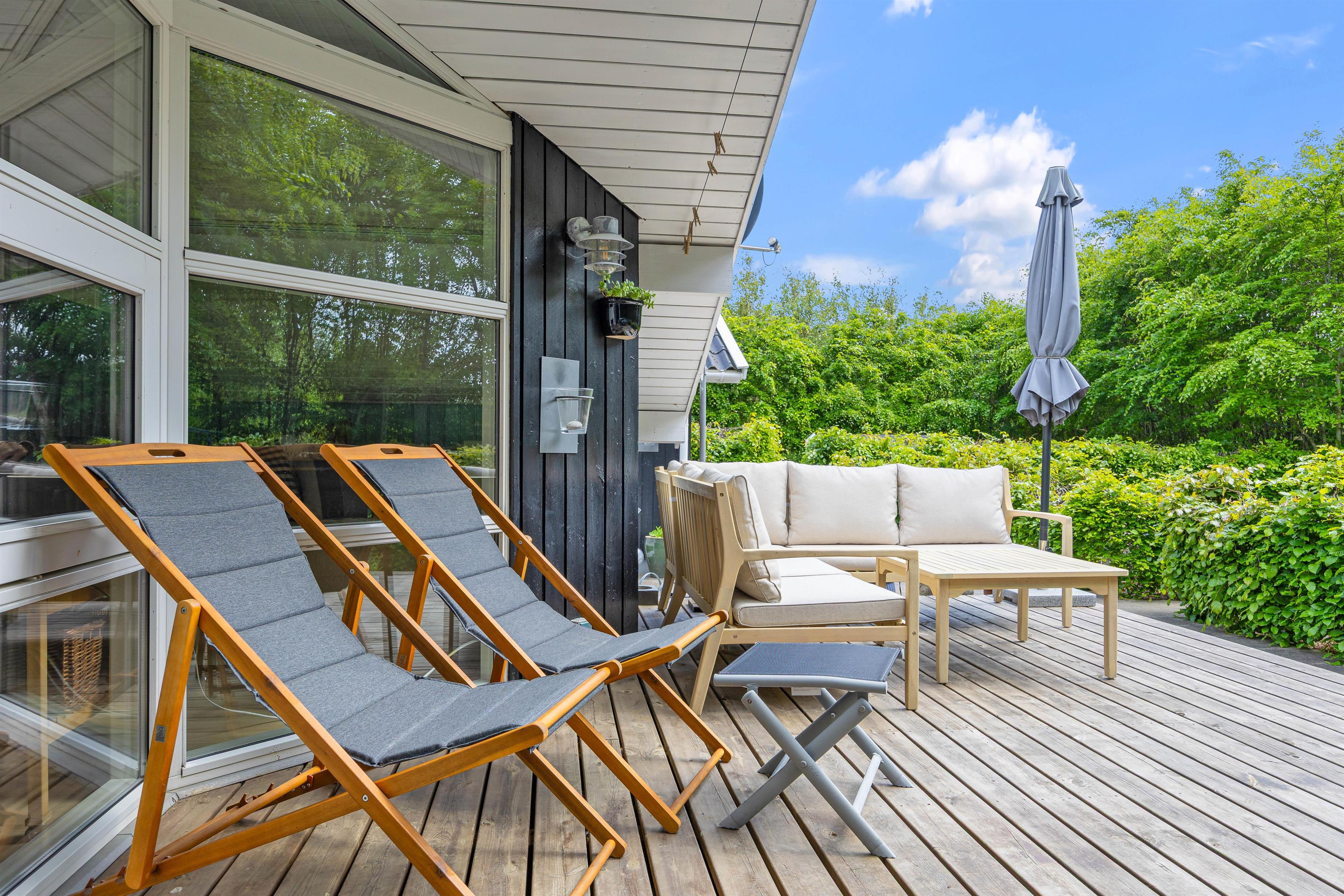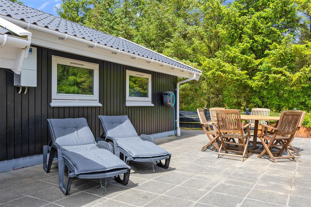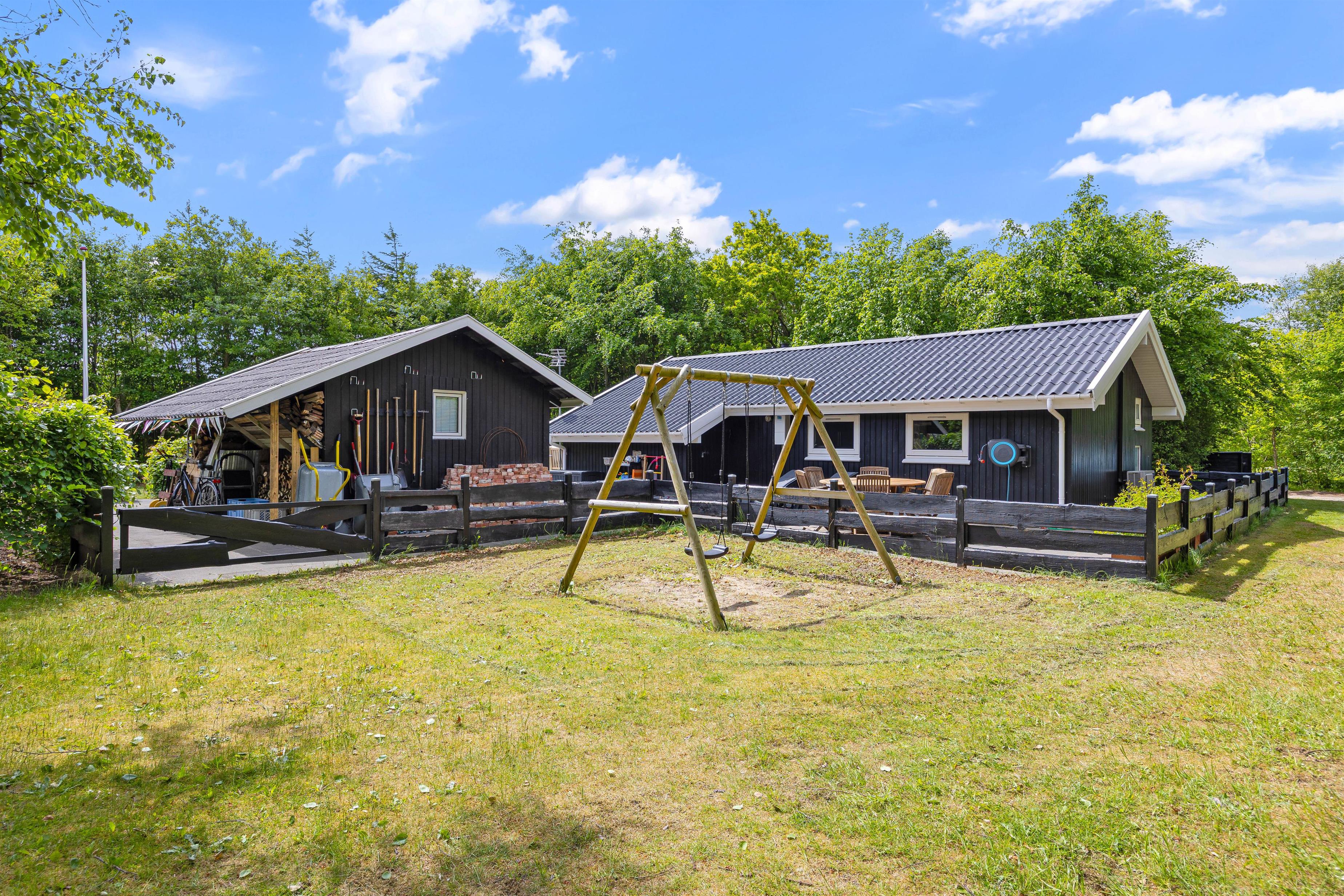 The holiday home is located on a beautiful property and is partially fenced in with an 80 cm high fence and additional hidden wire mesh in the hedges. This means you can easily bring your dog with you on vacation without having to worry about them going off on their own to explore. You can spend the sunny days of your vacation on the terrace of the holiday home, where garden furniture and sun loungers are available for you to feel comfortable and completely relax. There is a swing for the children in the garden.