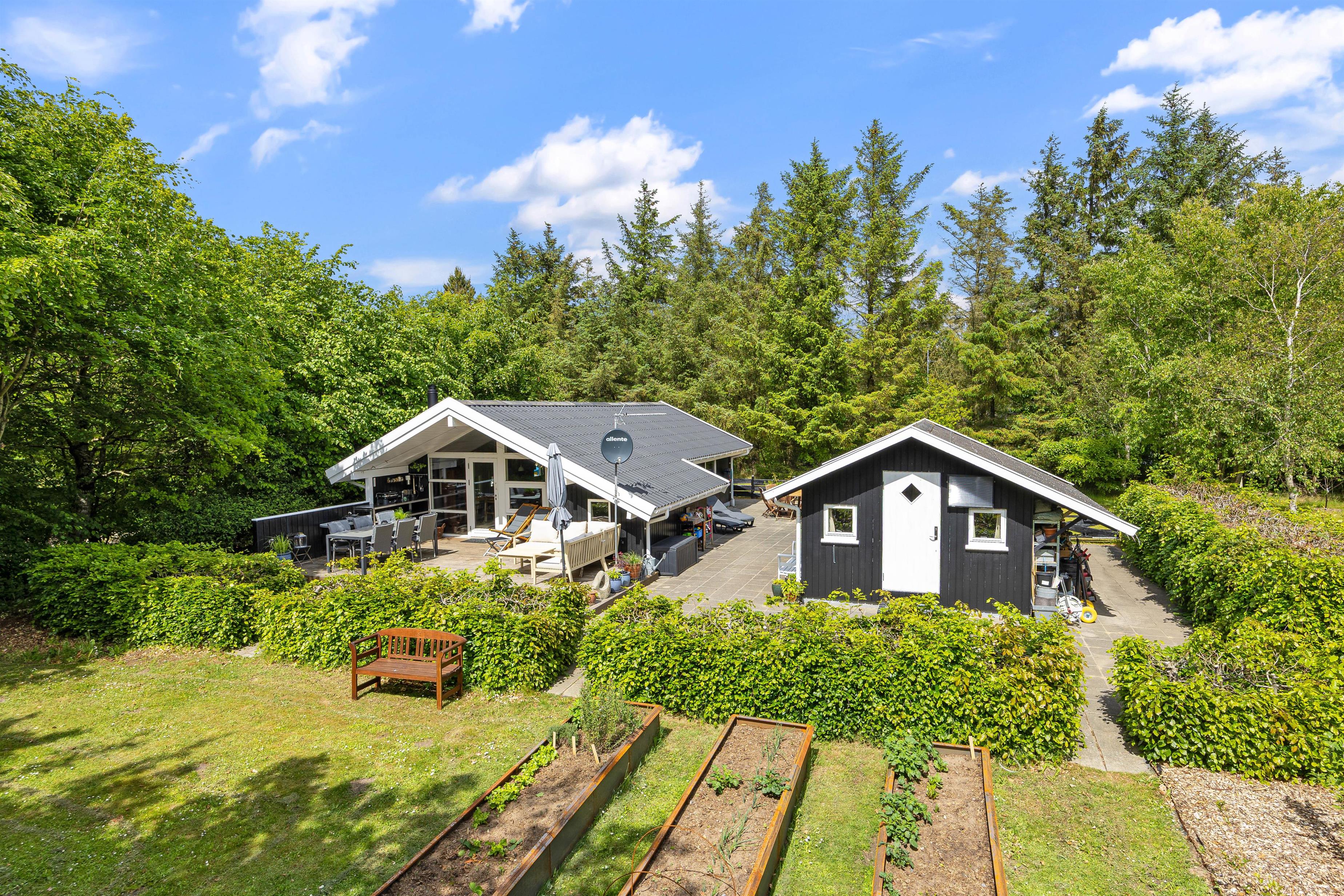There is also a soccer goal in the garden, so you can practice shooting at the goal. After an active day outdoors, you can relax on the terrace, light the barbecue, and prepare a delicious dinner. Enjoy your barbecue meal outdoors as the sun sets and a new day of vacation awaits you. There is a large shelter in the garden, for which there are also mattresses that you can use if you want to sleep there. Here you can make yourself comfortable on a balmy summer night and wake up early in the morning to the cheerful chirping of birds.