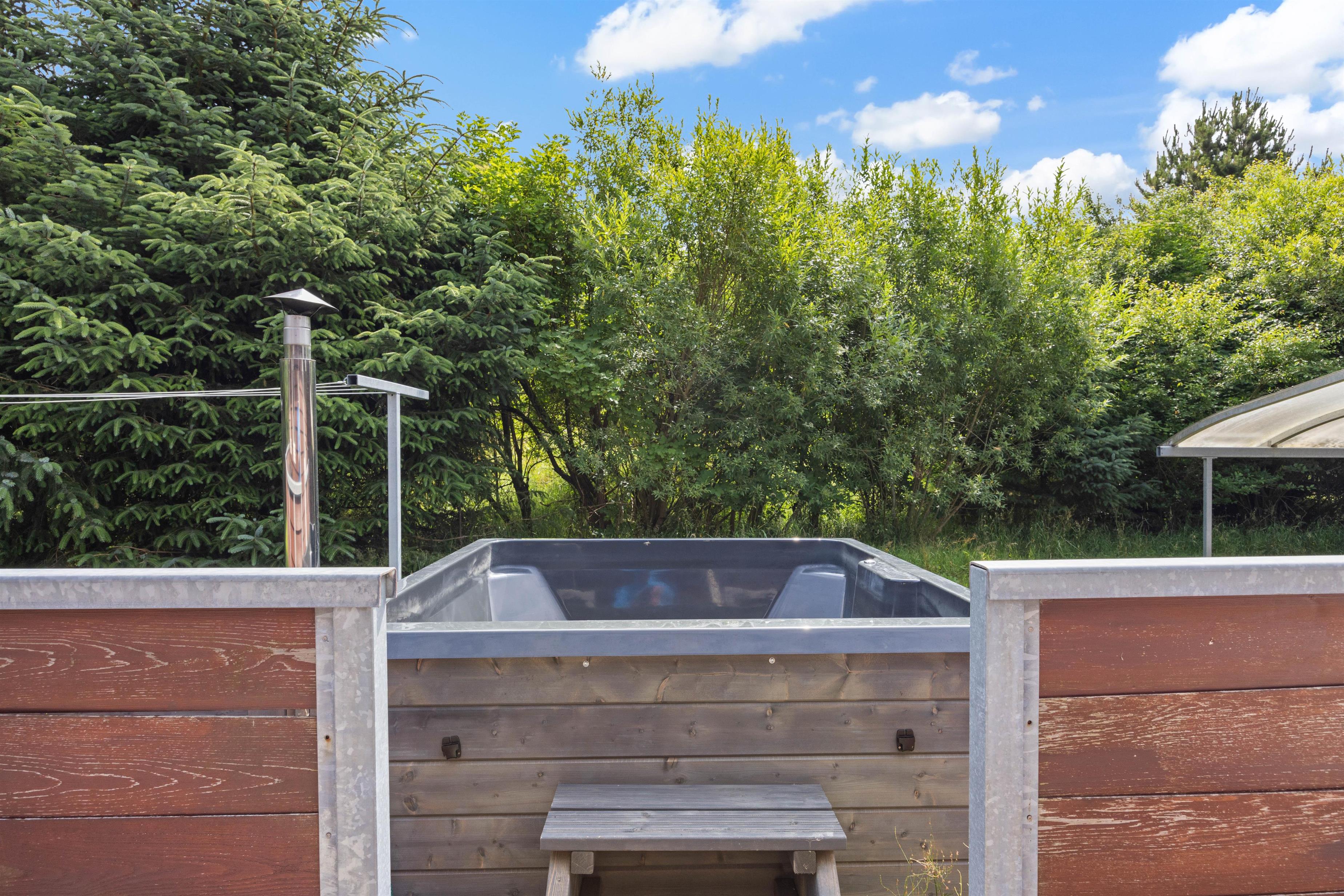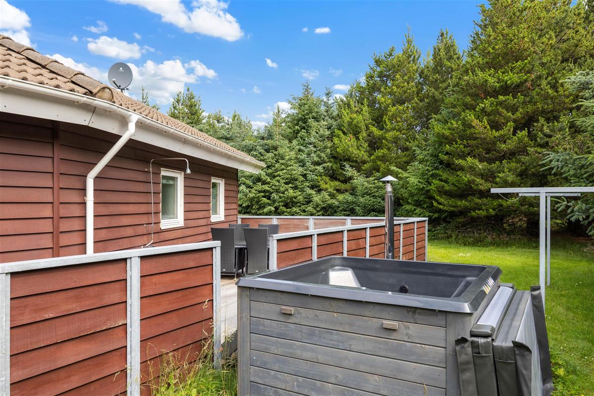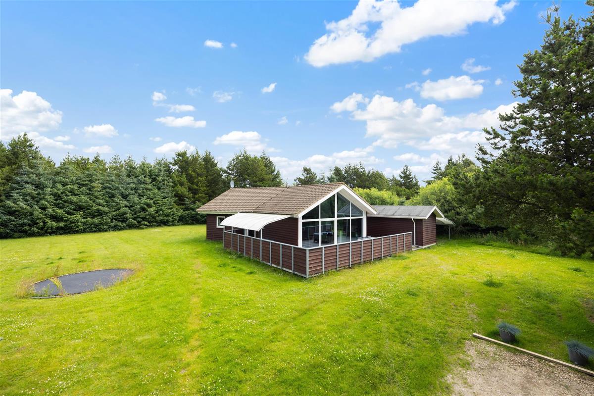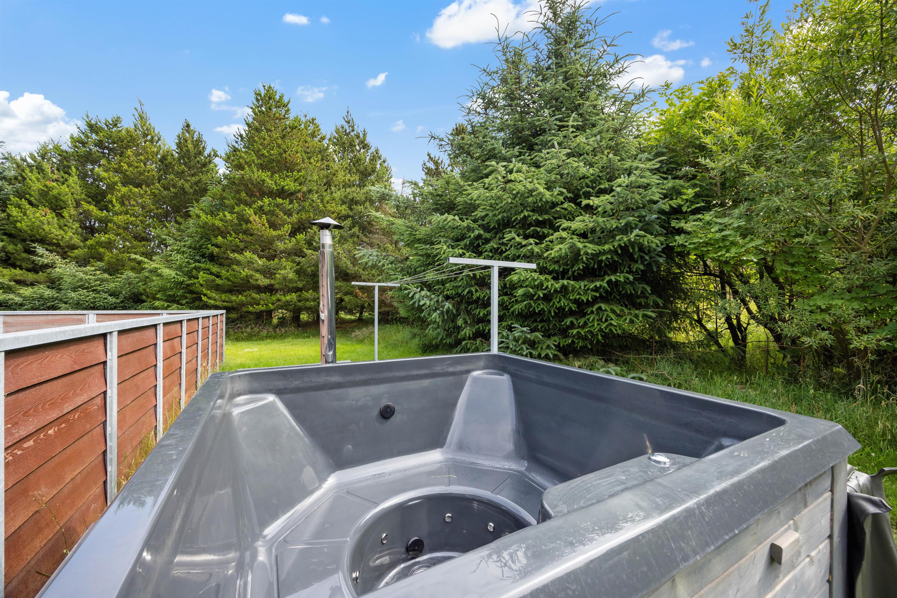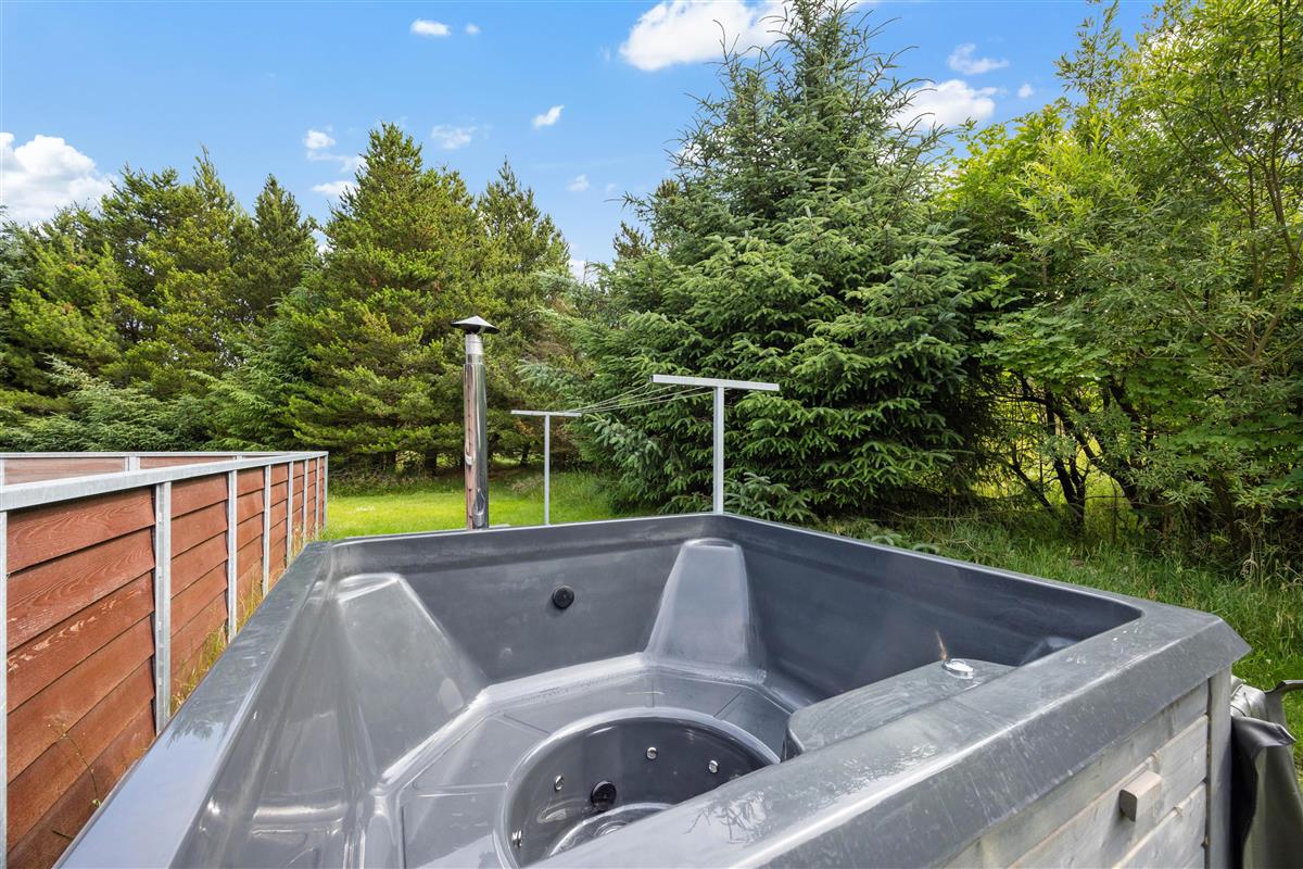 The 2,000-square-metre plot sits in the heart of Lodberg Hede's natural landscape. Surrounded by trees in a peaceful setting, it's perfect for relaxation. Children can enjoy the trampoline, while the large terrace, partially covered, is ideal for sunbathing or barbecue evenings. The outdoor hot tub offers a wonderful experience, especially after a long beach walk.