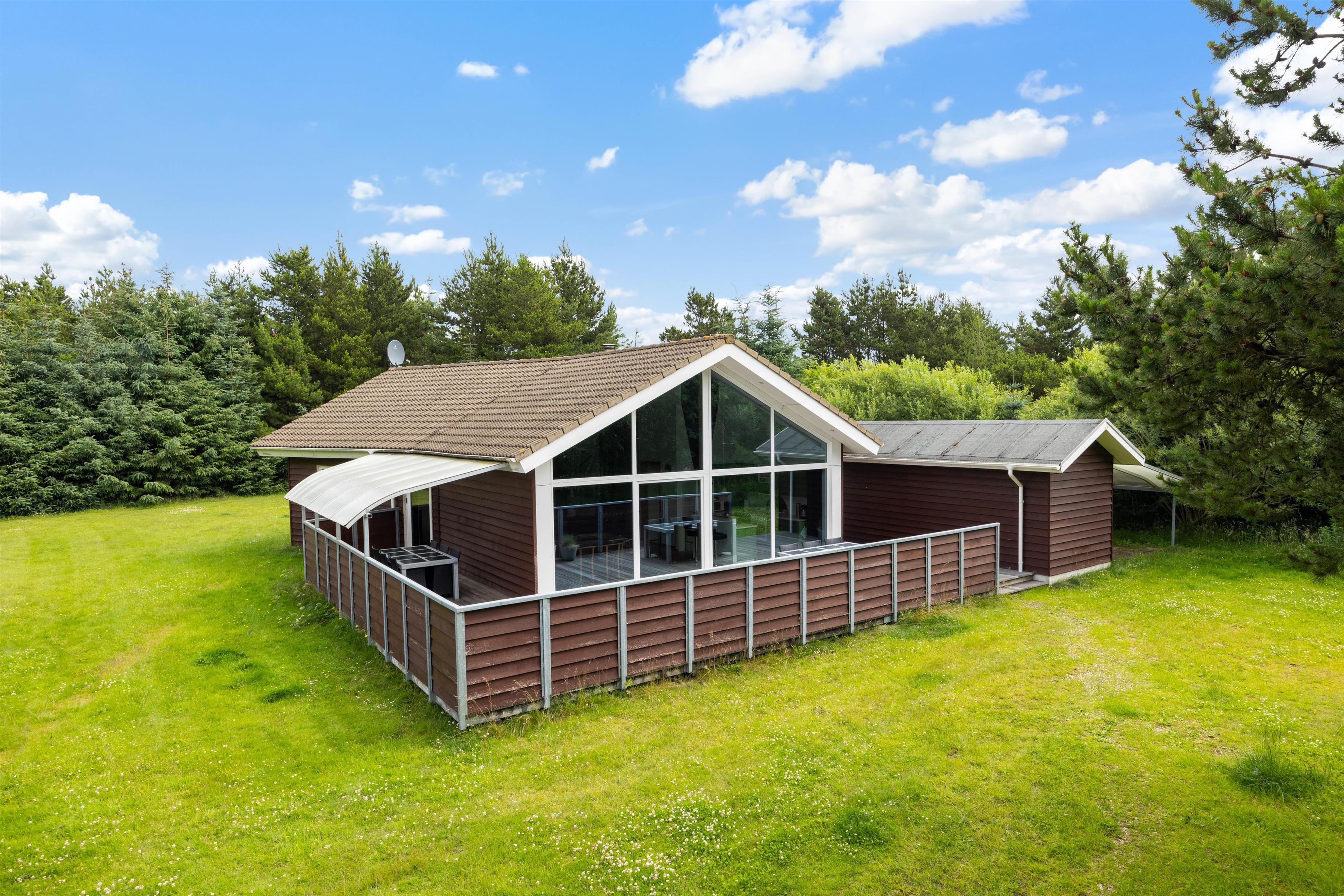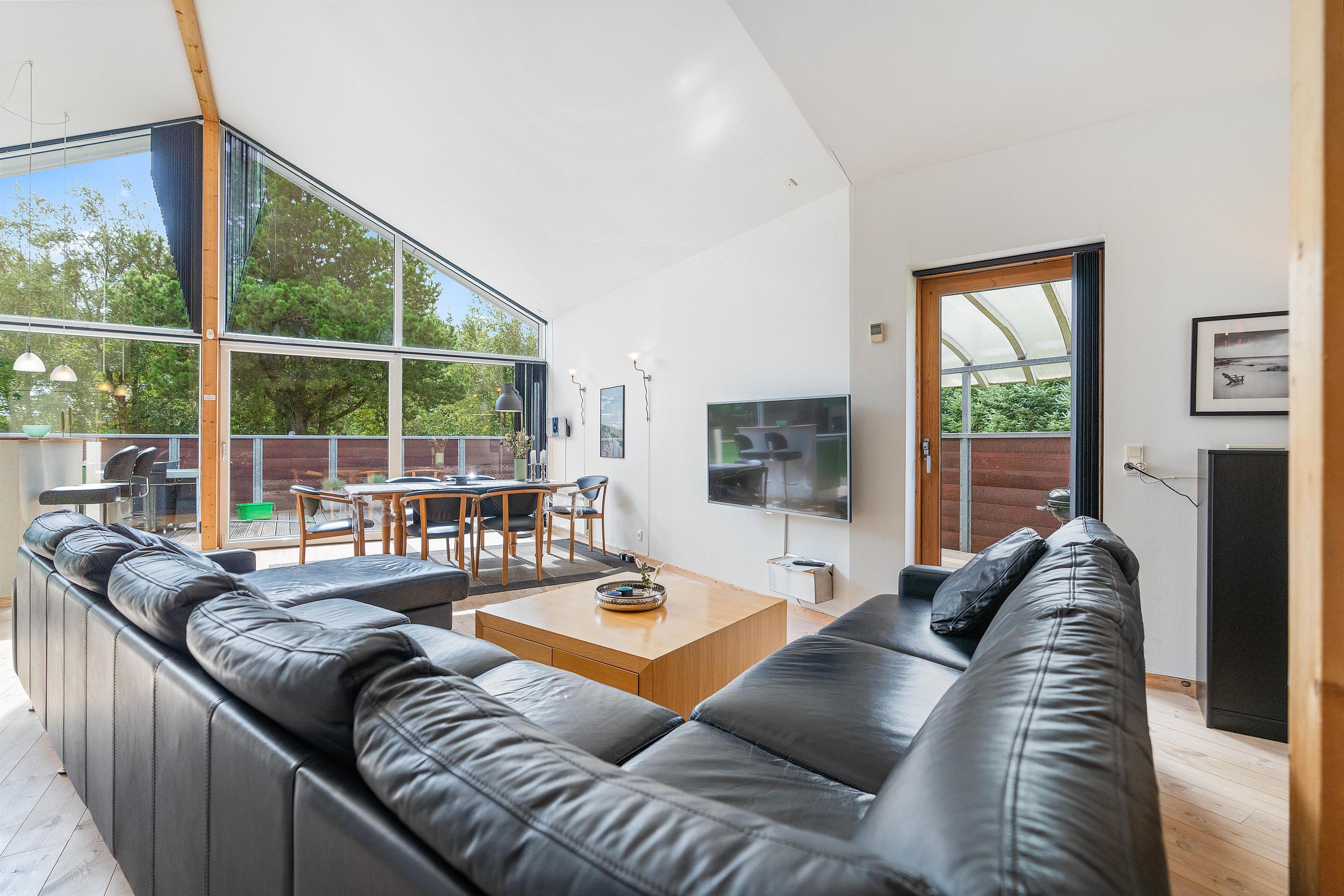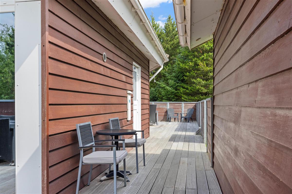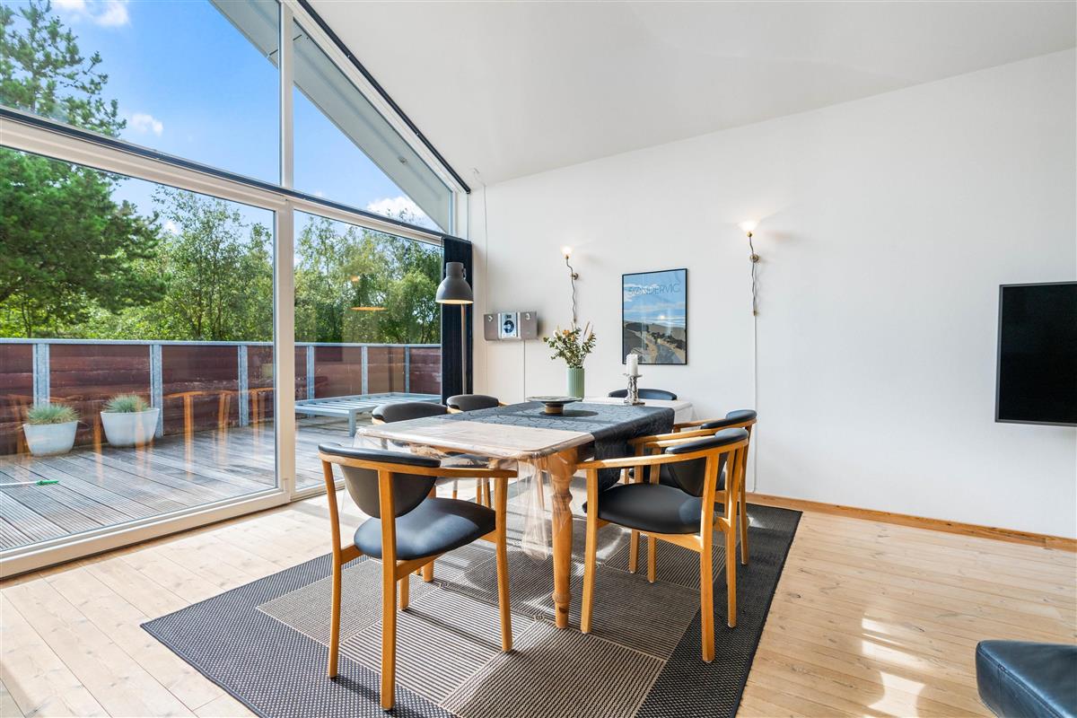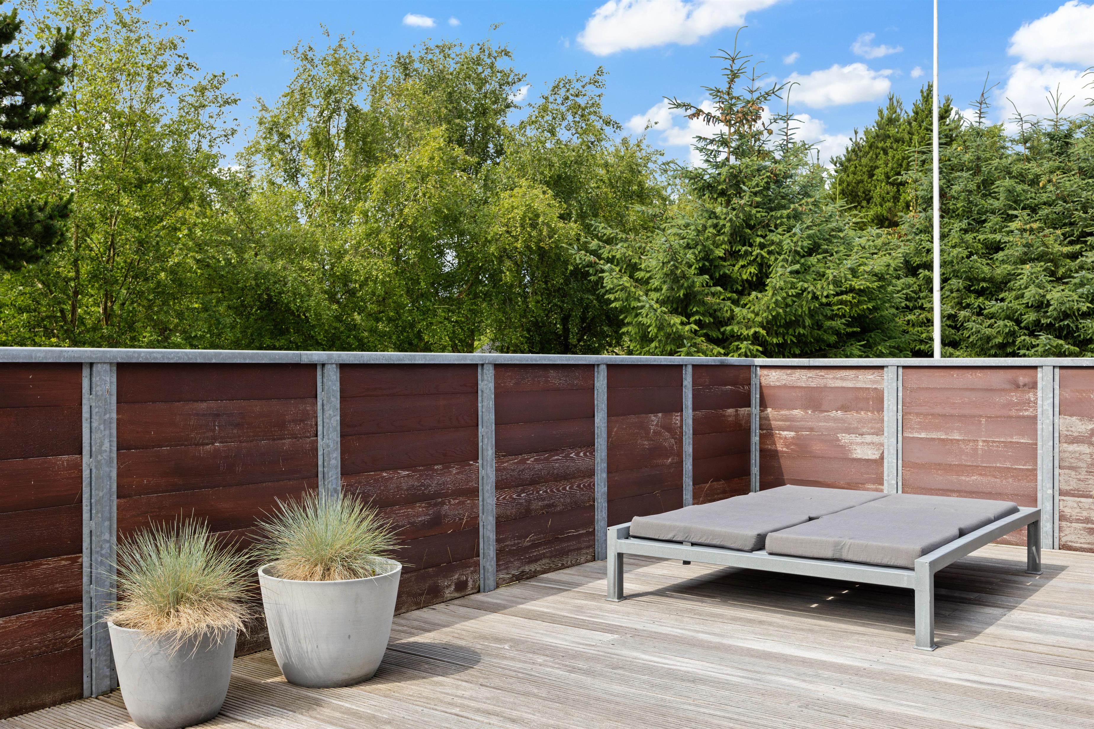 The 2,000-square-metre plot sits in the heart of Lodberg Hede's natural landscape. Surrounded by trees in a peaceful setting, it's perfect for relaxation. Children can enjoy the trampoline, while the large terrace, partially covered, is ideal for sunbathing or barbecue evenings. The outdoor hot tub offers a wonderful experience, especially after a long beach walk.