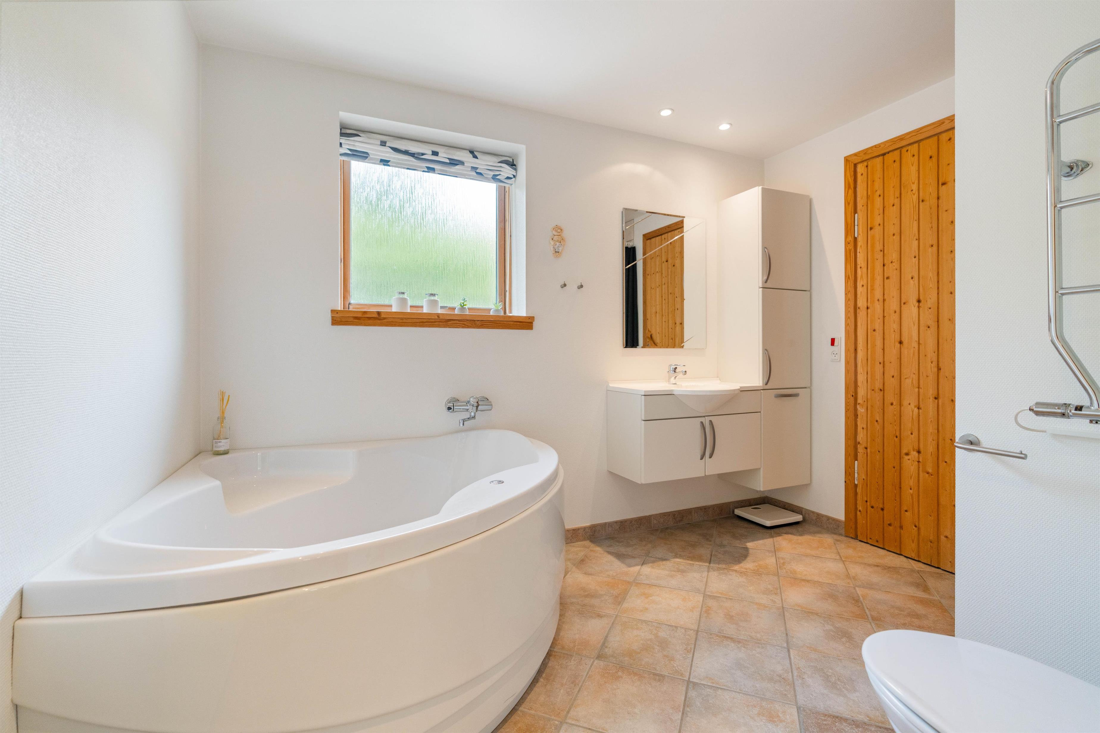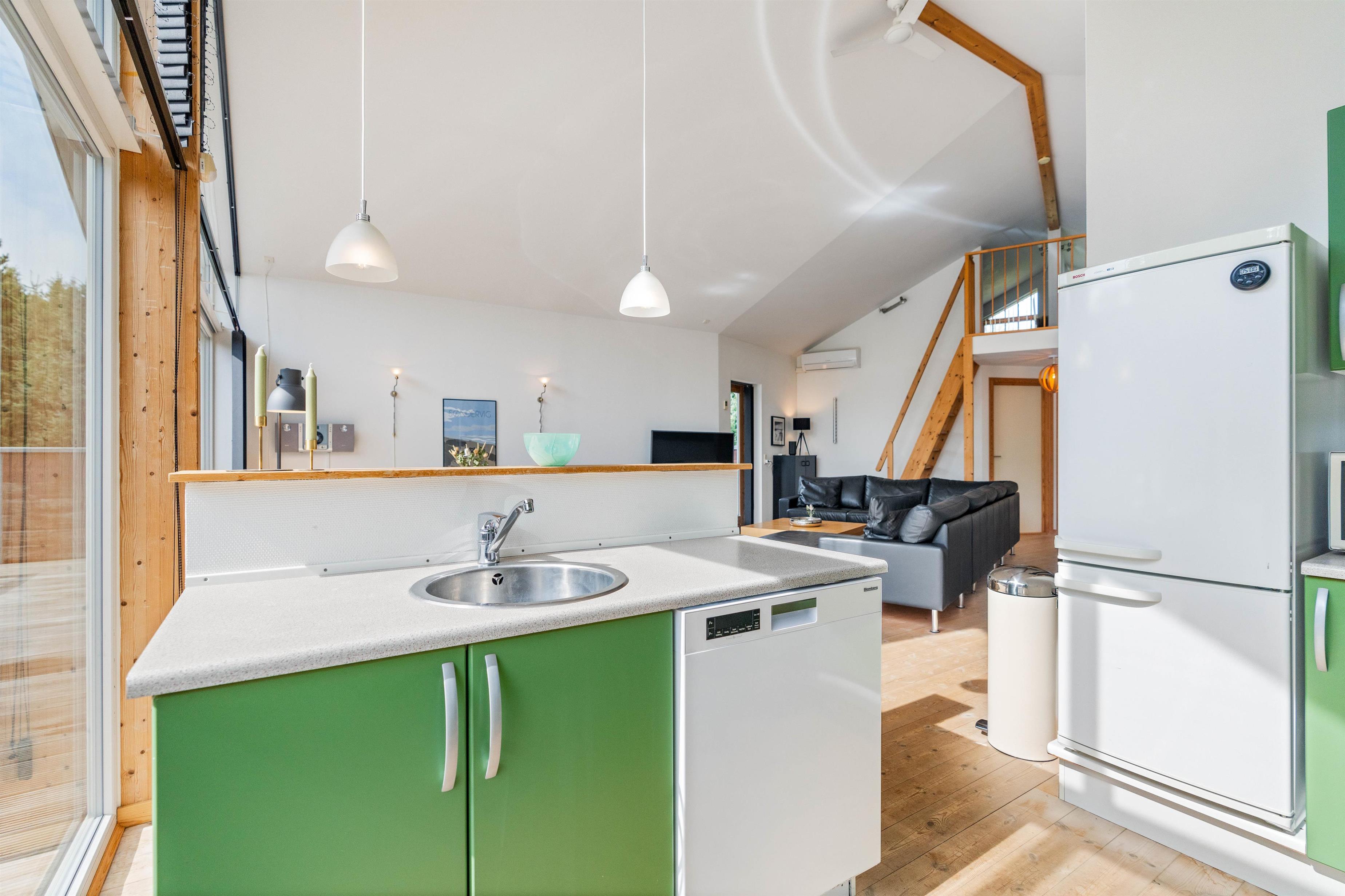 After a long, wonderful day by the sea, you can unwind in the hot tub and sauna, recharging for more relaxing holiday days ahead. The three bedrooms provide comfortable sleeping arrangements, with two rooms on the ground floor and one upstairs. Energy-efficient heating is provided by an air-to-air heat pump and the cosy wood pellet stove in the living room.