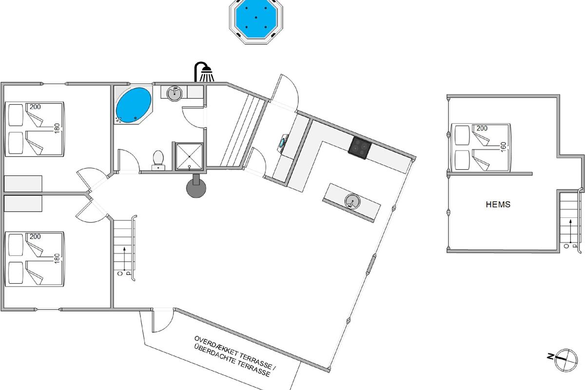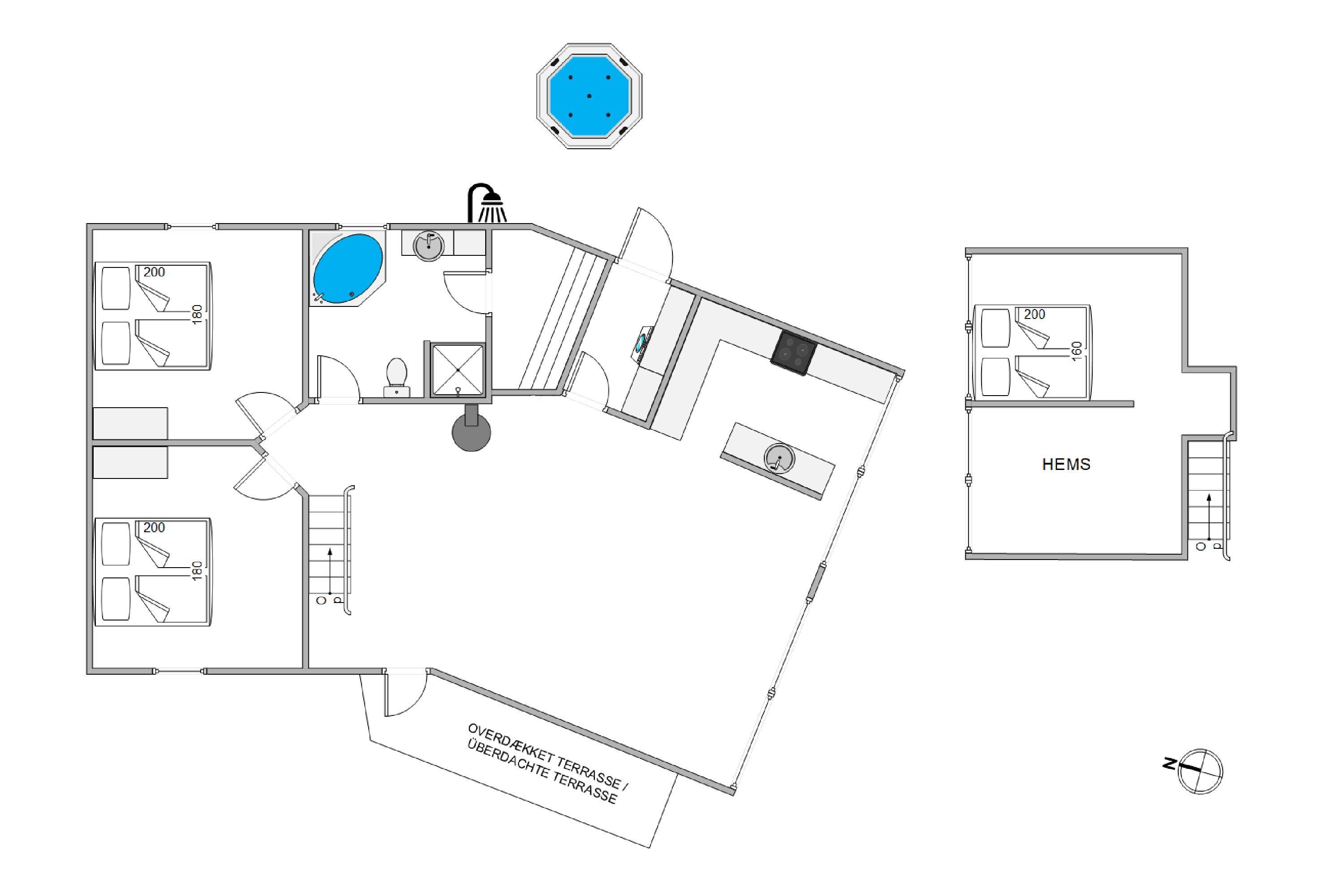 From here, explore the nature surrounding your holiday home and marvel at the starry sky over Lodberg Hede in the evening. A practical outdoor shower has been installed for refreshing rinses and washing your dog after energetic beach walks. To prevent frost damage, the outdoor shower is only available from April to November.