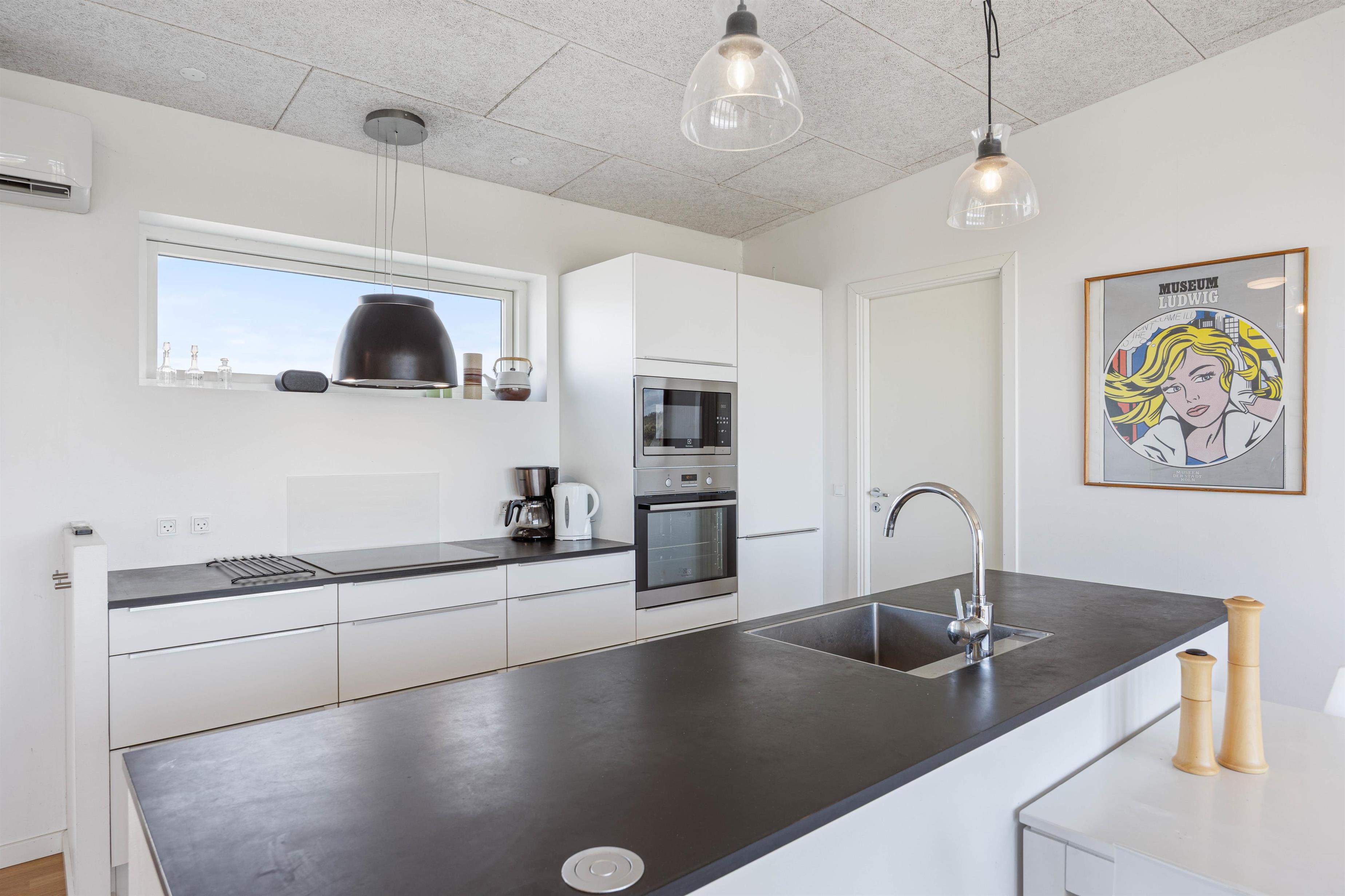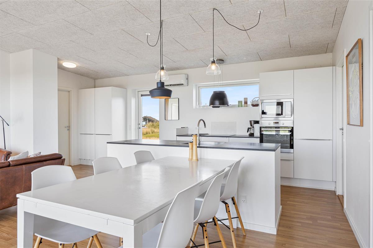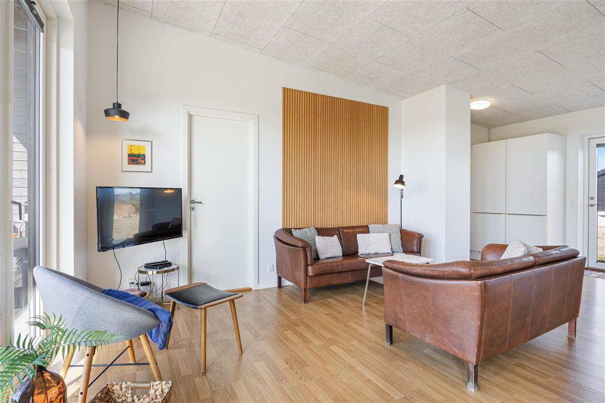 This attractive new holiday home at Klevevej 41a is tastefully furnished in Scandinavian style. The heart of the house is the wonderful living room with wood-burning stove - offering plenty of space with high ceilings and large windows. The kitchen is practically equipped with a dishwasher.