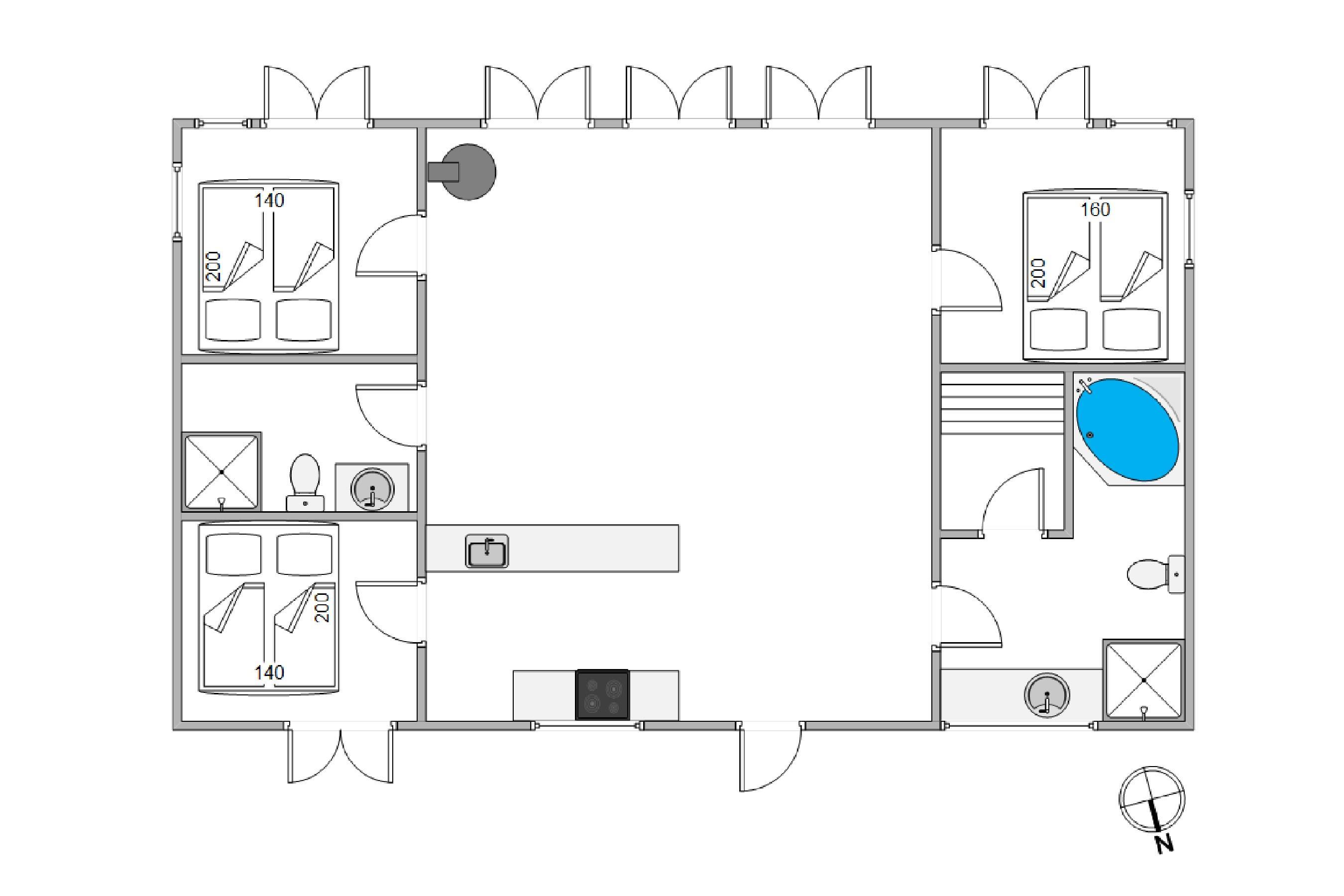 The house has two bathrooms in total. The largest bathroom features both a whirlpool and sauna for relaxation - perfect after a lovely walk through the countryside. The heat pump ensures low energy consumption, helping you save on holiday costs.