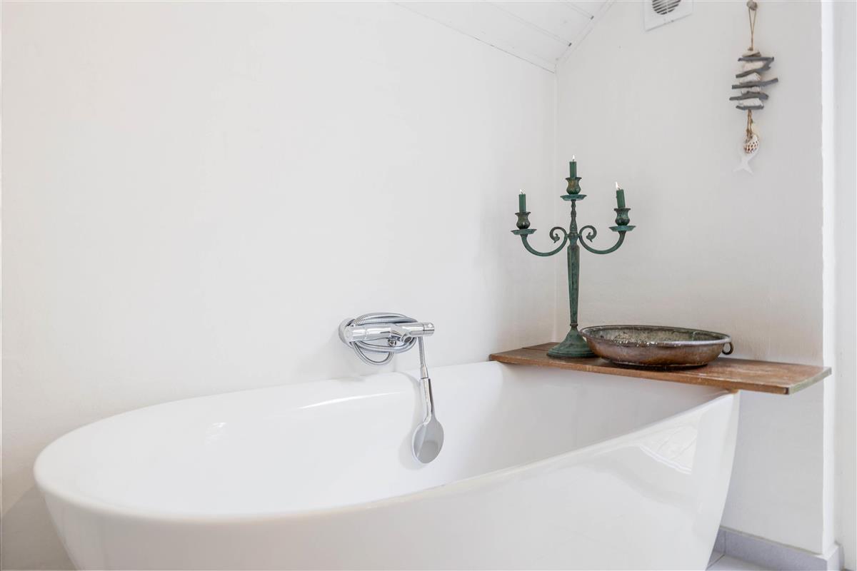 There are two bedrooms, each furnished with a double bed. The open-plan upper floor offers two additional sleeping spaces on mattresses - sure to be a highlight for older children. The bathroom features a lovely bath and underfloor heating, ensuring you won't have to start your day with cold feet.