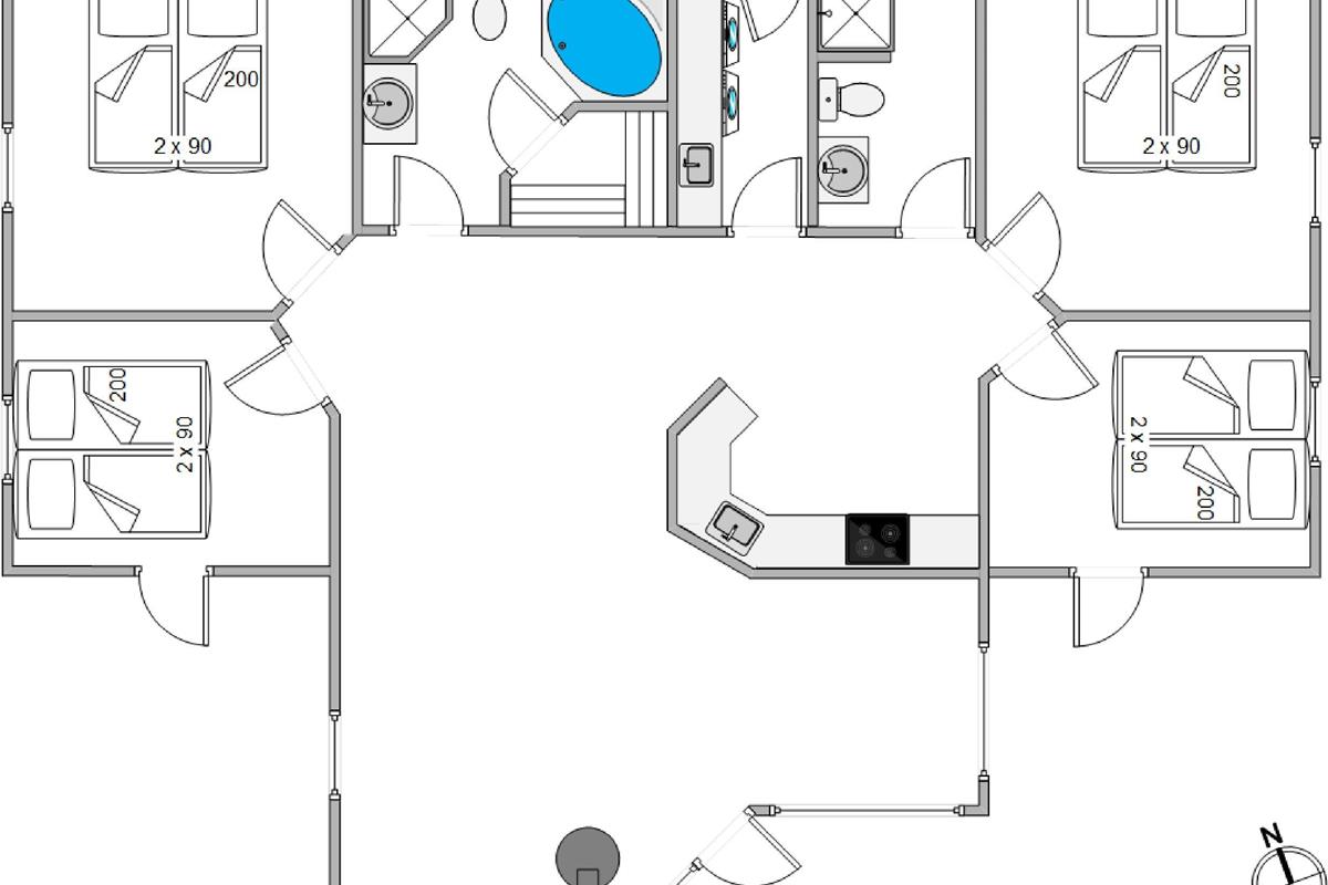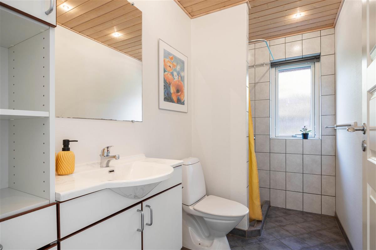 The Lodbjerg Hede holiday home conveniently offers two bathrooms, with the main bathroom featuring special additions. Both a sauna and whirlpool provide relaxing moments where you can let your thoughts drift and escape from everyday life.