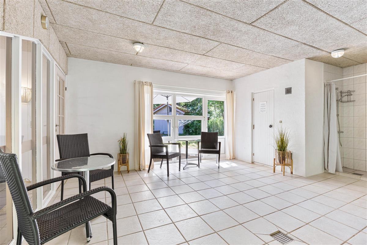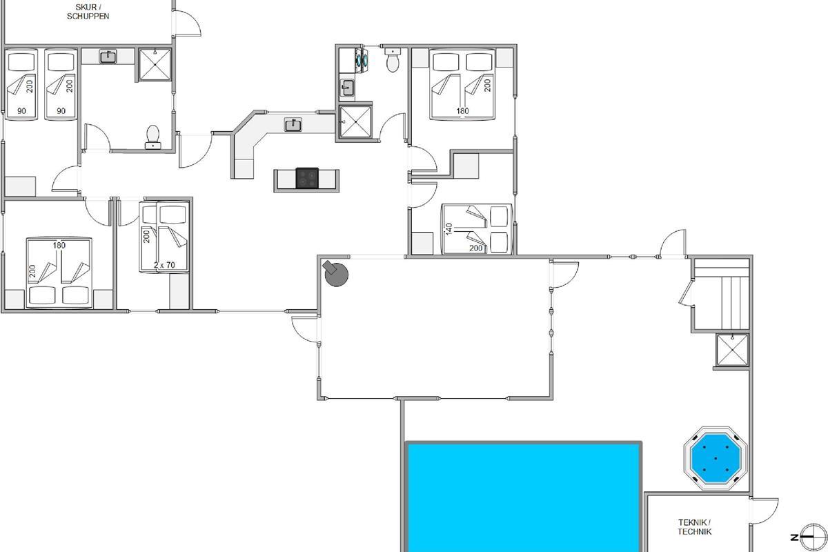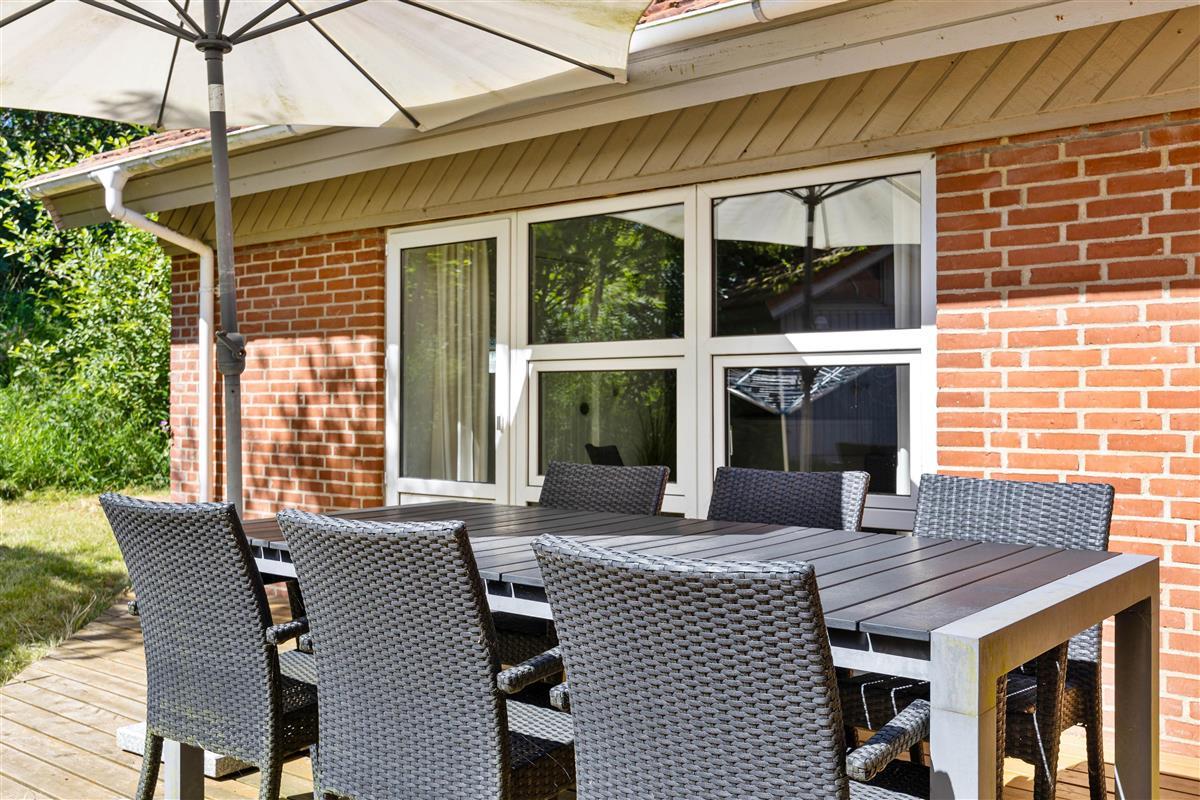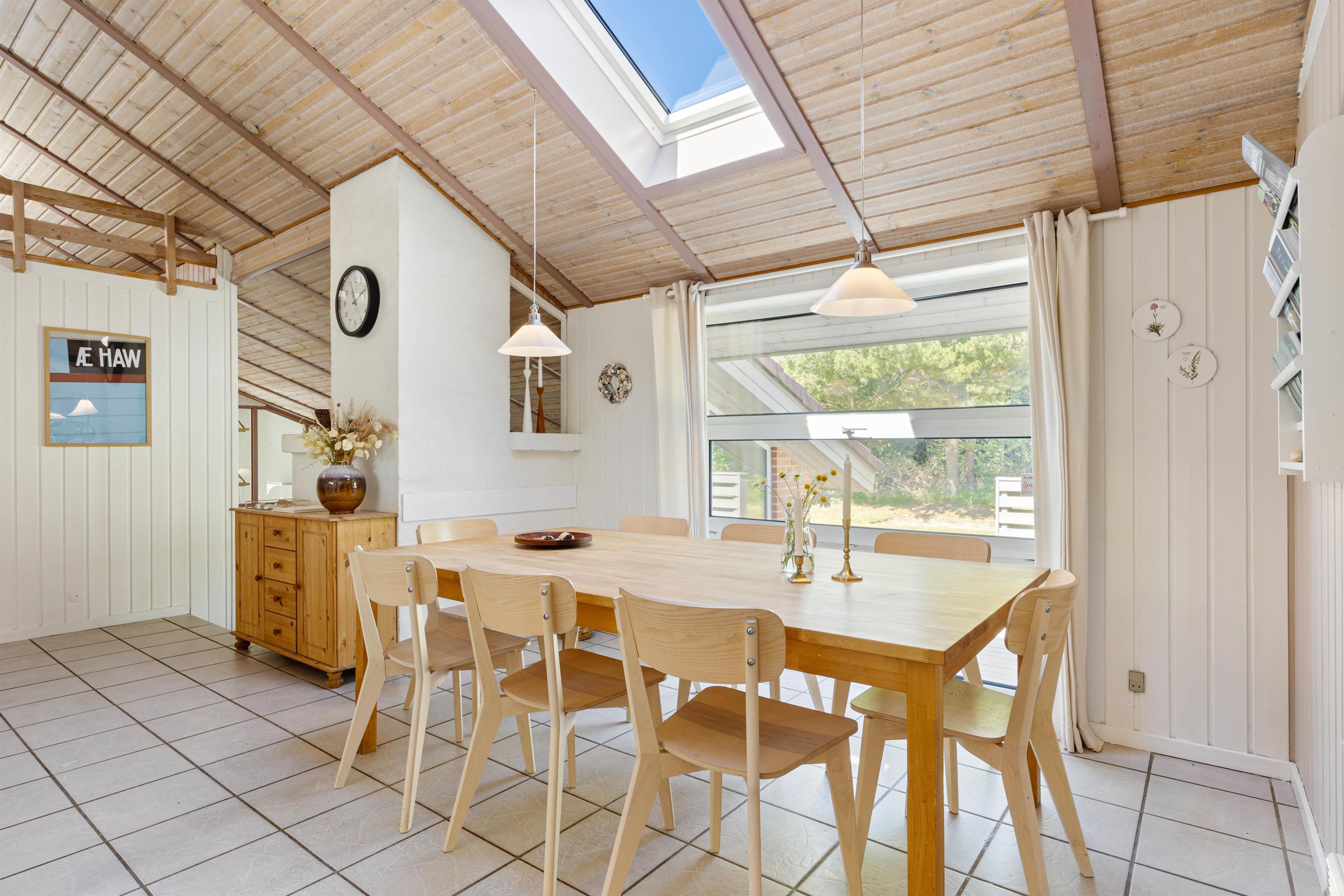 At 198 square metres, this holiday home comfortably accommodates 10 people and your two dogs. With its bright and cosy furnishings, the holiday home is perfect for a relaxing family holiday in beautiful surroundings. The pool house is heated by an energy-efficient air-to-air heat pump, ensuring a pleasant indoor climate.