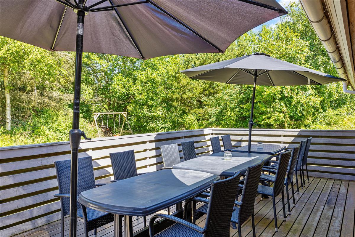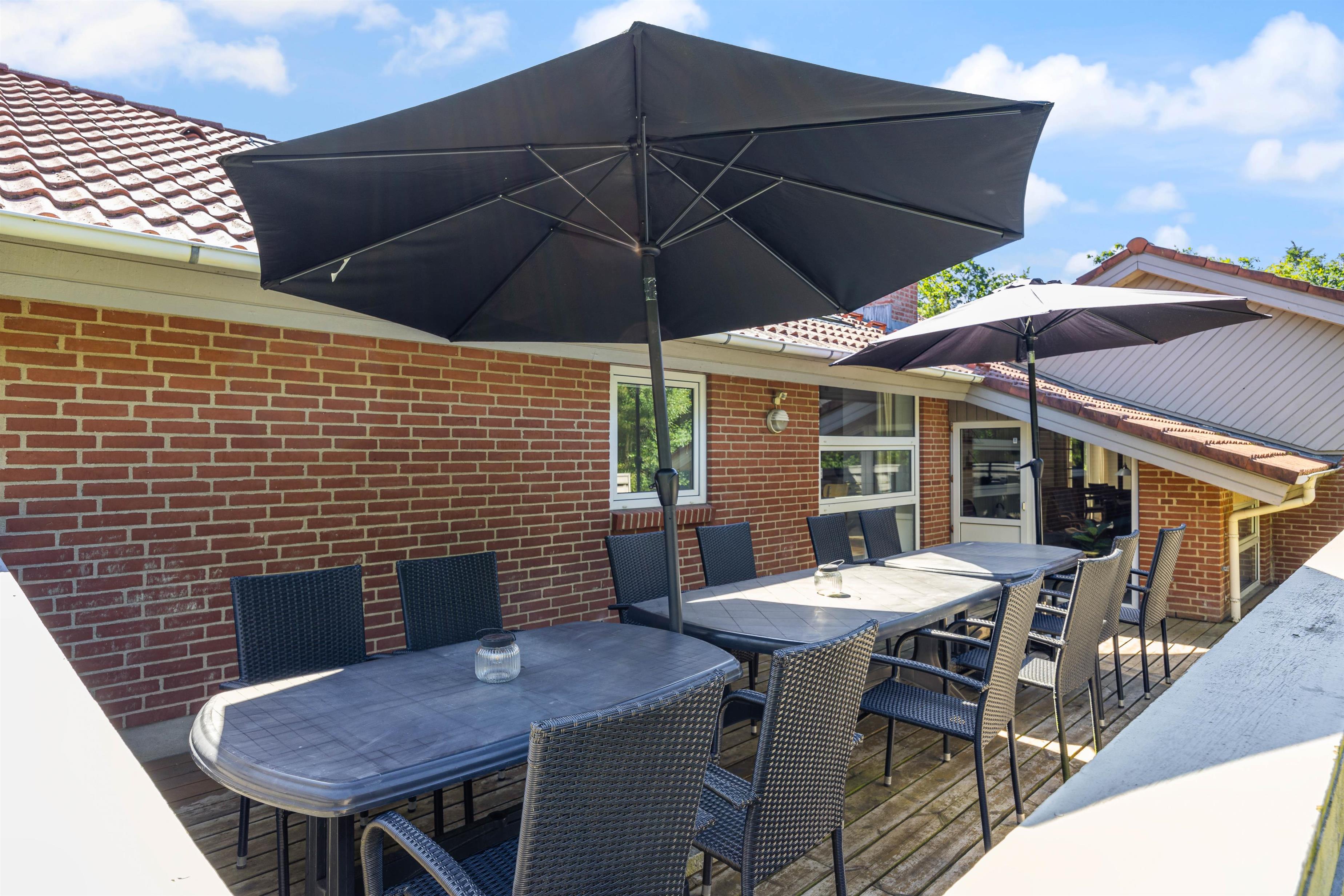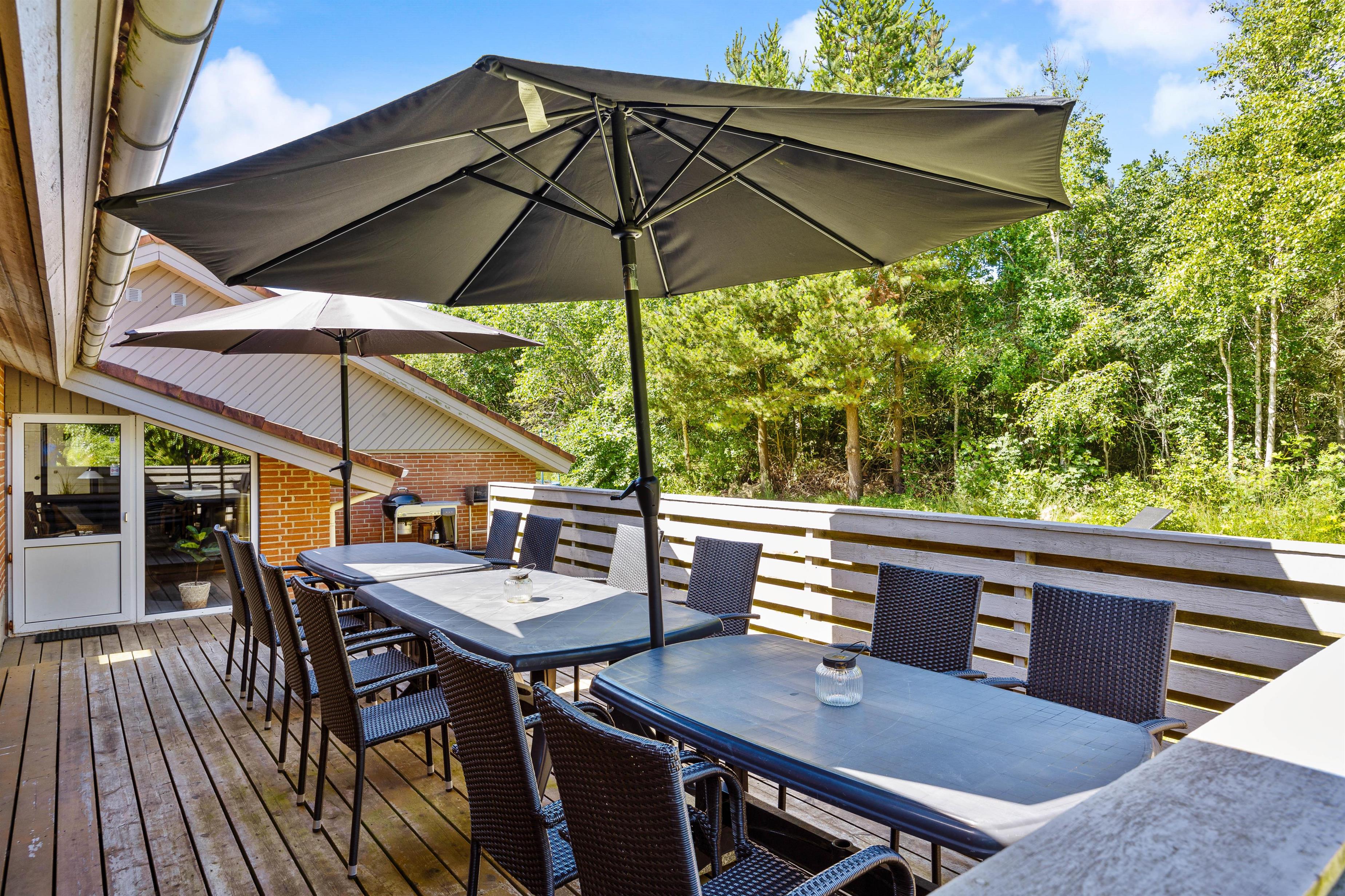 At 198 square metres, this holiday home comfortably accommodates 10 people and your two dogs. With its bright and cosy furnishings, the holiday home is perfect for a relaxing family holiday in beautiful surroundings. The pool house is heated by an energy-efficient air-to-air heat pump, ensuring a pleasant indoor climate.
