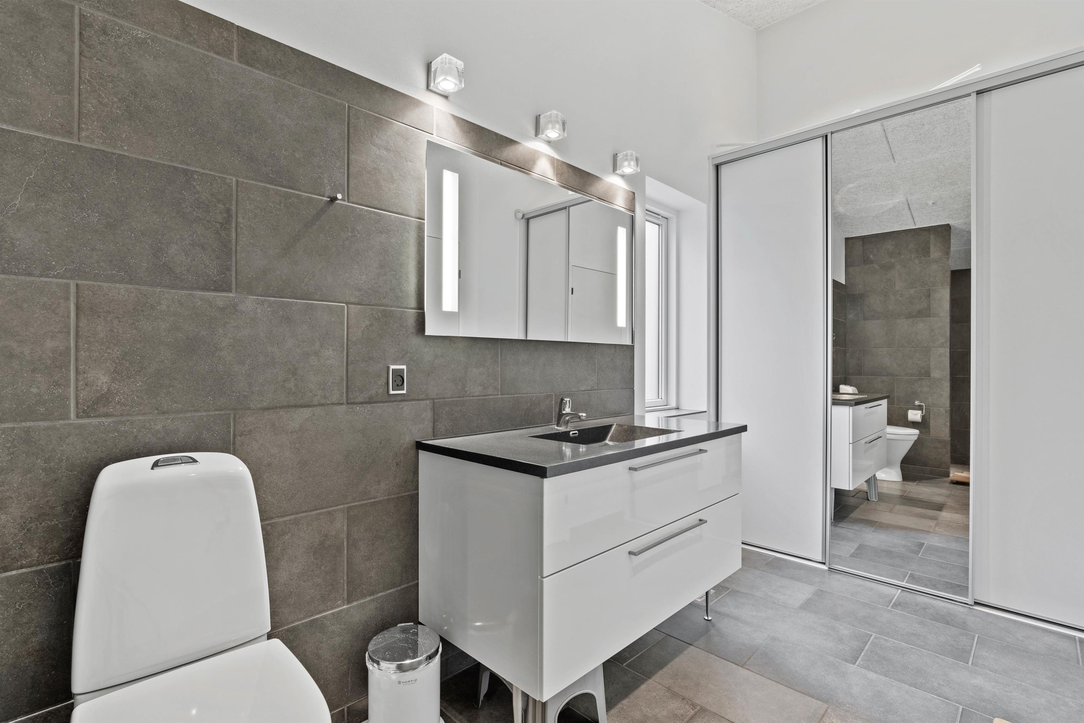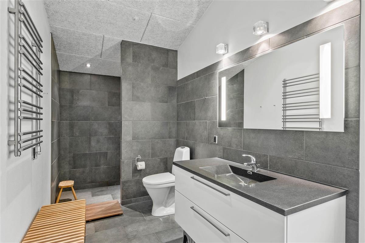 The bathroom, guest toilet and living area feature underfloor heating to keep your feet warm. Two energy-efficient air-to-air heat pumps ensure a comfortable temperature and pleasant atmosphere throughout.