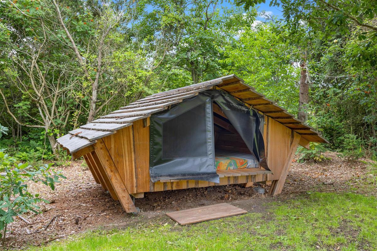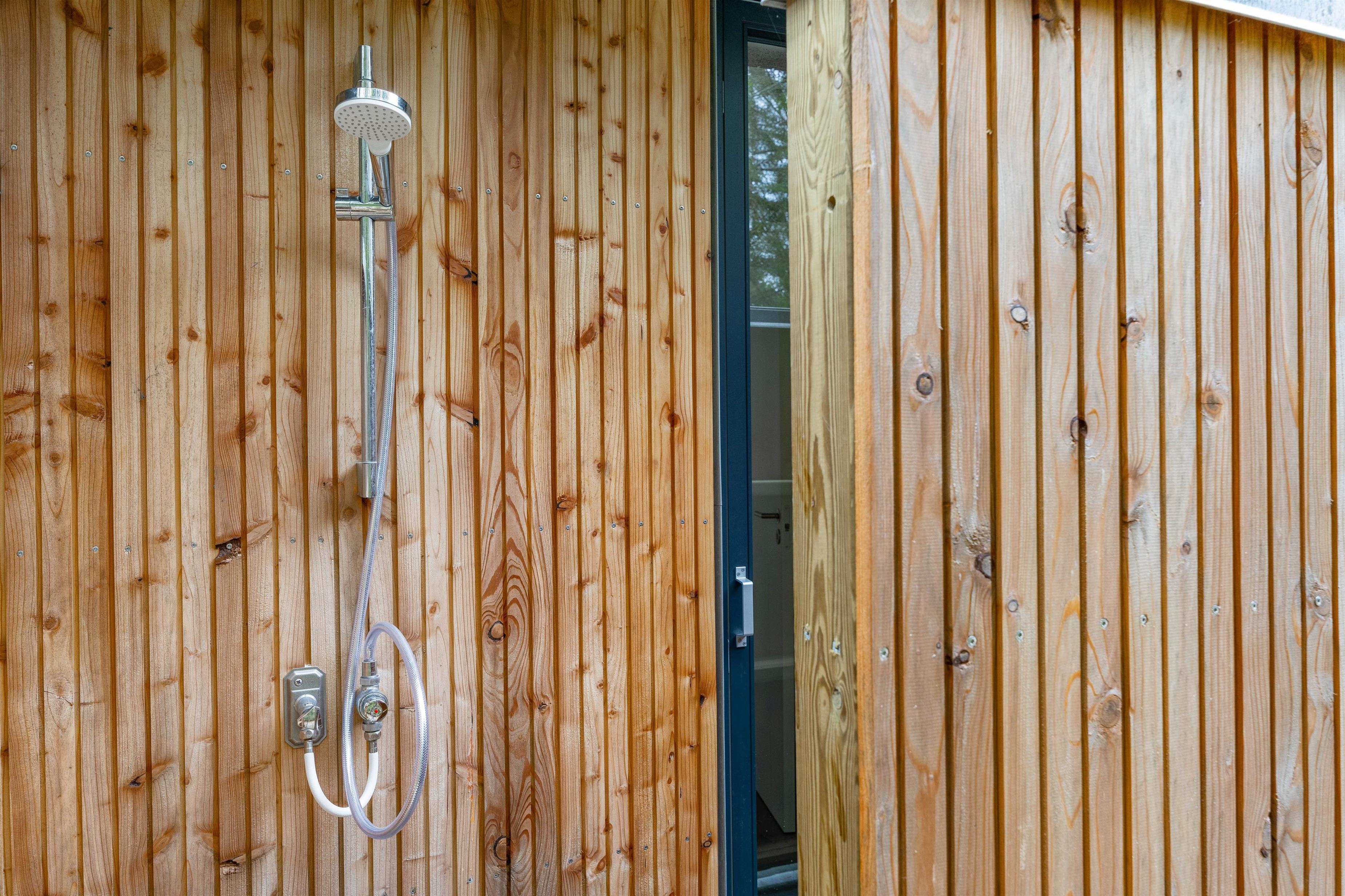 Natural grounds with hot tub, outdoor shower, trampoline and sandpit
