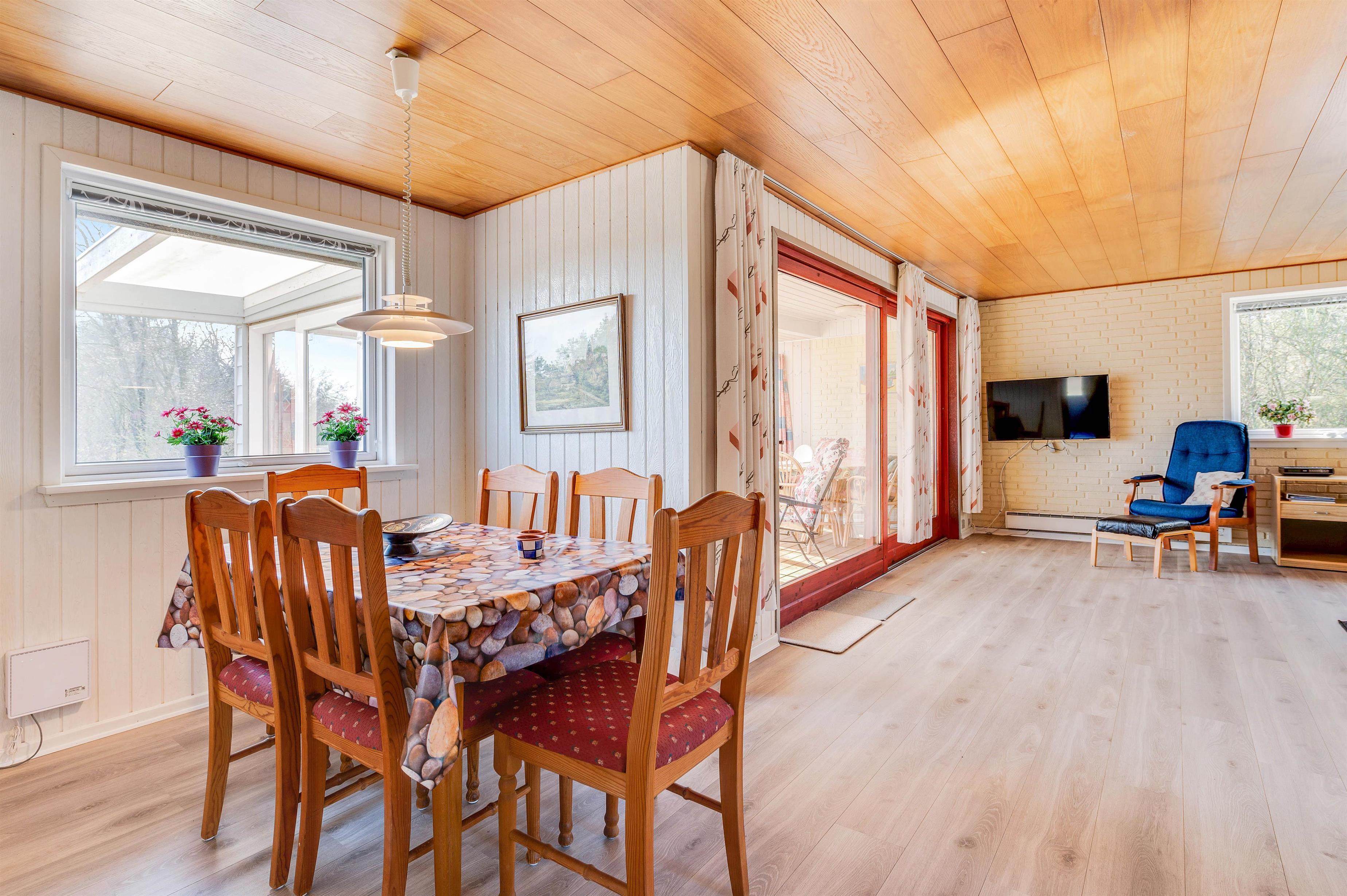 This charming, traditional holiday home in Lodbjerg Hede epitomises the cosy Danish summer house atmosphere. From the sofa group, you have a direct view into the welcoming conservatory, which is ideal for enjoying your first morning coffee or spending an afternoon playing games.