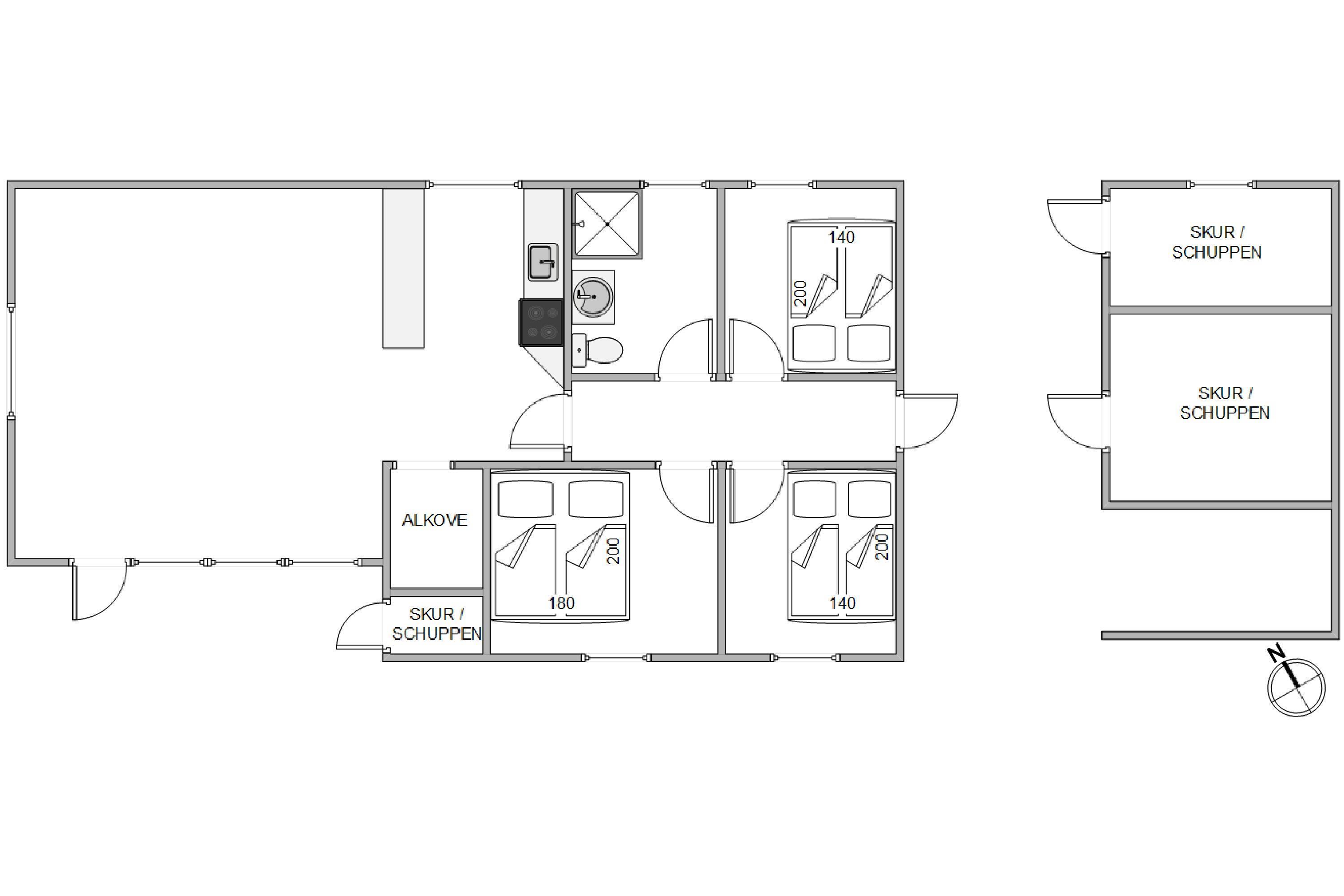 Brunbjergvej 11 is situated in the scenic Lodbjerg Hede area, surrounded by excellent cycling and hiking trails. The North Sea is just 1,400 meters away, and the bustling holiday town of Søndervig is approximately 4,000 meters from the house, offering shops, restaurants, and family-friendly activities during the summer months. Nearby, guests can also find an 18-hole year-round golf course, a fishing lake, and the picturesque Røjklit Harbor at Stadil Fjord – a region abundant with wildlife throughout the year.