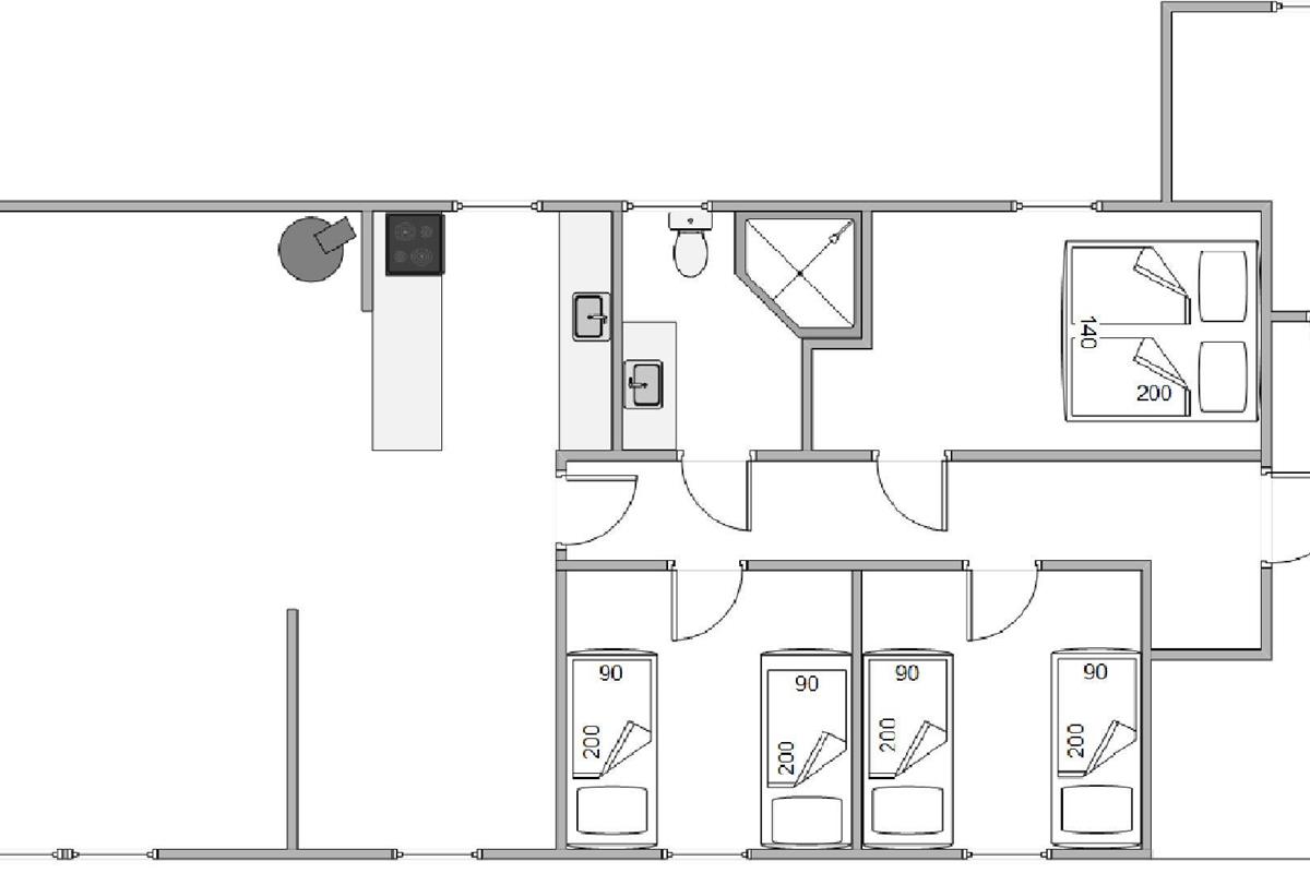 The house features three well-appointed bedrooms - one with a double bed and two with single beds. All rooms are bright and inviting, with pleasant furnishings that create a cosy, homely feel. The house also has a bathroom with shower and tiled floor.