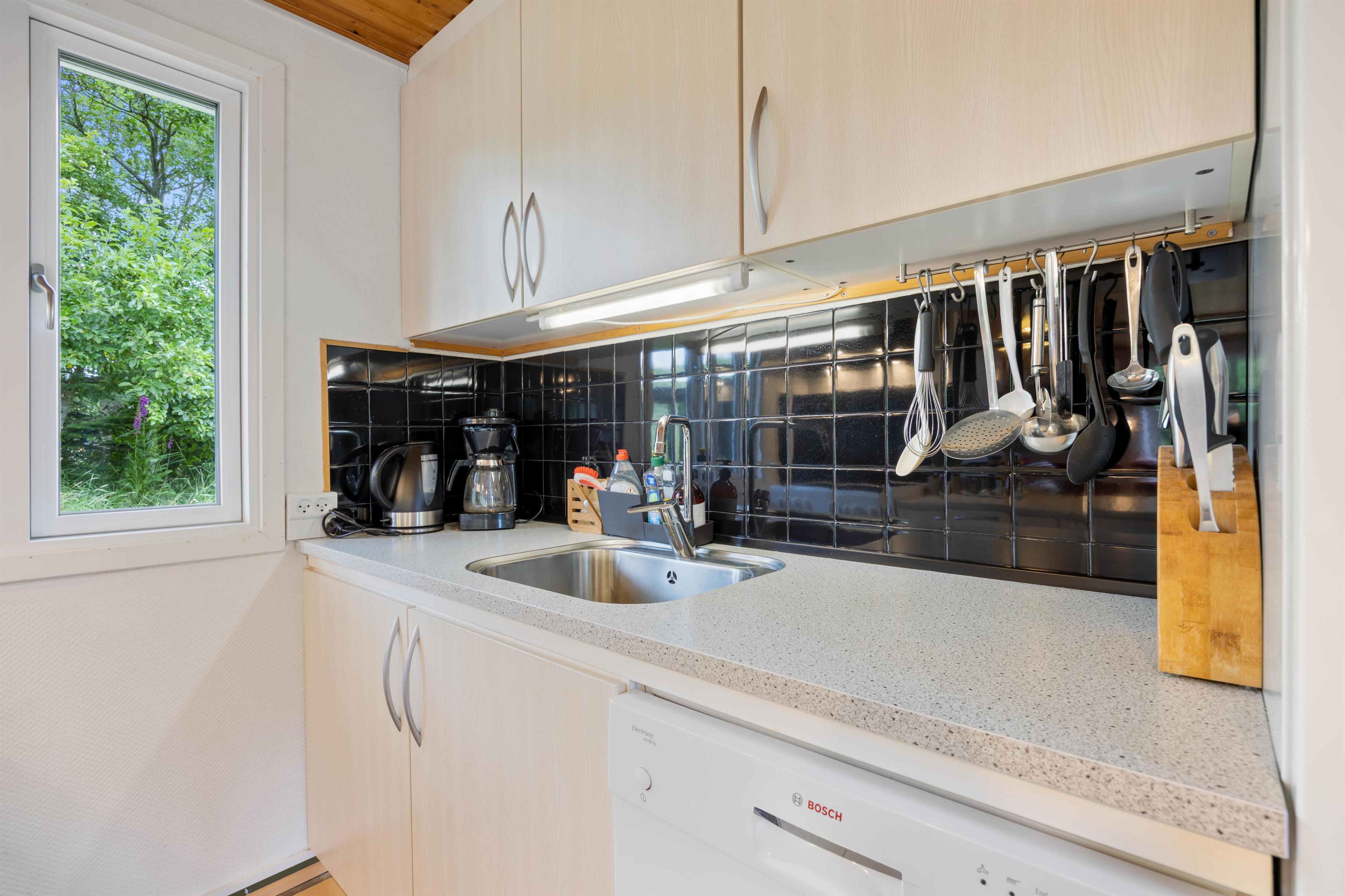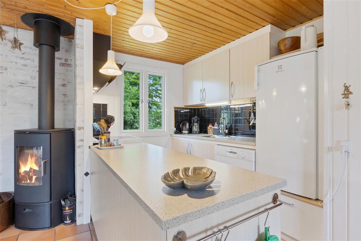 The lovely living space forms the heart of the house. Here you can gather while cooking in the practical kitchen or watch a film on the flat-screen TV in the living room. And there's no need to compete for seats - with sofas and armchairs, there are plenty of places for everyone to sit and unwind.
