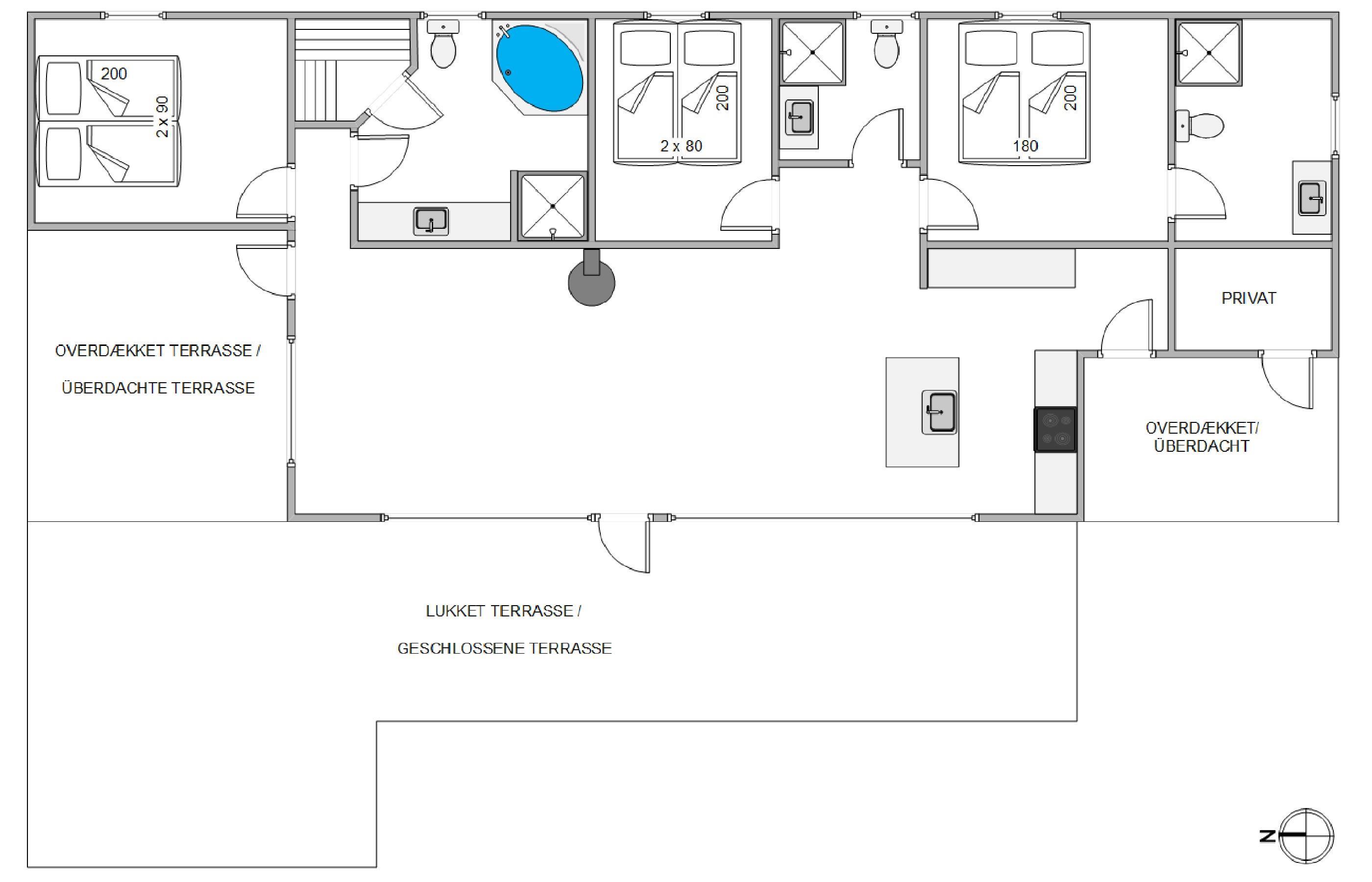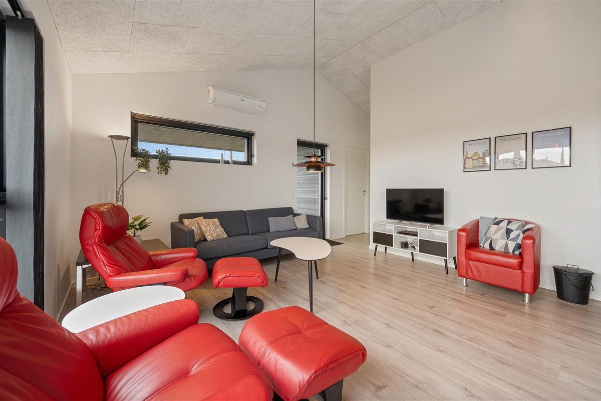 Built in 2019, Klevevej 41E showcases light colours, elegant furniture, high ceilings, and large windows perfect for sunbathing. Great care has been taken to create an inviting and spacious atmosphere with stylish design elements that flow throughout the holiday home.