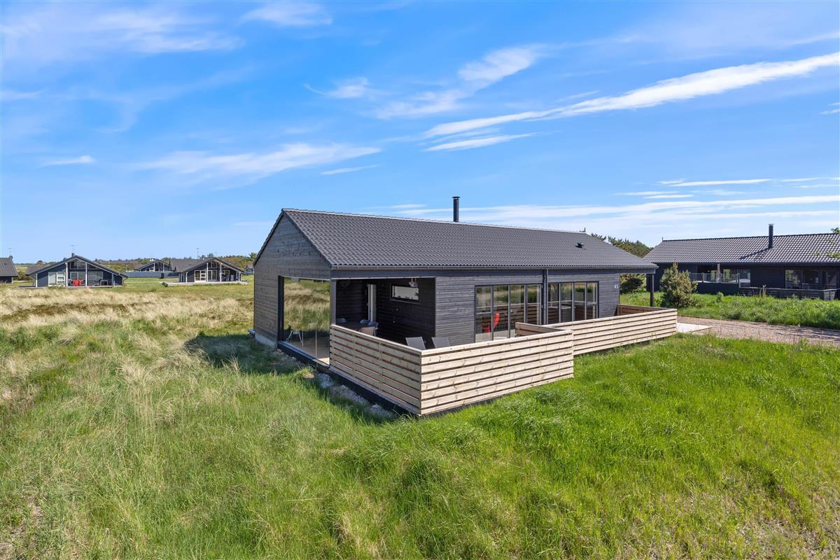 Located in Lodbjerg Hede, this holiday home is perfect for those seeking a peaceful getaway. The holiday home is stylishly furnished with modern interiors, featuring three bathrooms, a sauna, and a bath. The fenced terrace is ideal for dog owners, with two dogs welcome at this beautiful holiday home.