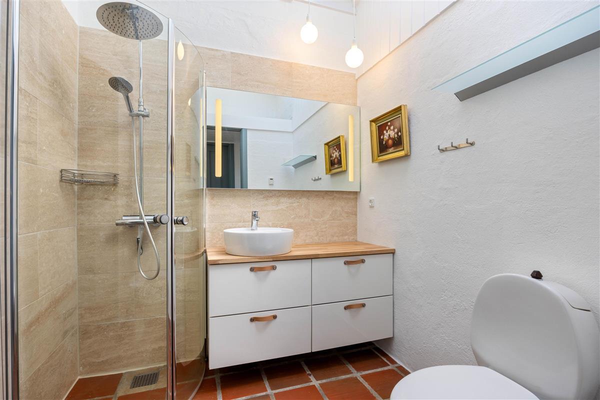 One of the home’s standout features is its spacious kitchen and dining area, where original tiles blend seamlessly with modern finishes. Skylights fill the space with natural light, creating a bright and inviting atmosphere for cooking, dining and spending time together. The kitchen is fully equipped with a dishwasher and a 180-liter freezer, while the utility room includes a washing machine and a tumble dryer for added convenience.