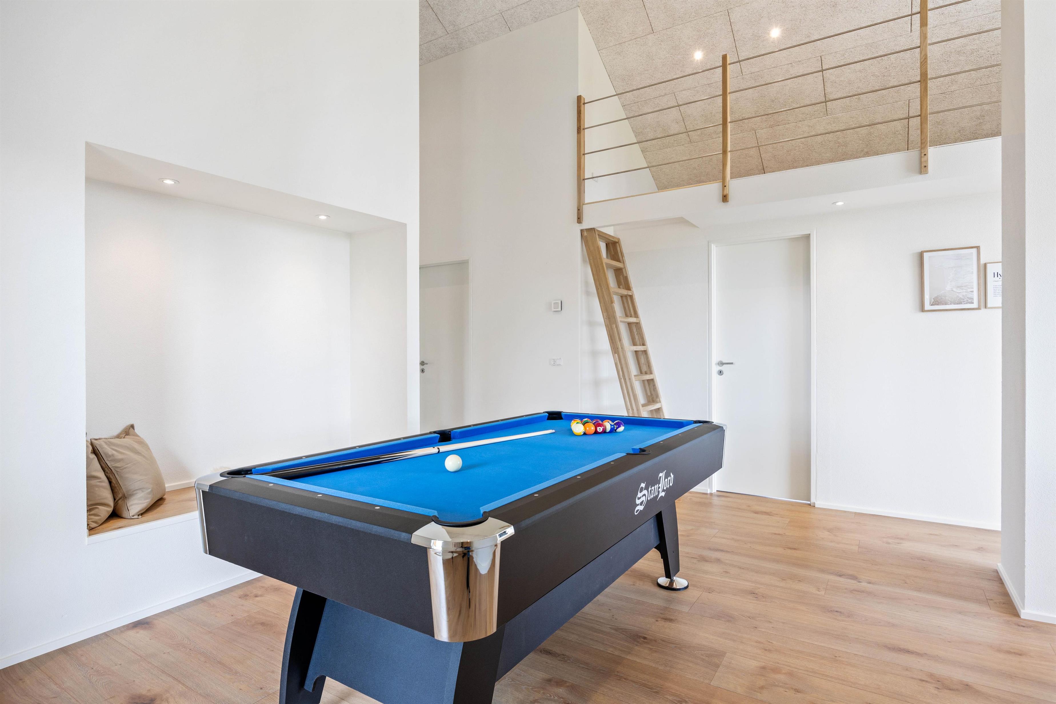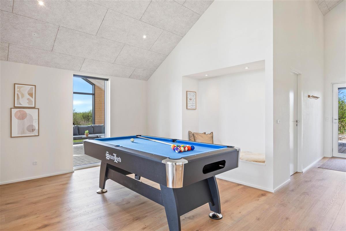 The games room with pool table provides entertainment, while the private sauna and outdoor hot tub offer relaxation. If you're arriving by electric car, the holiday home offers a charging point for convenient charging during your stay.