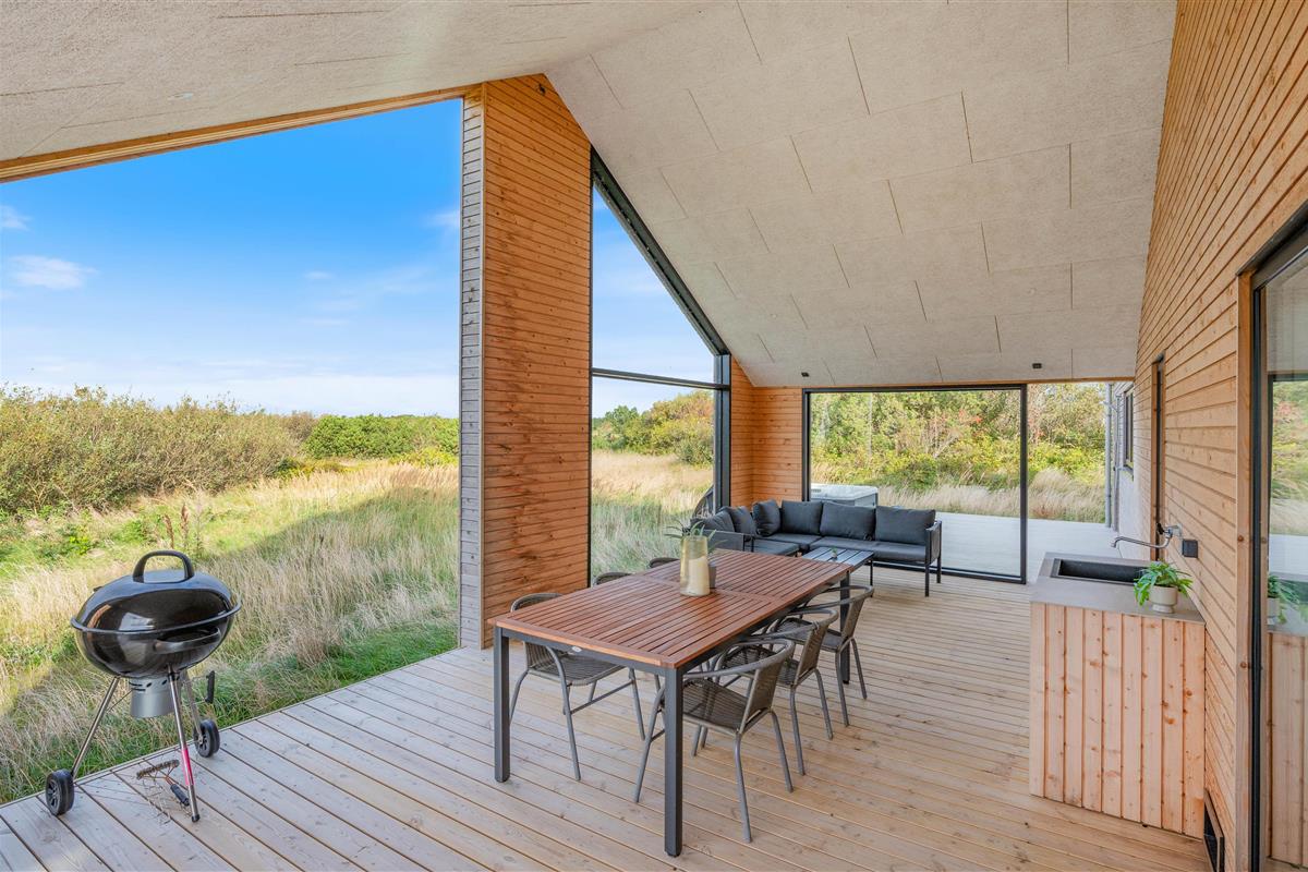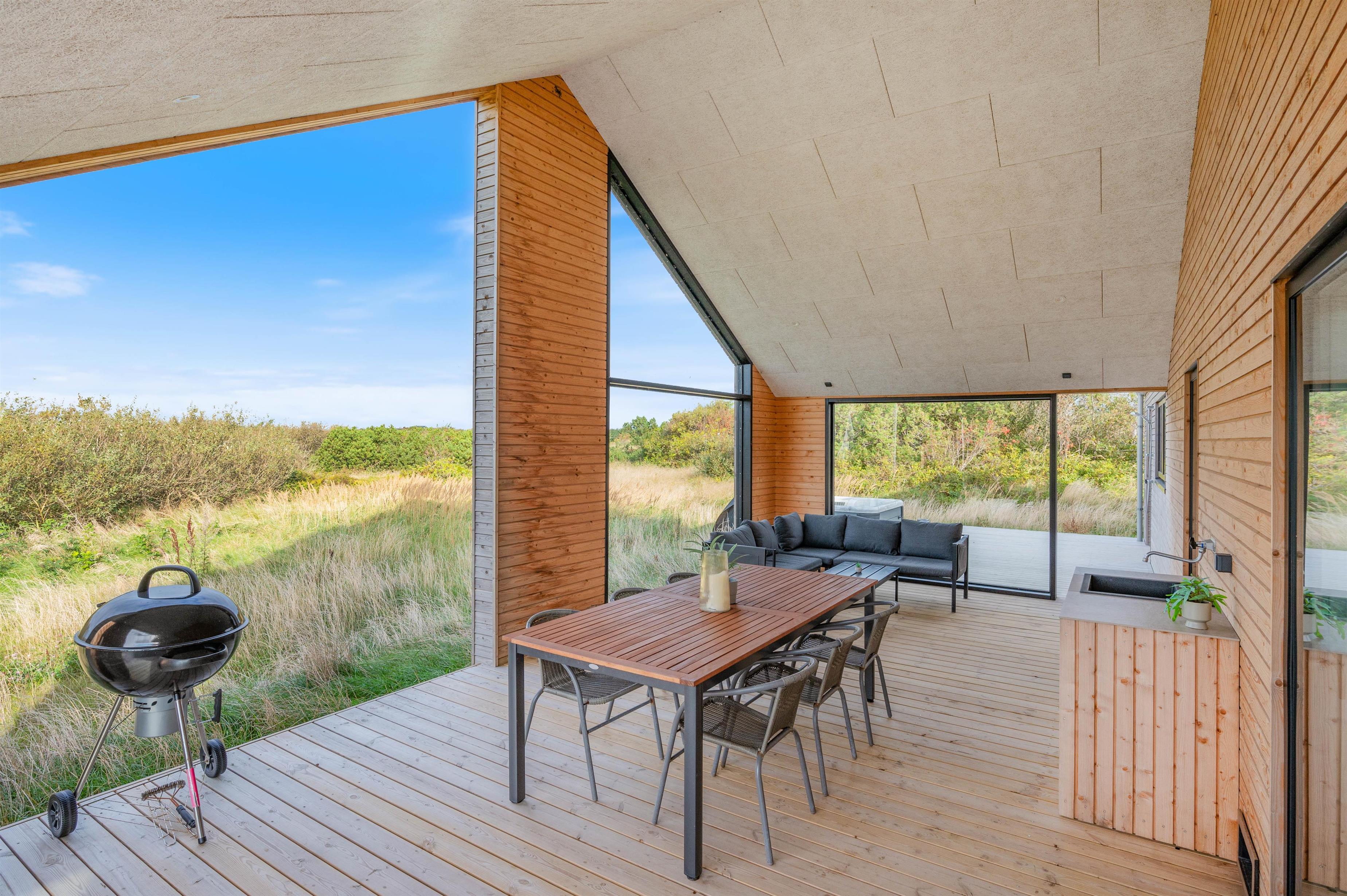 The holiday home at Sivsangervej 10 sits on a large natural plot that children and dogs will love, offering plenty of space for play and exercise. While the children explore the grounds, you can relax on the terrace, enjoy the sunshine and sip a cool drink. The terrace features a barbecue, outdoor kitchen and suitable garden furniture, perfect for ending an eventful day with a relaxing barbecue evening.