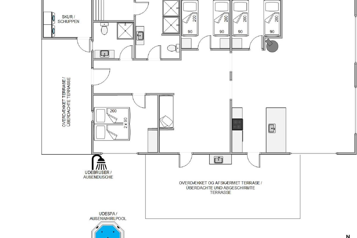 A visit to the North Sea and its long beaches is a must when holidaying on the Danish West Coast. The owners have installed an outdoor shower (available April-November) for washing off sandy feet after long beach walks. When you want to warm up after a lengthy North Sea walk, the outdoor hot tub provides cosy warmth and relaxation.